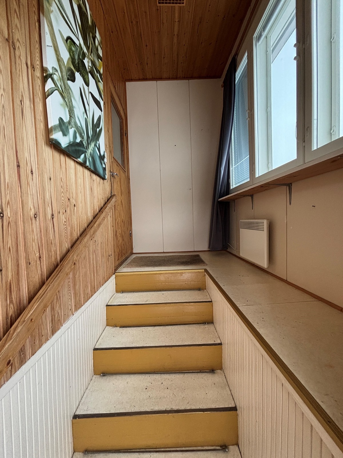 Keittiö: Parketti. Olohuone: Muovimatto. Makuuhuone 1: Muovimatto. Kylpyhuone: Betoni. Wc: Muovimatto.