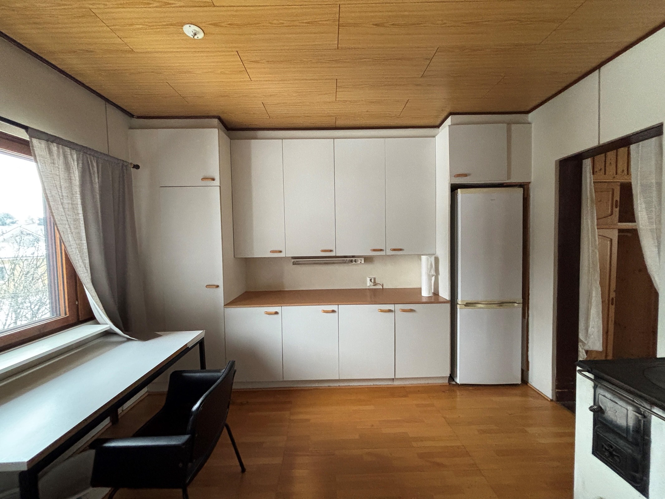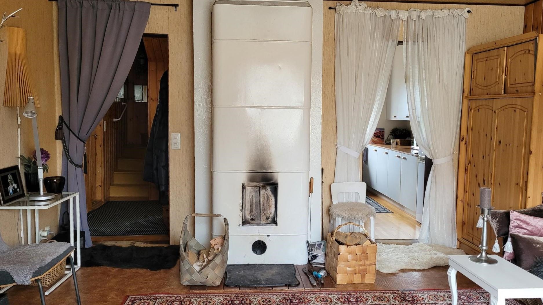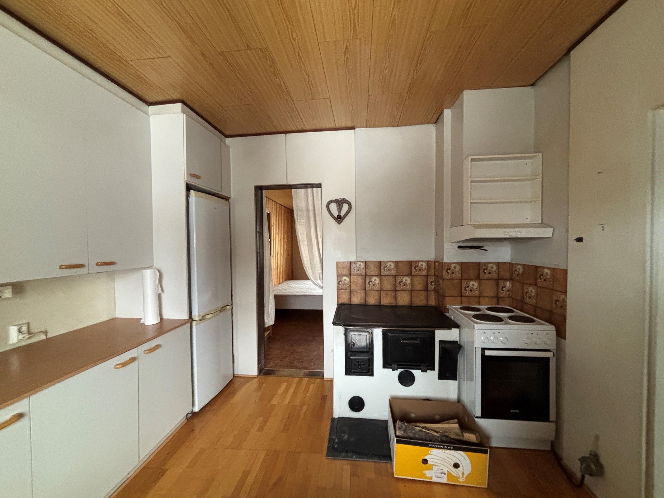 - Jääkaappipakastin, sähköliesi, liesituuletin. Puuhella