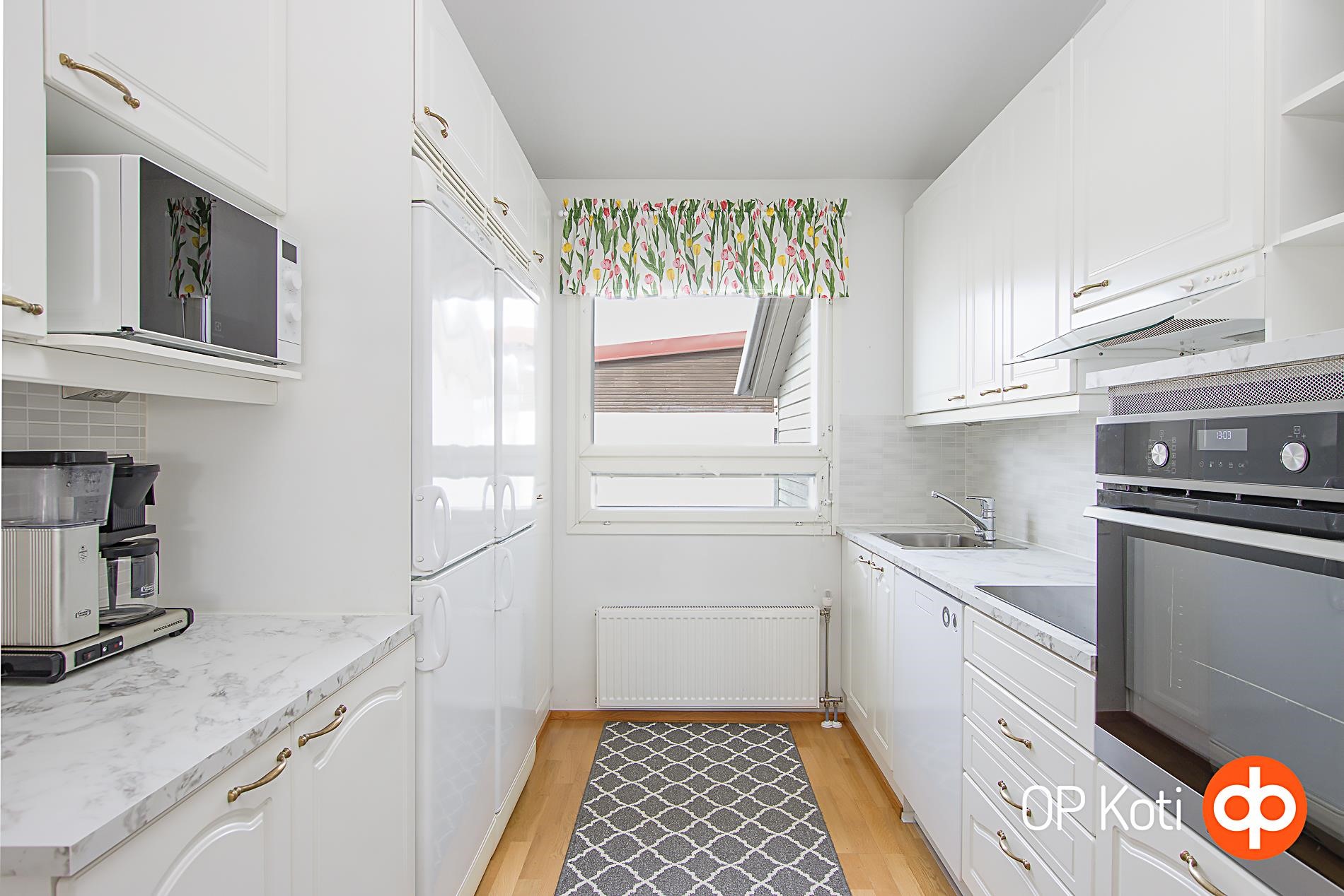 - Jääkaappipakastin x 2, erillisuuni, induktioliesi, liesituuletin, astianpesukone, kaapistot, kiinteät valaisimet.