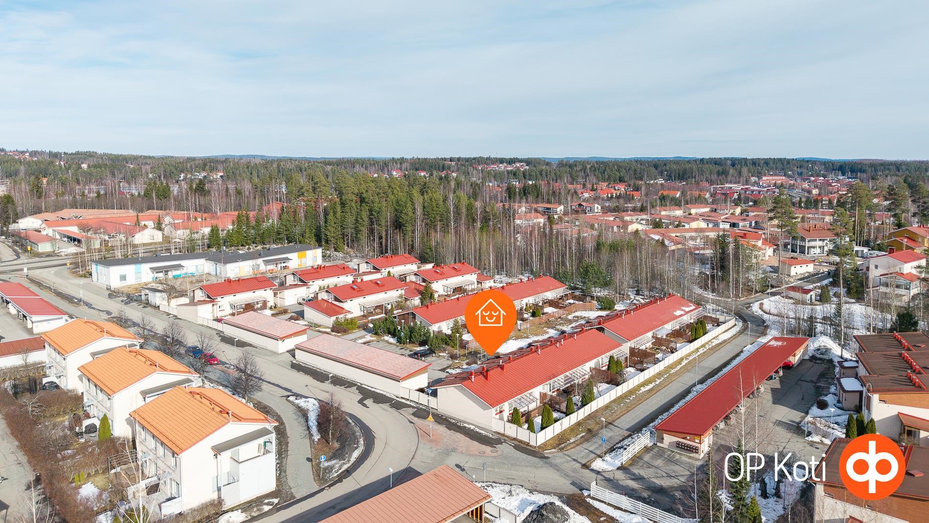 Lähikauppa on kävelyetäisyydellä, bussipysäkki kivenheiton päässä ja keskustaan hurauttaa autolla nopeasti.