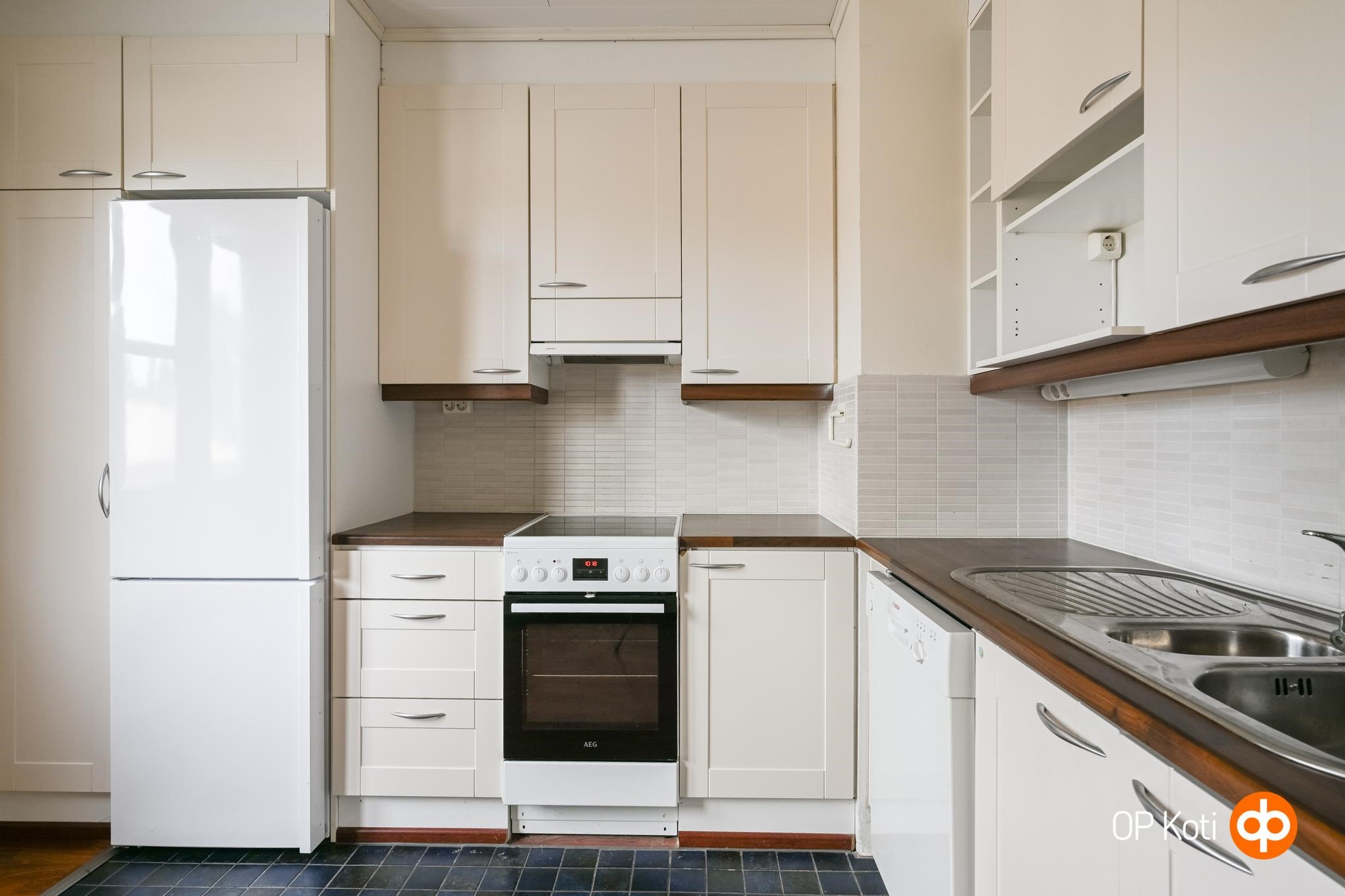 - Jääkaappipakastin, induktioliesi, liesituuletin, astianpesukone, kaapistot, kiinteät valaisimet.
