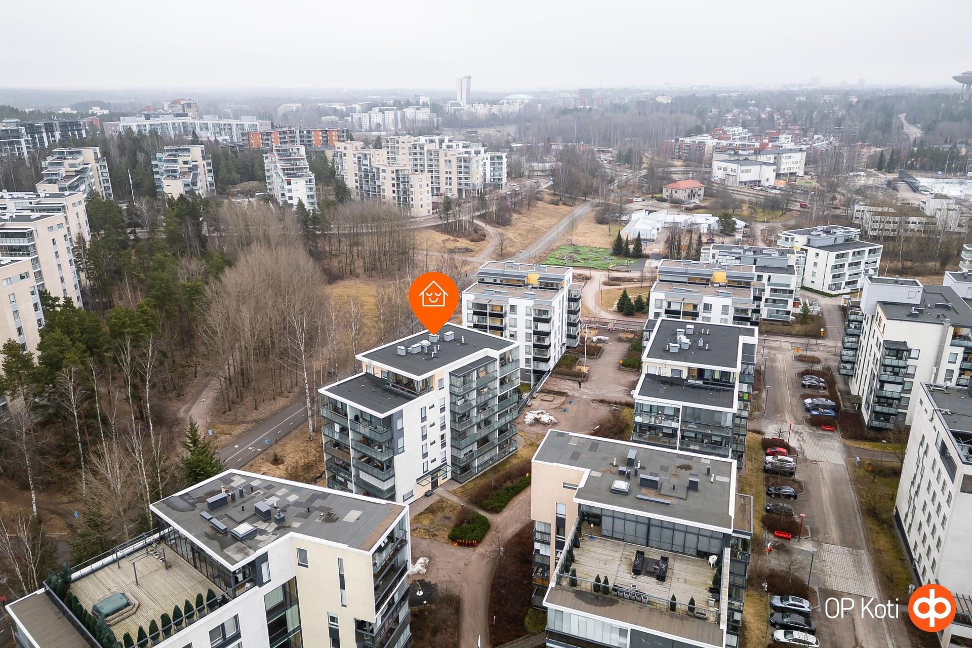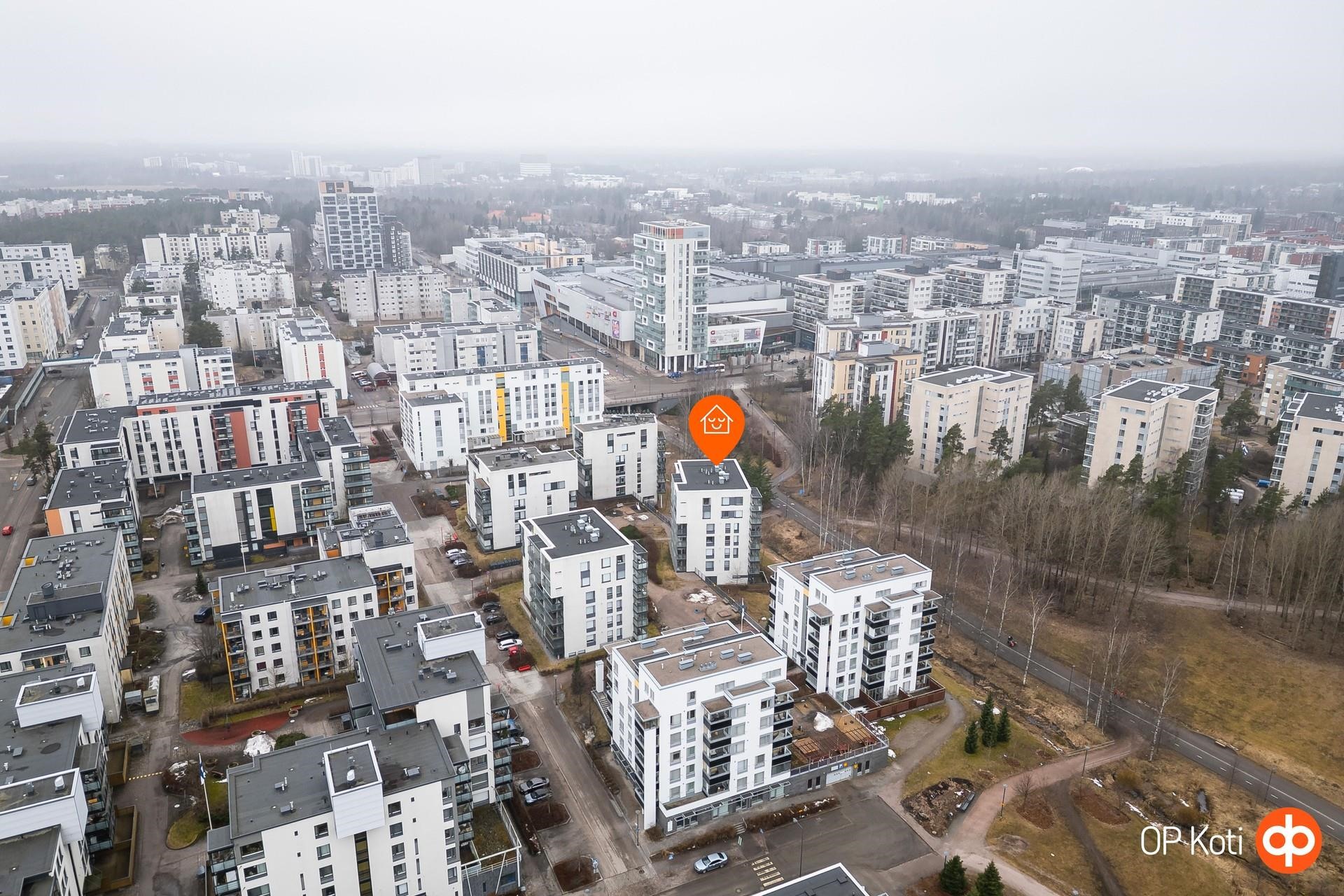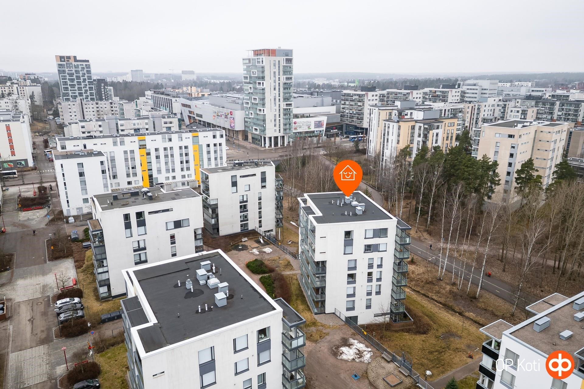 Taloyhtiö sijaitsee erinomaisella paikalla aivan palveluiden ja metron tuntumassa. Kauppakeskus Iso Omena monipuolisine palveluineen on kävelyetäisyydellä, ja alueelta löytyvät myös loistavat ulkoilu- ja liikuntamahdollisuudet sekä merenranta läheltä.