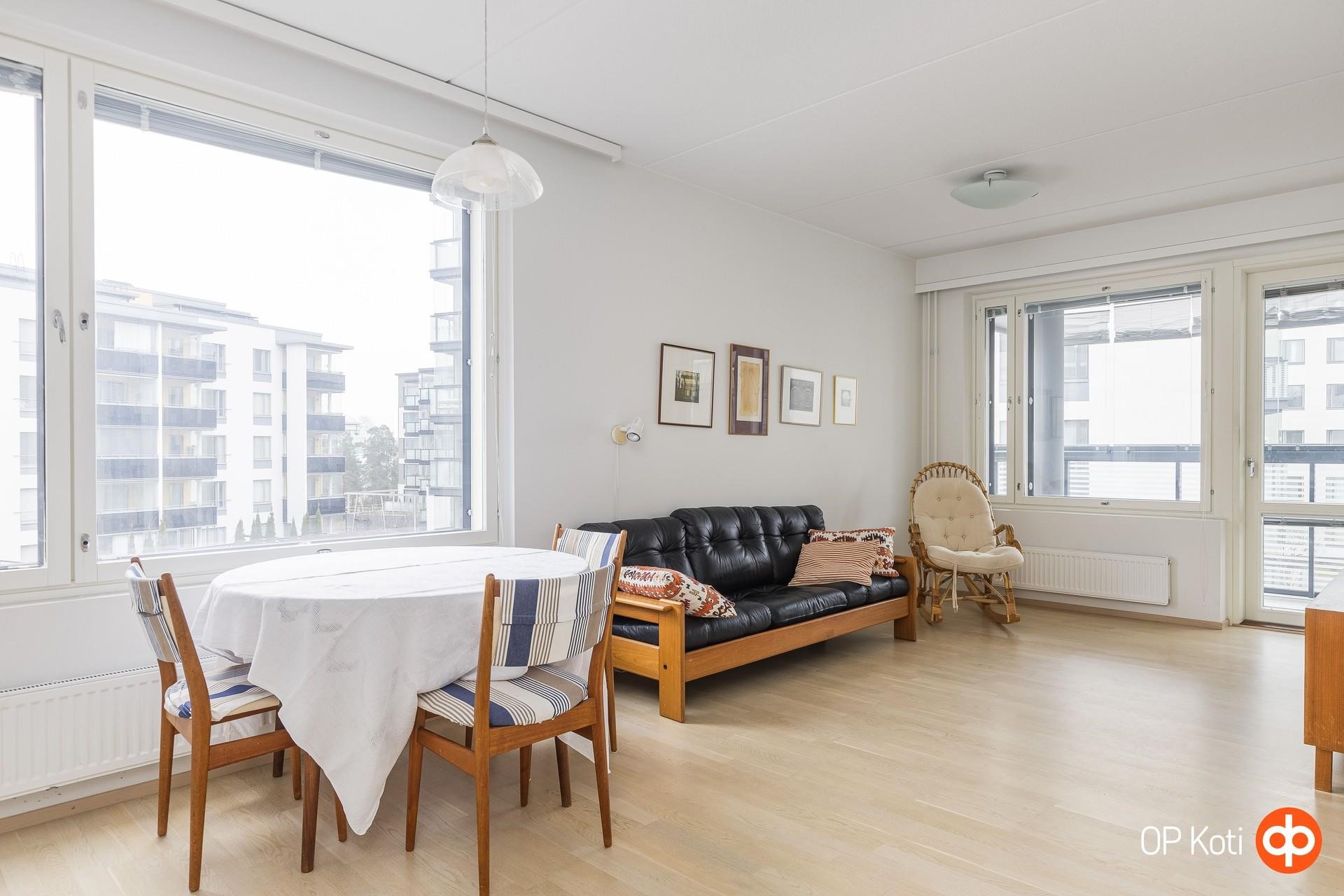 Tämä viihtyisä ja hyvin pidetty kaksio sijaitsee omalla tontilla olevassa taloyhtiössä Espoon Matinkylässä. Kolmannen kerroksen sijainti tuo asuntoon lisää valoa ja avaruutta, ja selkeä pohjaratkaisu tekee arjesta sujuvaa. Lasitettu parveke avautuu miellyttävään ilmansuuntaan tarjoten viihtyisän lisätilan pitkälle syksyyn.