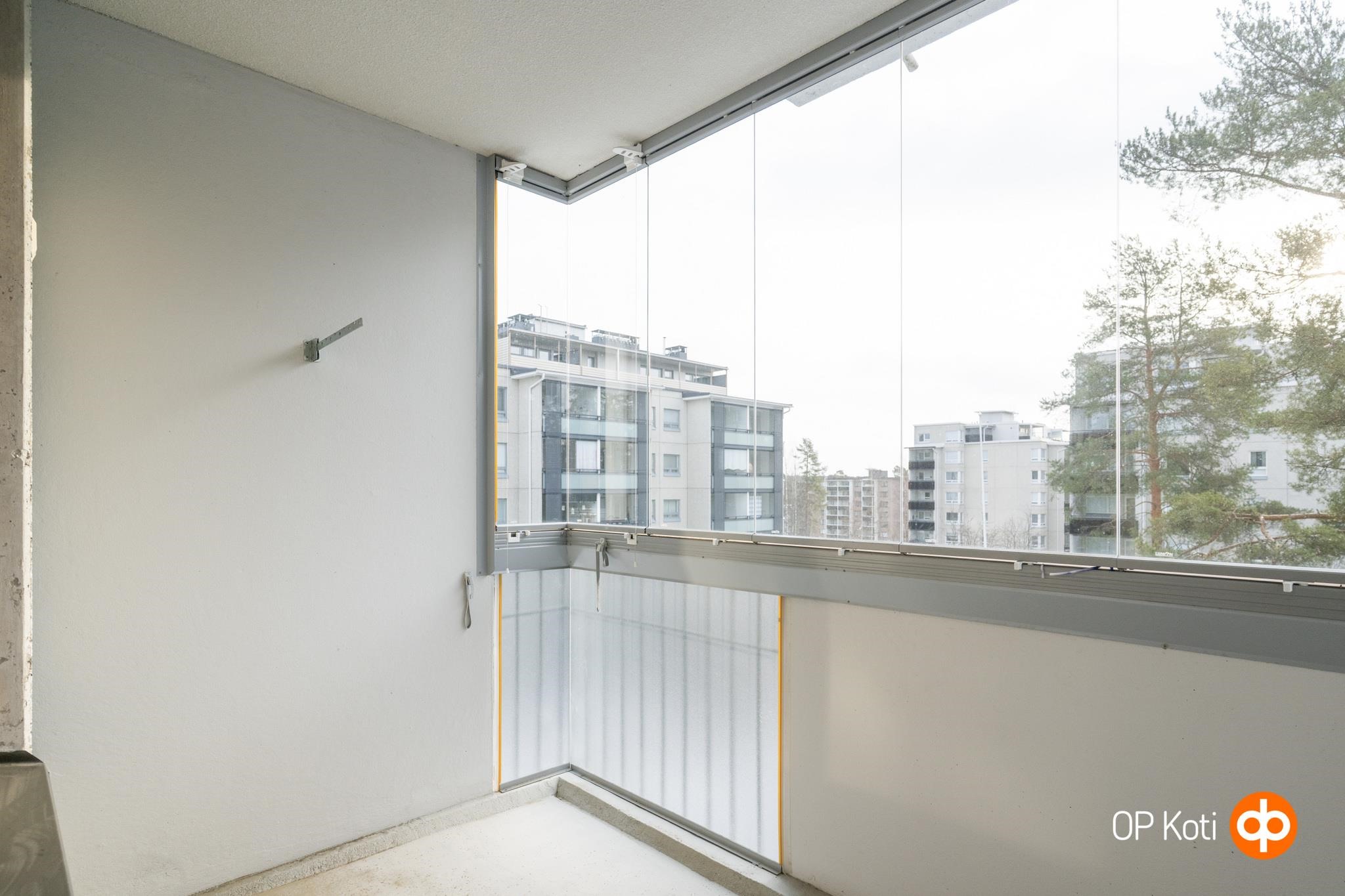 Asunnossa on käytännöllinen pohjaratkaisu. Kodin sydän on valoisa olohuone, josta avautuu käynti lasitetulle parvekkeelle - täällä voit nauttia puiston rauhallisista maisemista vuoden ympäri. Kompakti pikkukeittiö on yhteydessä olohuoneeseen ja poistamalla pätkän väliseinää saat muutettua pohjan varsin nykyaikaiseksi. Kylpyhuone on tilava ja vaatehuone tervetullut lisä arjen pyöritykseen.