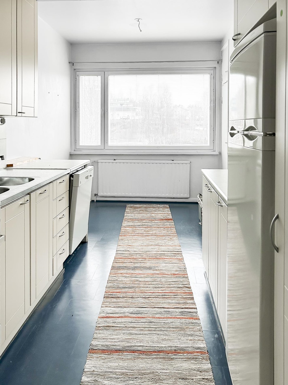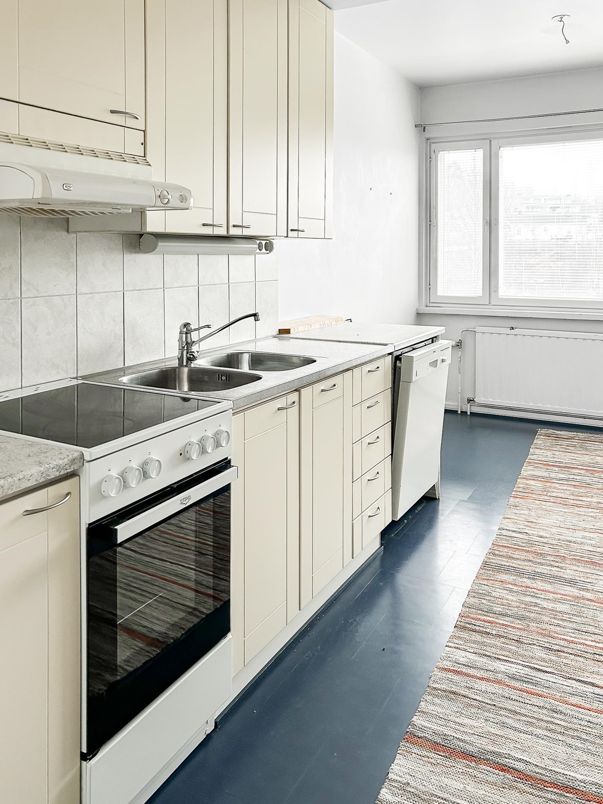 - Jääkaappipakastin ns. jenkkikaappi, keraaminen liesi, liesikupu, astianpesukone voi olla rikki ( ei tietoa kunnsota), kaapistot vaaleat, kiinteät valaisimet.