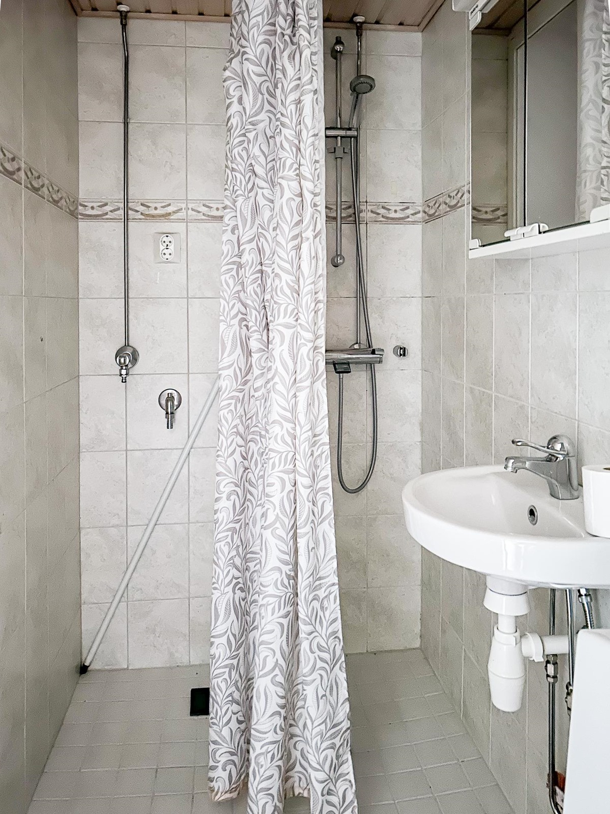 - Kylpyhuone jossa wc, suihku, peilikaappi, pesukoneliitäntä, lattialämmitys, kiinteät valaisimet.