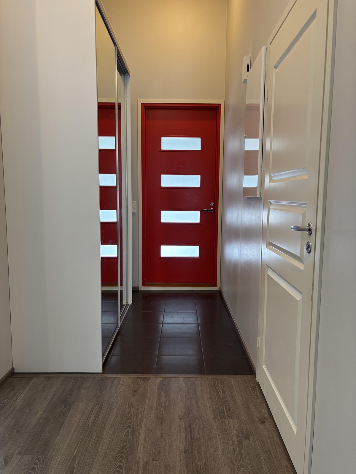 Makuuhuone: Lattiat laminaattia, seinät maalattuja ja tapetoituja. Olohuone: Lattiat laminaattia, seinät maalattuja ja tapetoituja. Keittiö: Lattiat laminaattia, seinät maalattuja ja tapetoituja. Pesuhuone: Laatoitettu.