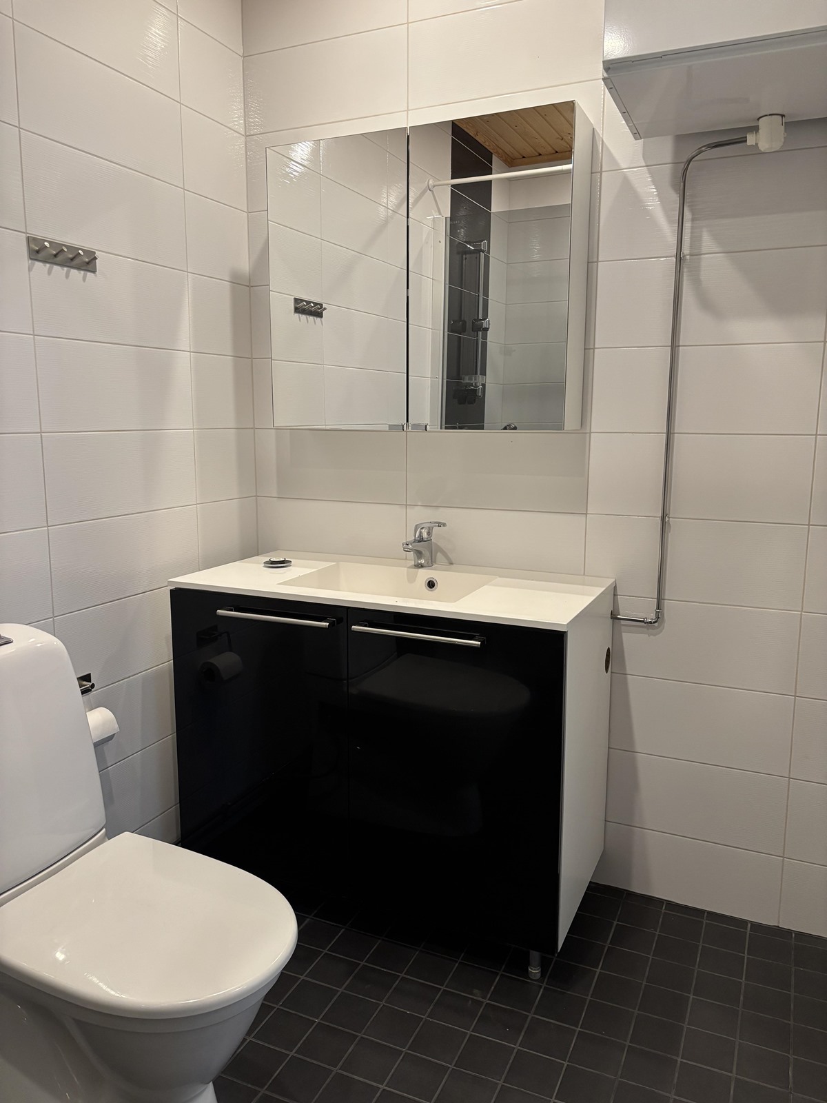 - Sauna, sähkökiuas, kylpyhuone, suihku, suihkuseinä, peilikaappi, allaskaappi, pesukoneliitäntä, lattialämmitys, kiinteät valaisimet.