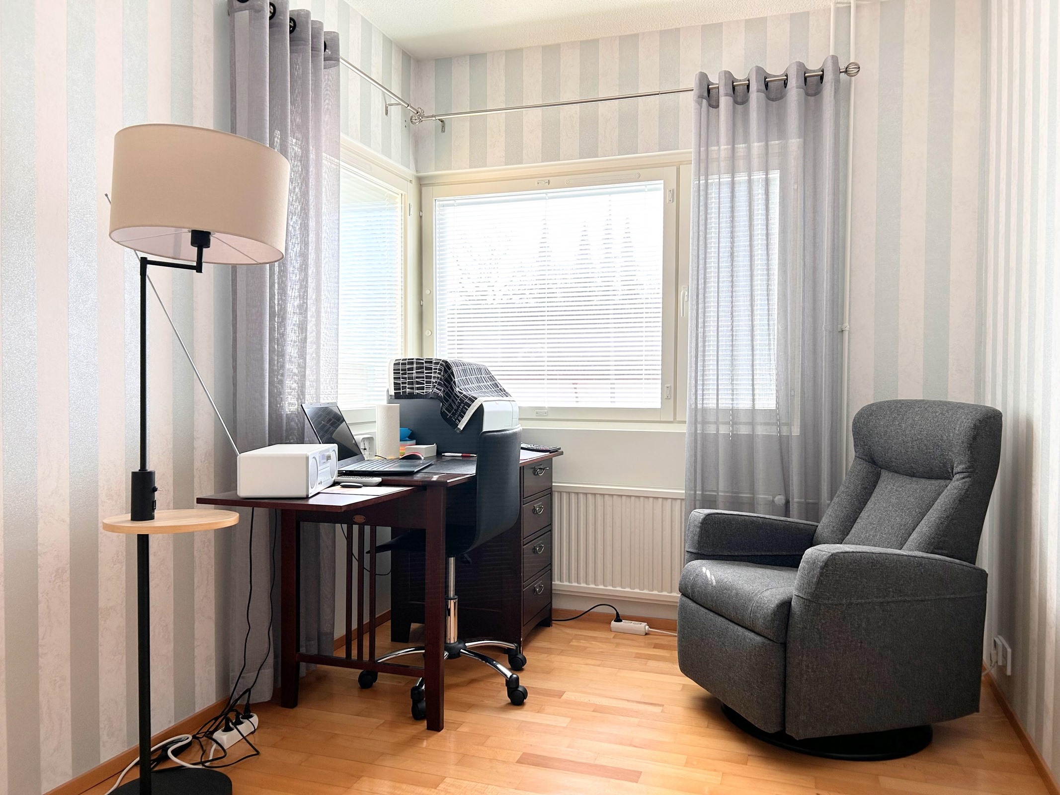 Tässä kodissa yhdistyvät modernit mukavuudet ja arjen helppous, sillä kaikki tarvittava löytyy kivenheiton päästä. Tilava ja valoisa asunto kutsuu viihtymään, ja oma sauna tarjoaa puitteet rentoutumiseen kiireisen päivän päätteeksi.