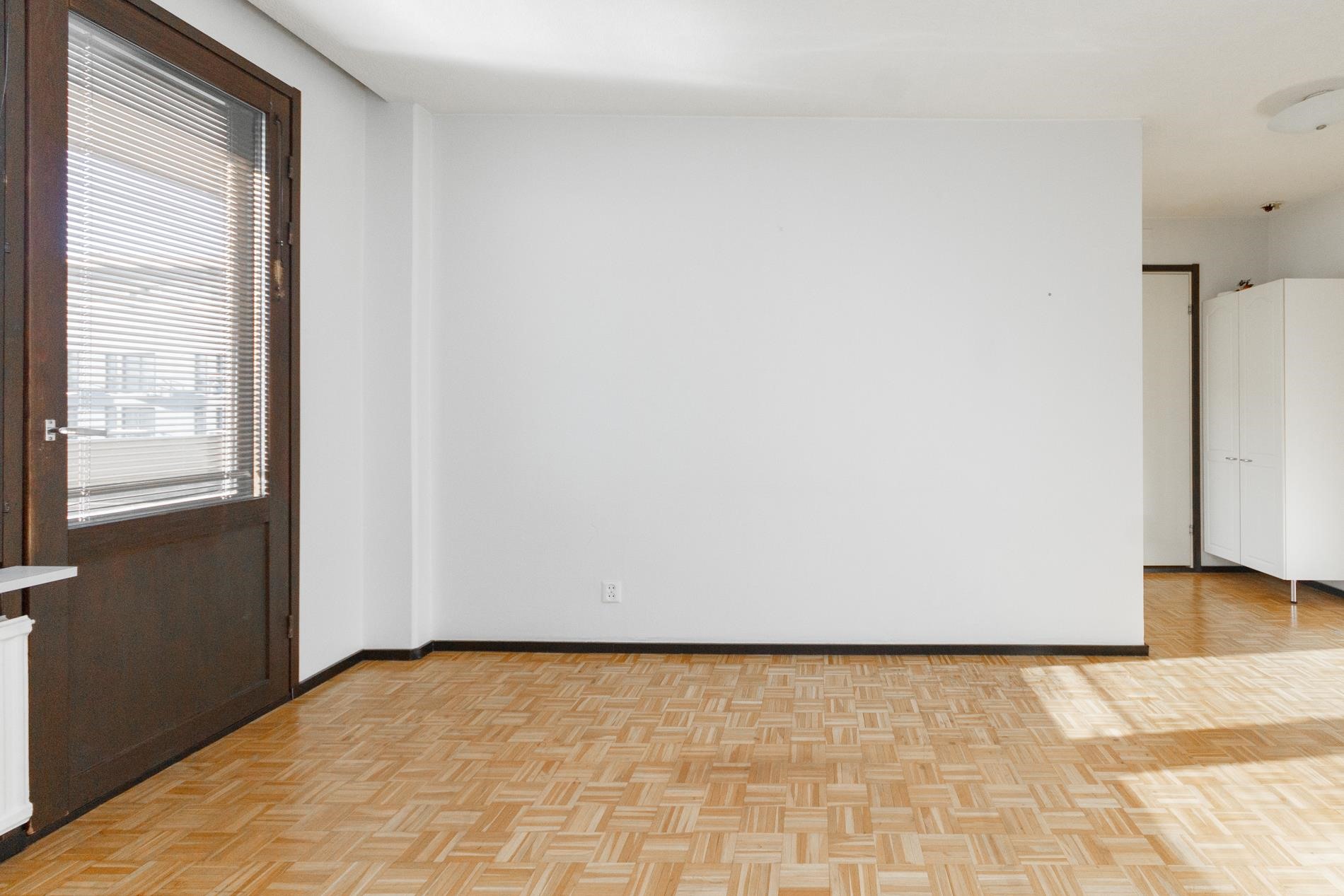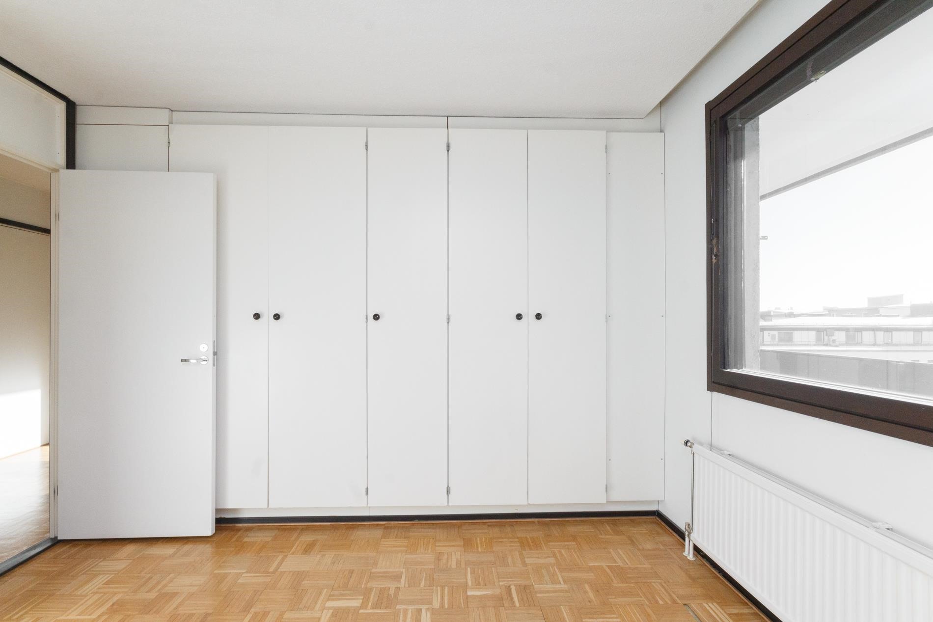 Keittokomerossa on tilaa kokkailla. Olohuoneesta on käynti tilavalle, koko huoneiston levyiselle parvekkeelle, josta on näkymät etelään päin. Makuuhuoneessa on kaapisto vaatteille. Kylpyhuoneessa on paikka pyykinpesukoneelle.