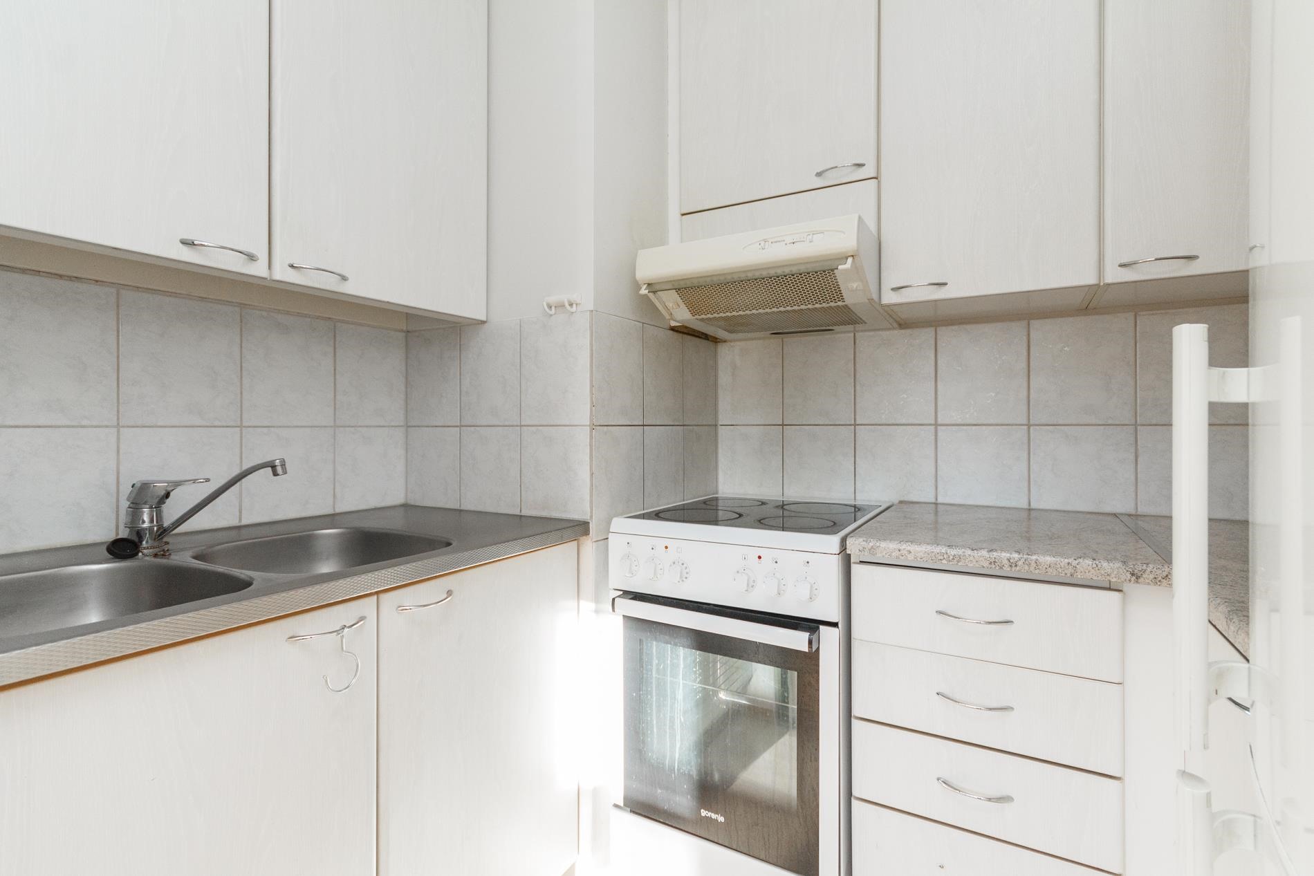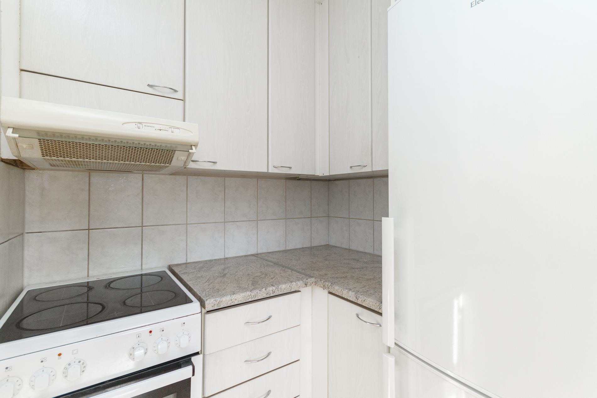 - Jääkaappipakastin, sähköliesi, liesituuletin, kaapistot, kiinteät valaisimet.