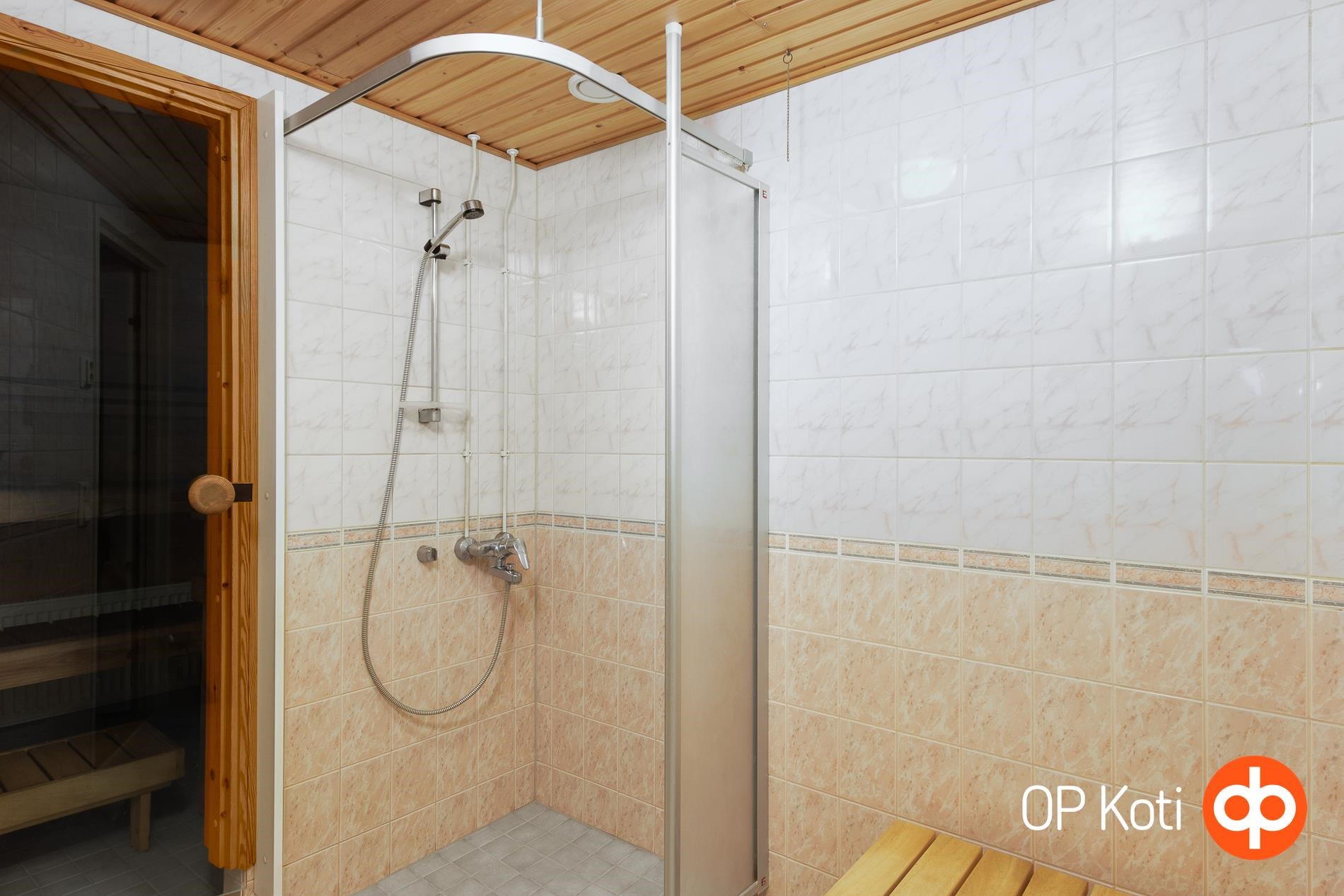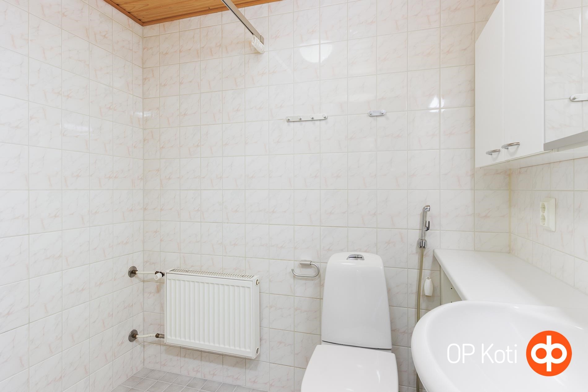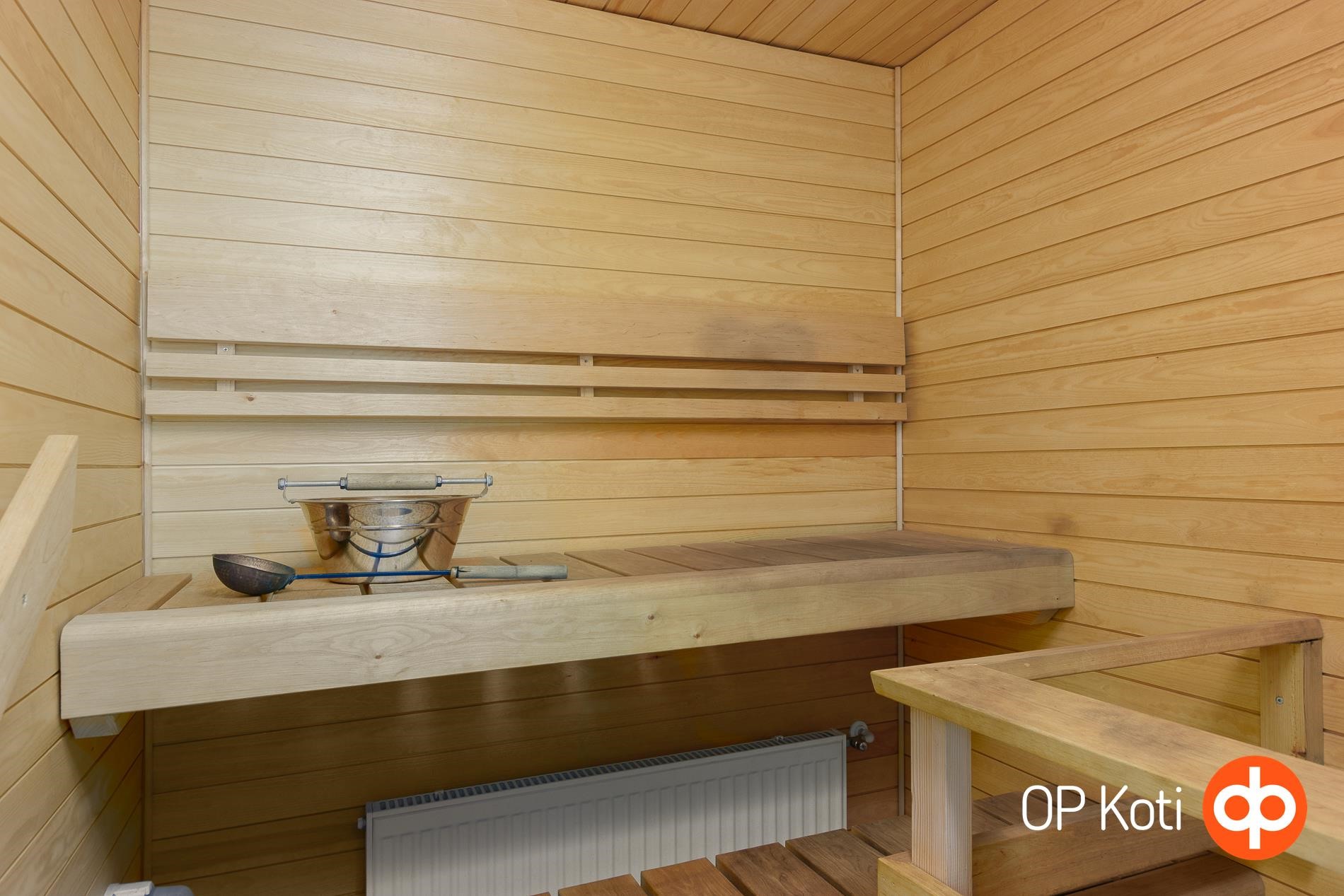 - Sauna, sähkökiuas, erillinen wc, suihku, suihkuseinä, peilikaappi, allaskaappi, pesukoneliitäntä, lattialämmitys, kiinteät valaisimet.