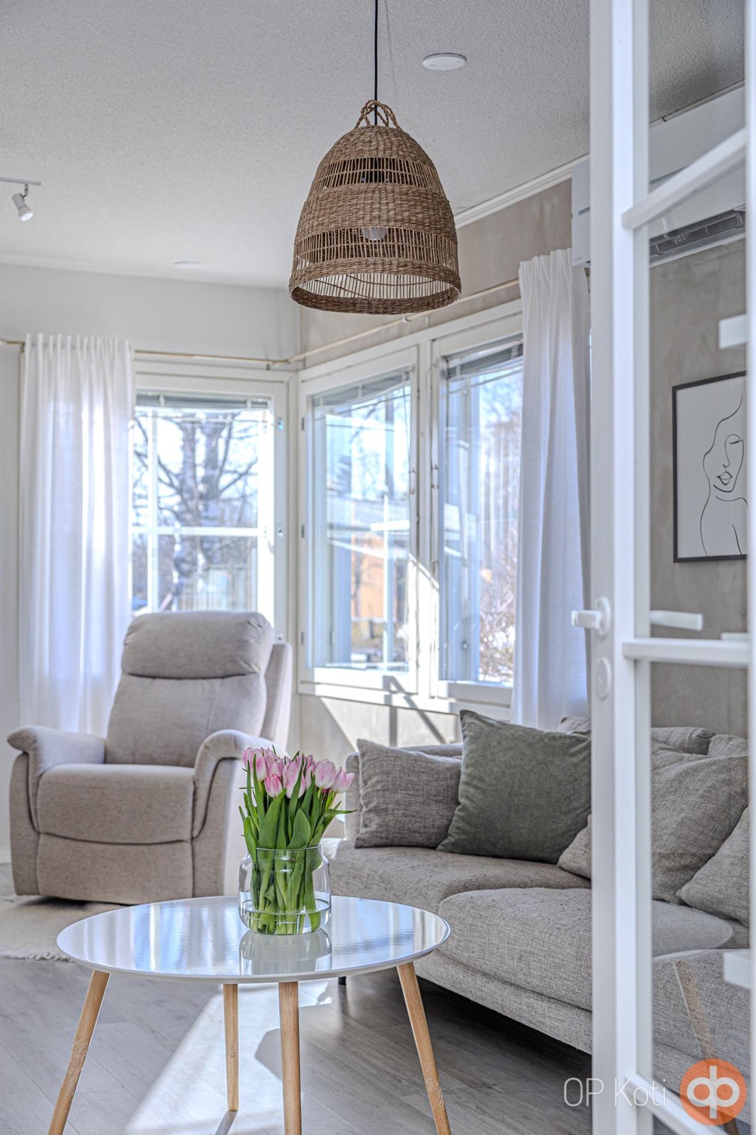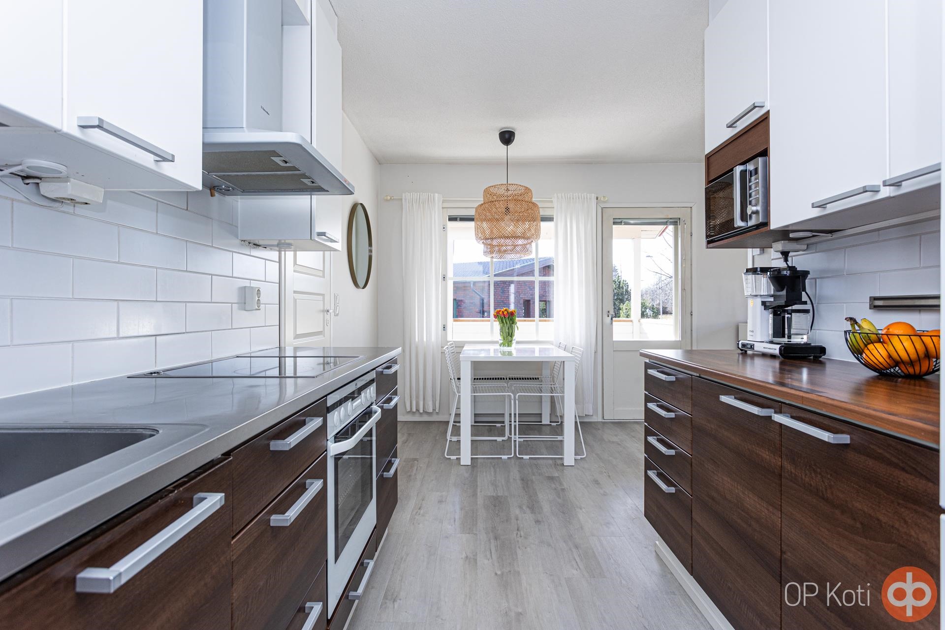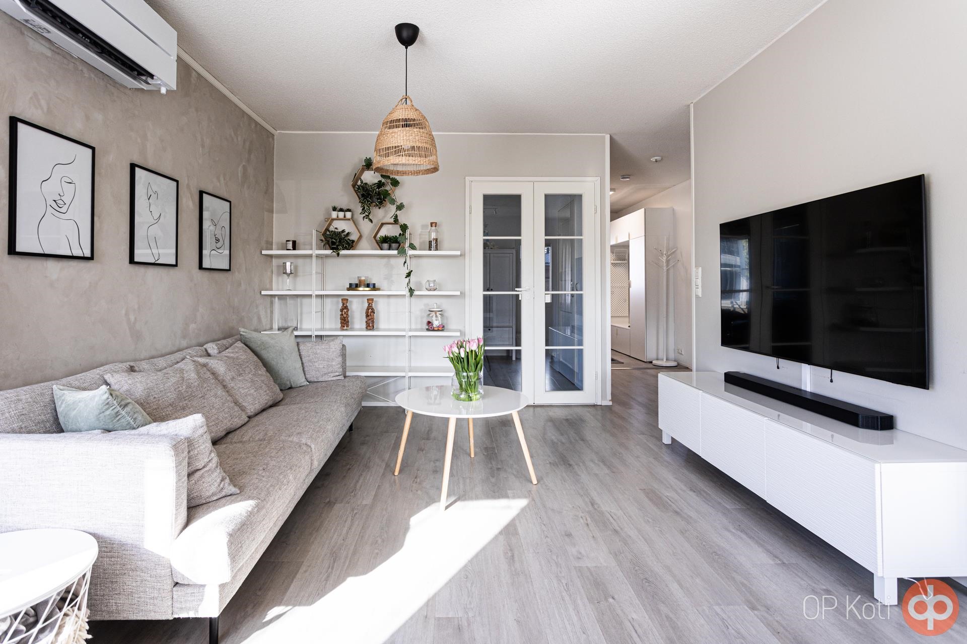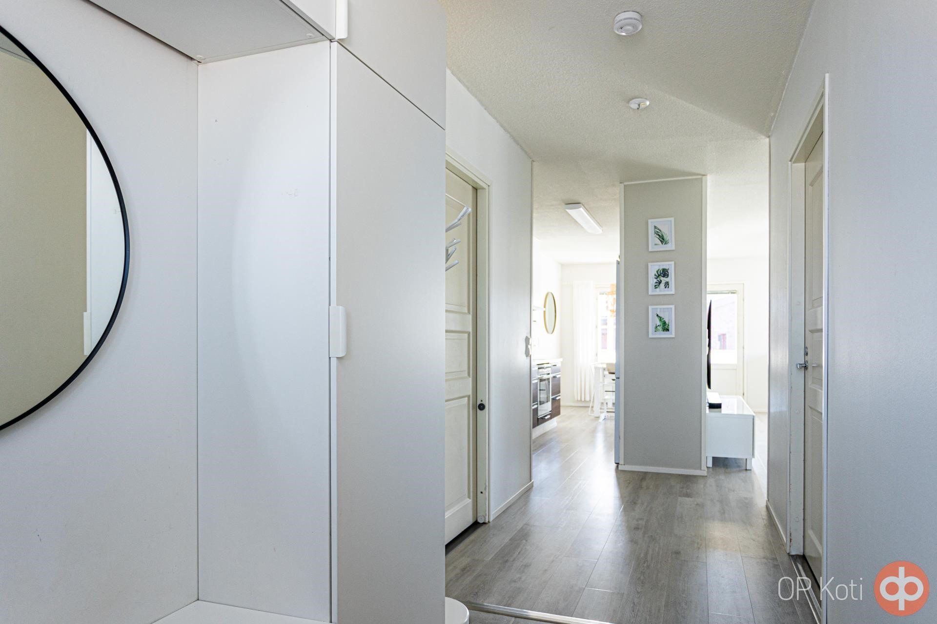 Kodissa on vaalean harmoninen sisustus ja lähes kaikki pinnat ovat hiljattain uudistettu. Ilmalämpöpumppu tuo viihtyvyyttä niin helteisiin kuin viileämpiinkin päiviin. Käytännöllinen pohjaratkaisu tarjoaa kaksi makuuhuonetta: toisessa vaatehuone, toisessa kätevä työskentelytila. Tilavassa eteisessä on laattalattia ja runsaasti kaappitilaa, muissa huoneissa taas laadukkaat vinyylilankkulattiat tuovat lämpöä askeliin.