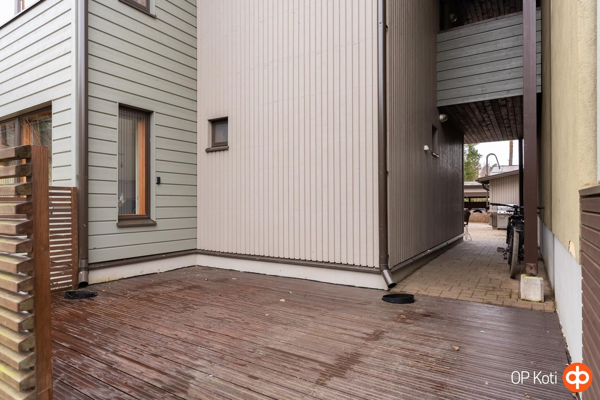 - parveke ja etupiha etelä ja takaterassi/piha pohjonen.