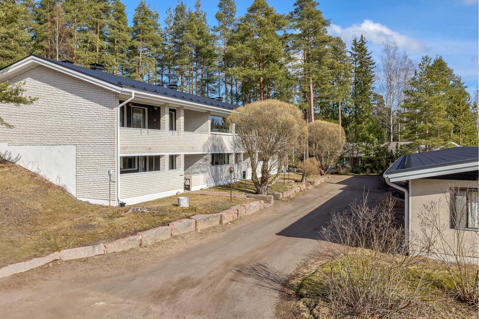 Tilava päätyhuoneisto, josta löytyy kolmen makuuhuoneen lisäksi takkahuone, työhuone, harraste- ja varastotilaa. Kokonaispinta-ala yhteensä 151 m². Täällä on tilaa lapsiperheelle harrastuksiin ja vanhemmille etätyöhön. Rv. 1983 ja yhtiöllä oma tontti 2 141 m². Saunaosasto sekä alakerran wc remontoitu v. 2024. Keittiö ja kodinhoitohuone v. 2021. Kodinhoitohuone kätevästi heti sisääntulon lähellä ja takkahuoneesta pääset vilvoittelemaan terassille. Päädyssä ja takapihalla metsäiset maisemat. Huoneistoon kuuluu kahden auton katospaikka ja lämmin- ja kylmä varasto. Lämmityskulut pysyy maltillisena ilmalämpöpumpun ja varaavan takan ansioista.