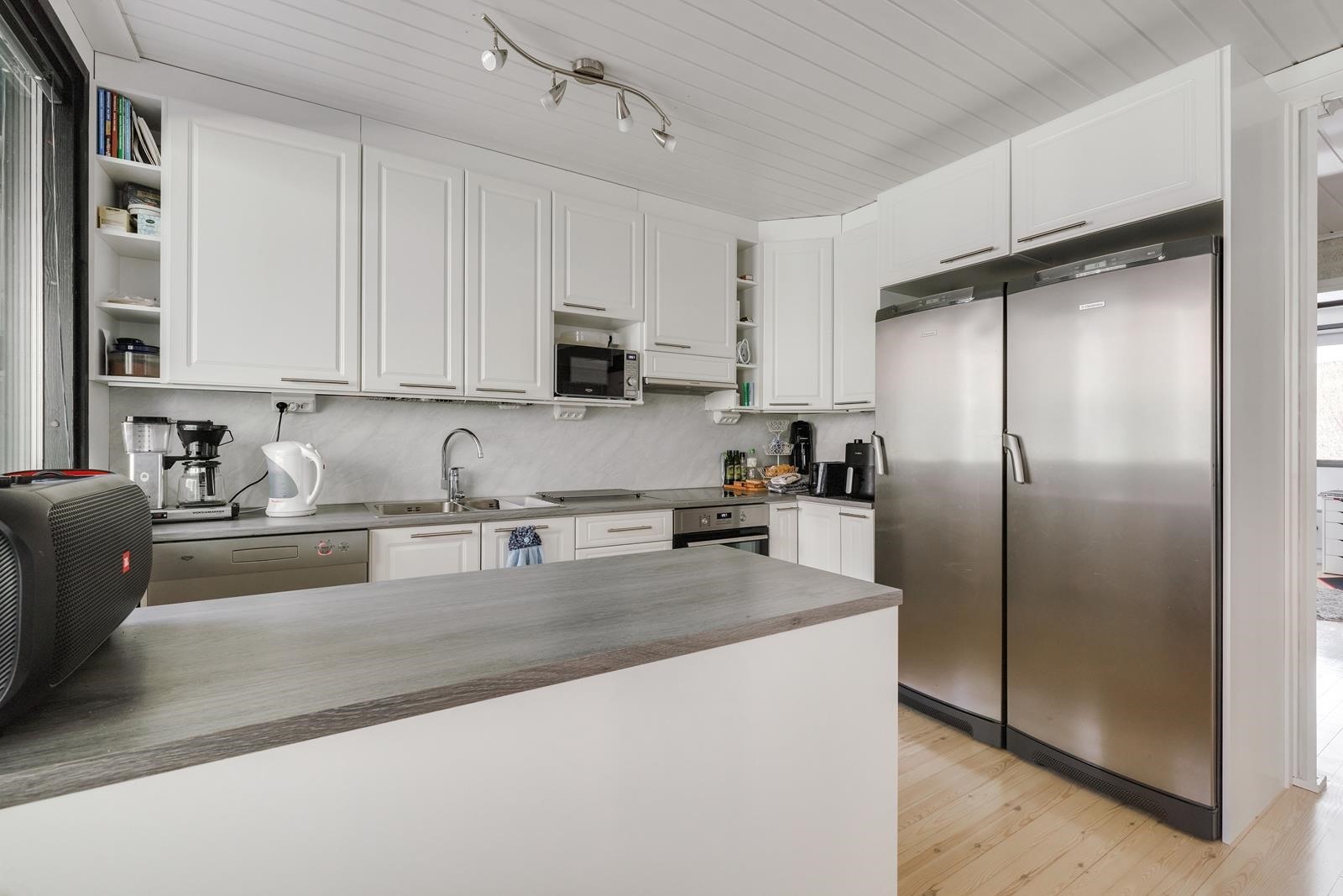 - Jääkaappi 2019, pakastekaappi 2019, induktioliesi 2021, liesituuletin 2021, astianpesukone 2019, kaapistot 2021, kiinteät valaisimet.