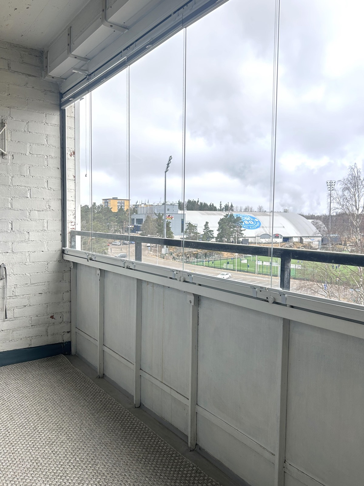 Lasitetulta parvekkeelta avautuvat komeat näkymät lännen suuntaan, täydellinen paikka nauttia ilta-auringosta.