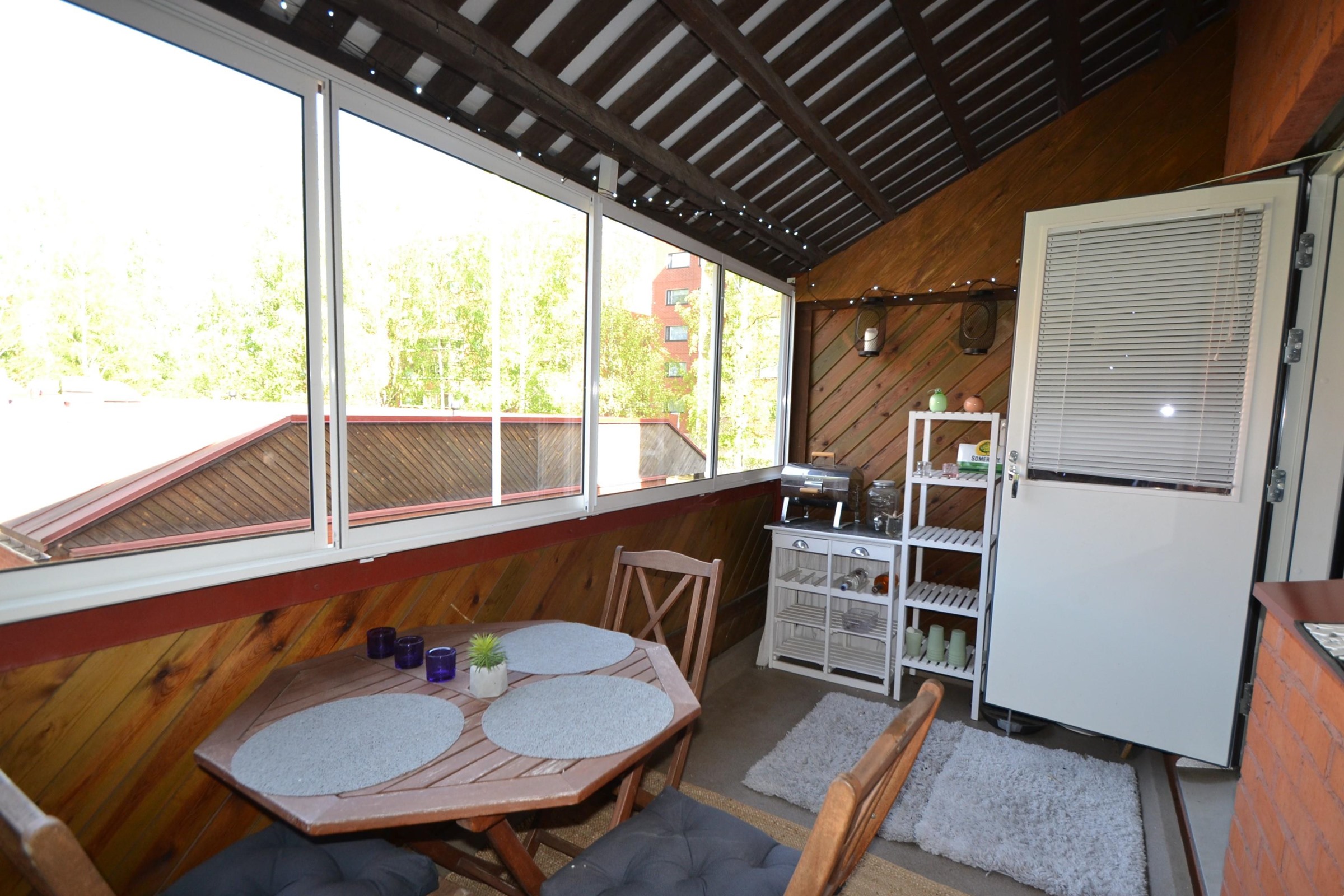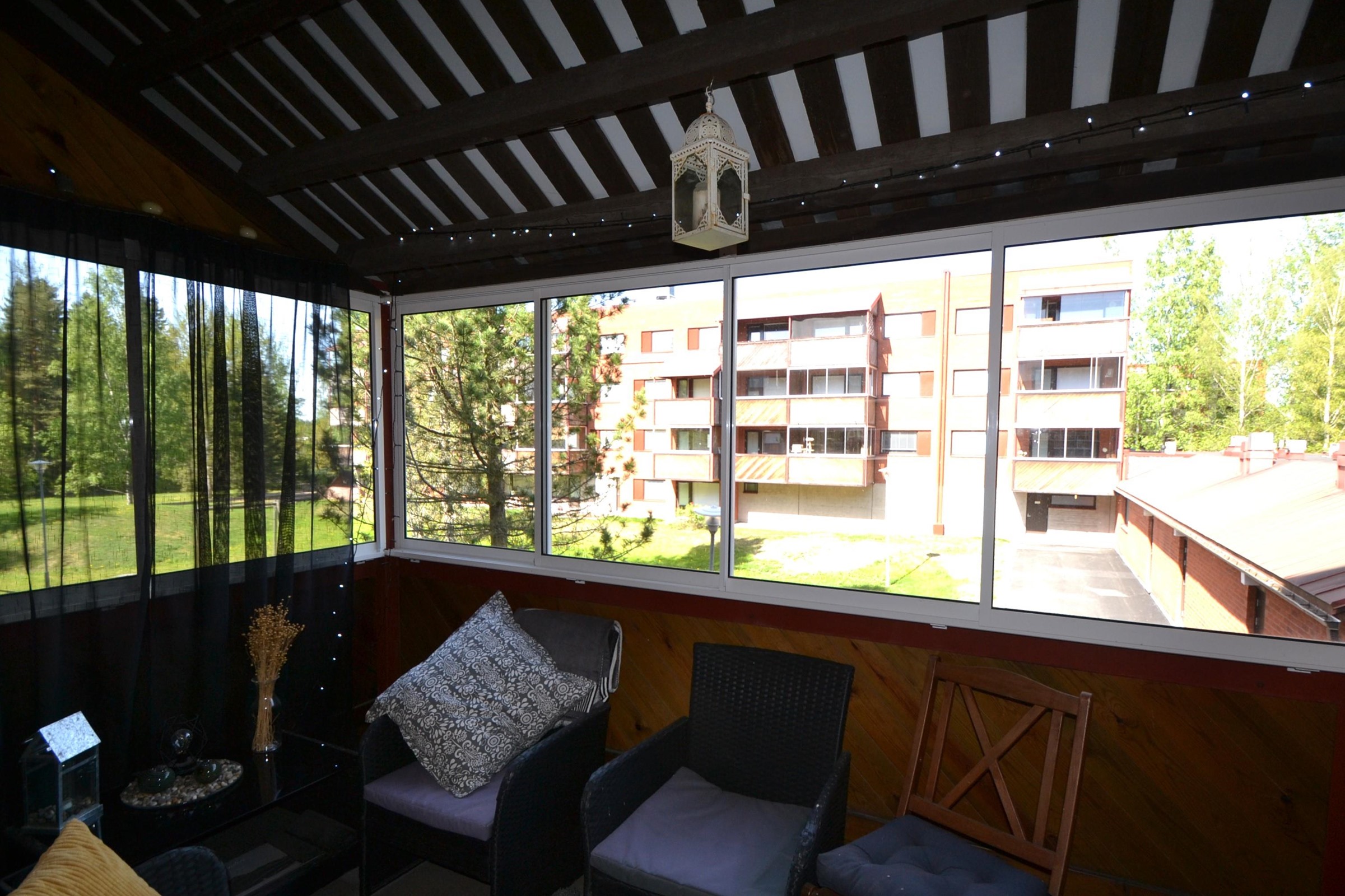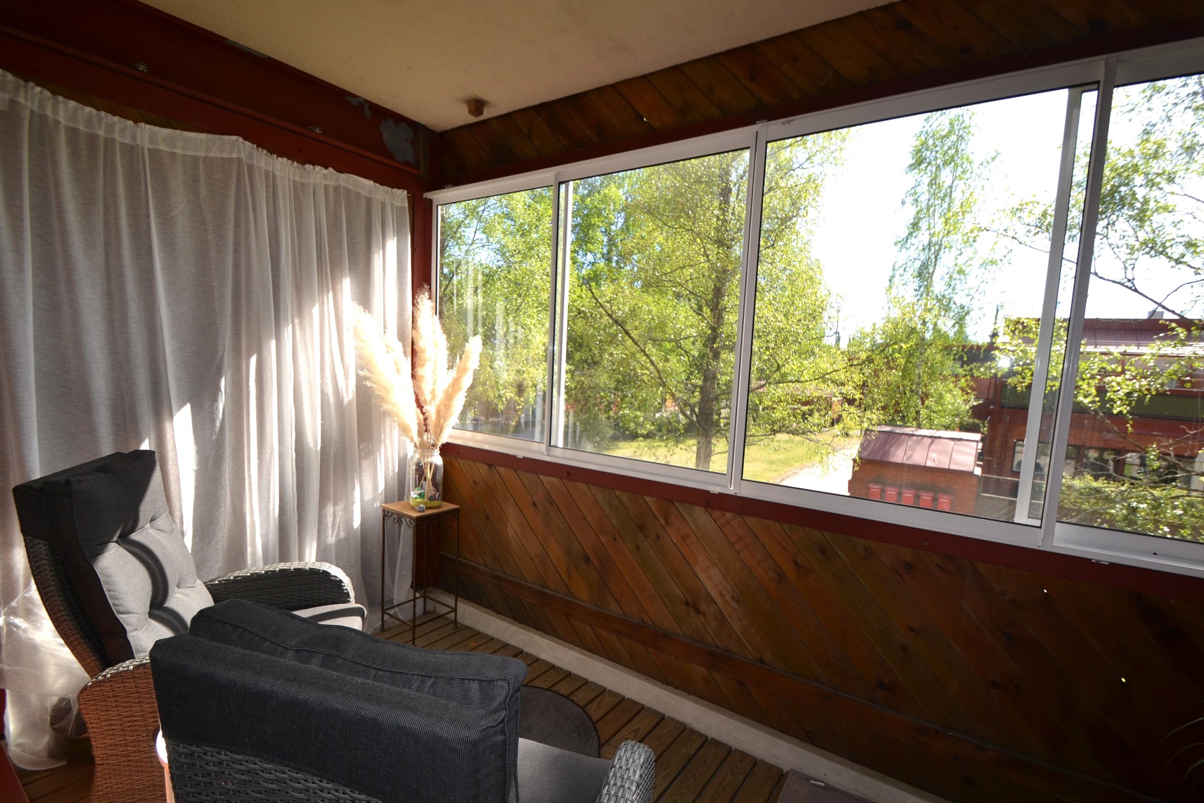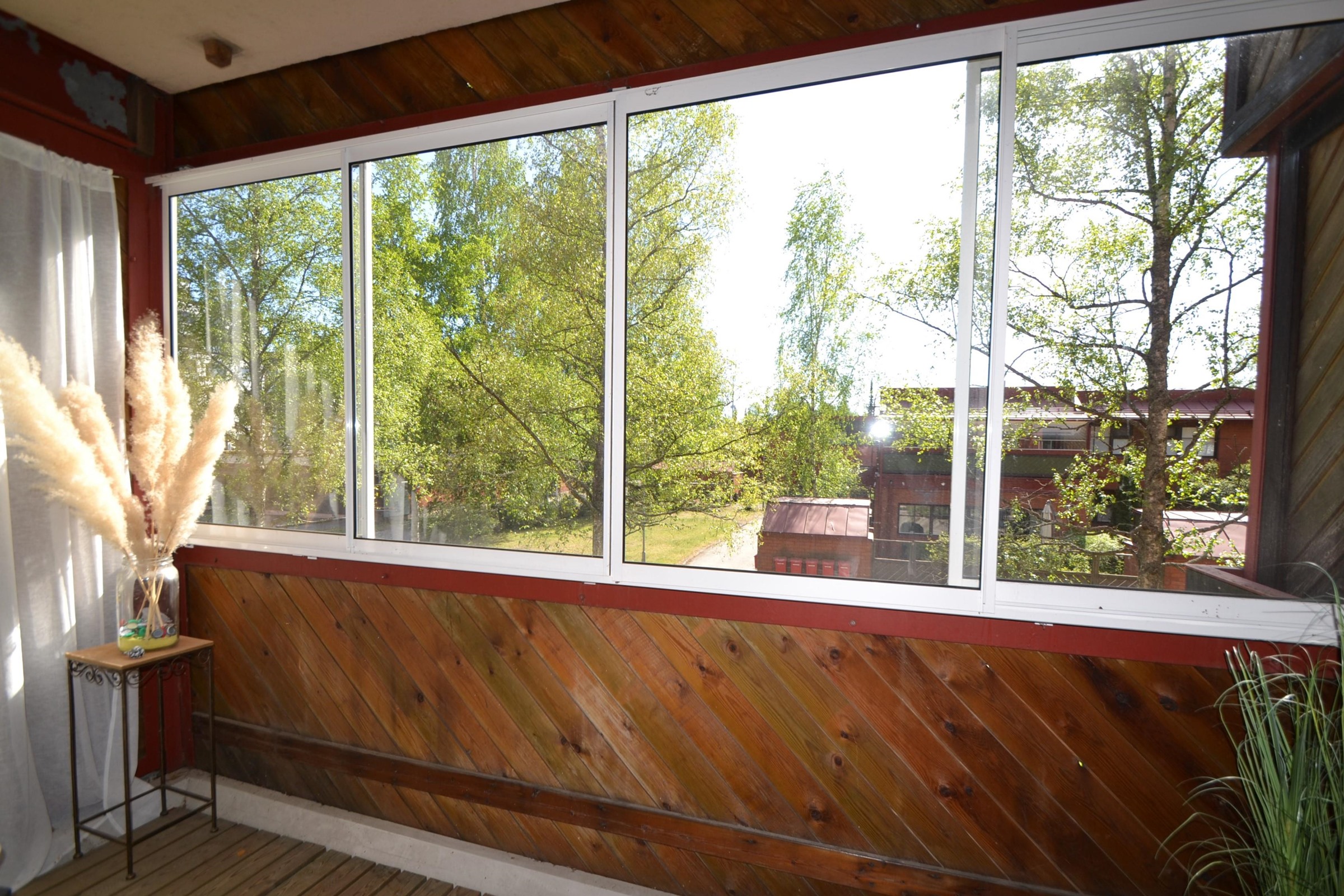 Kaksi lasitettua parveketta tuo viihtyisyyttä ja lisätilaa asumiseen.