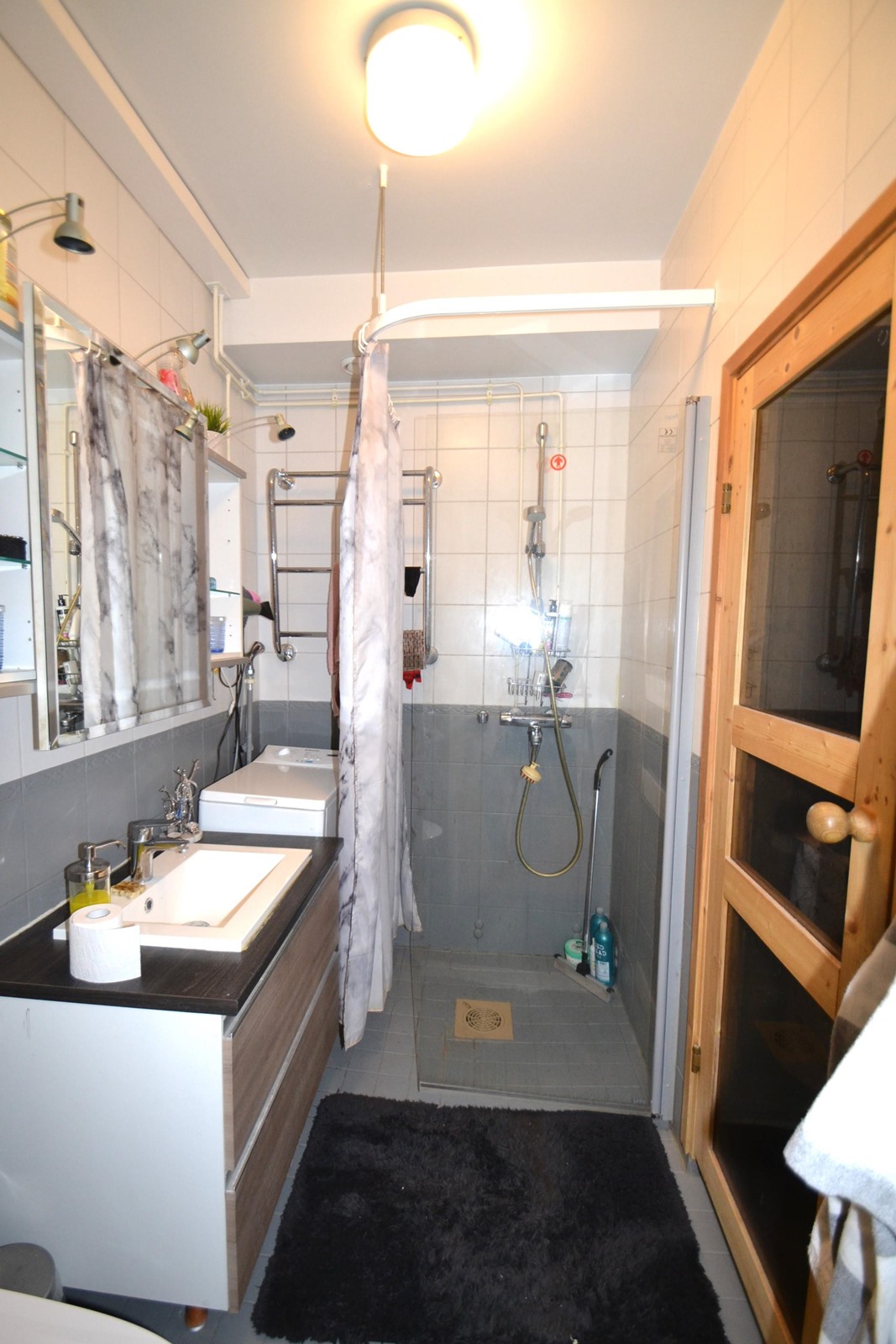 - Sauna, suihku, peilikaappi, allaskaappi, pesukoneliitäntä.