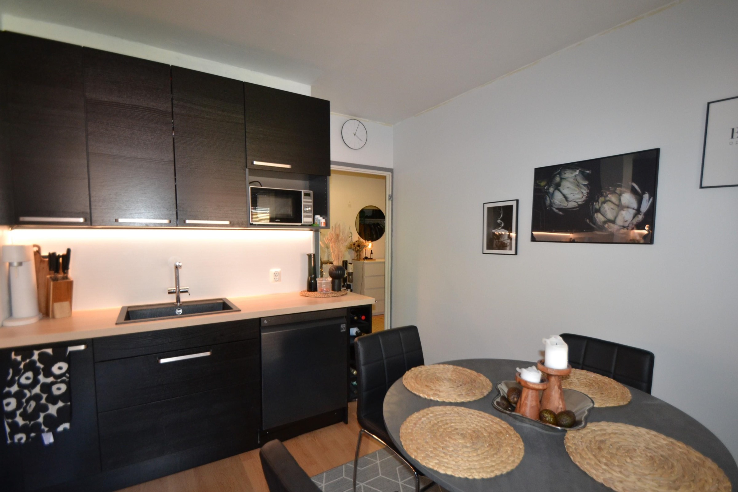 Keittiö on moderni ja nykyaikainen uusilla kodinkoneilla varustettu, kokonaan uusittuu pari vuotta sitten.
