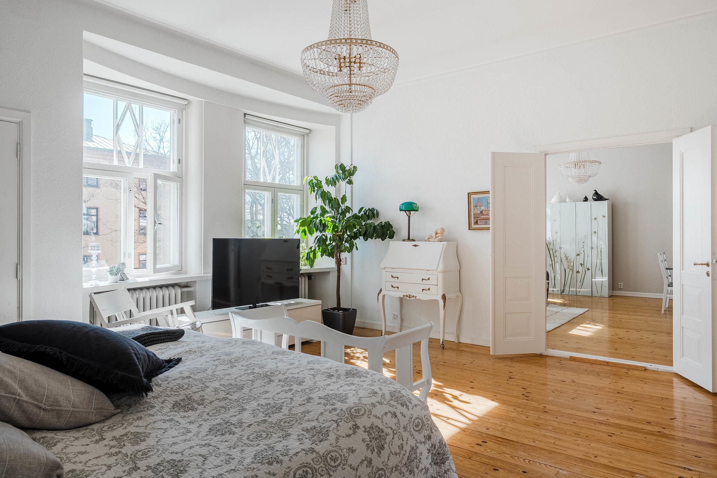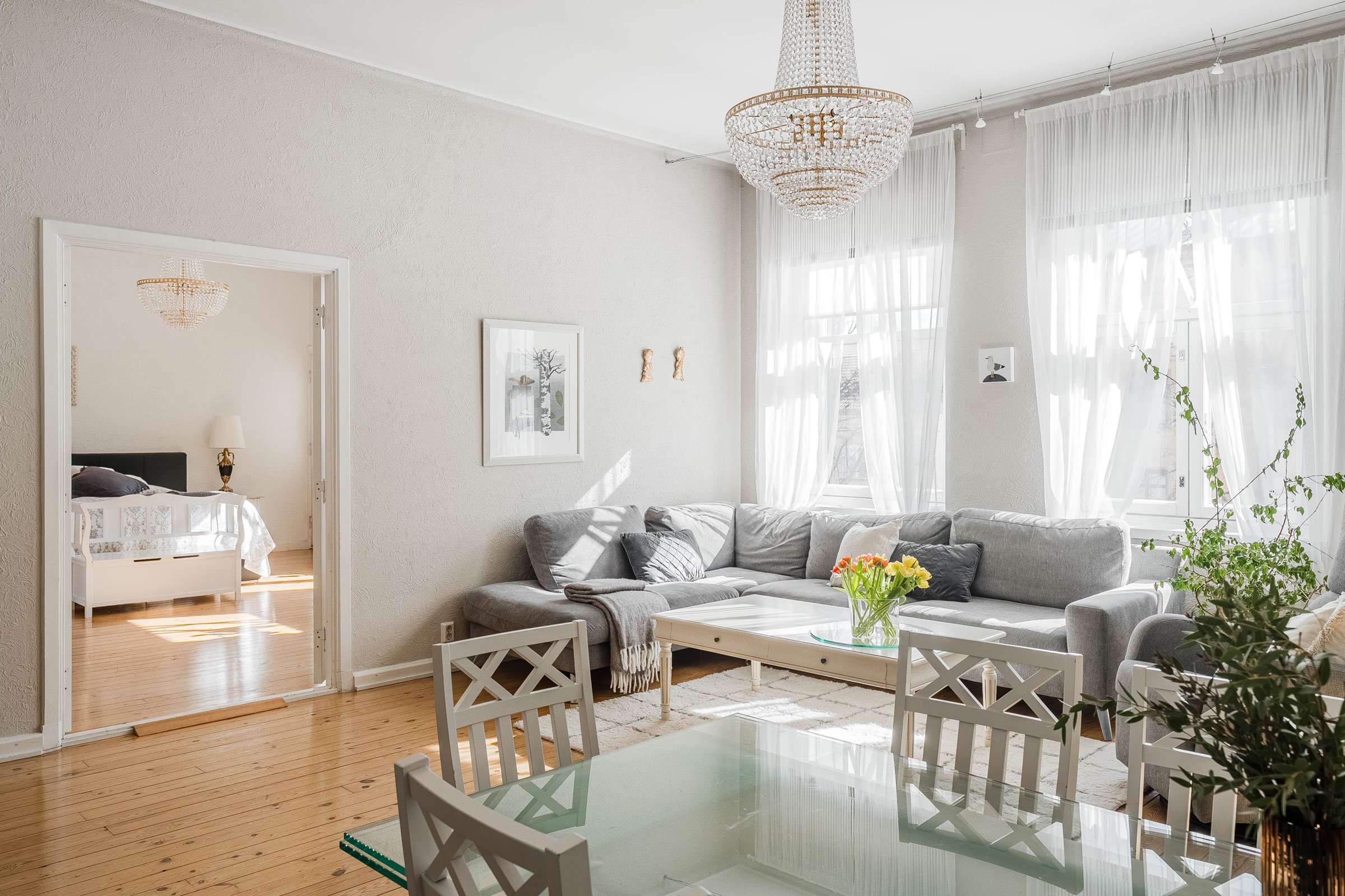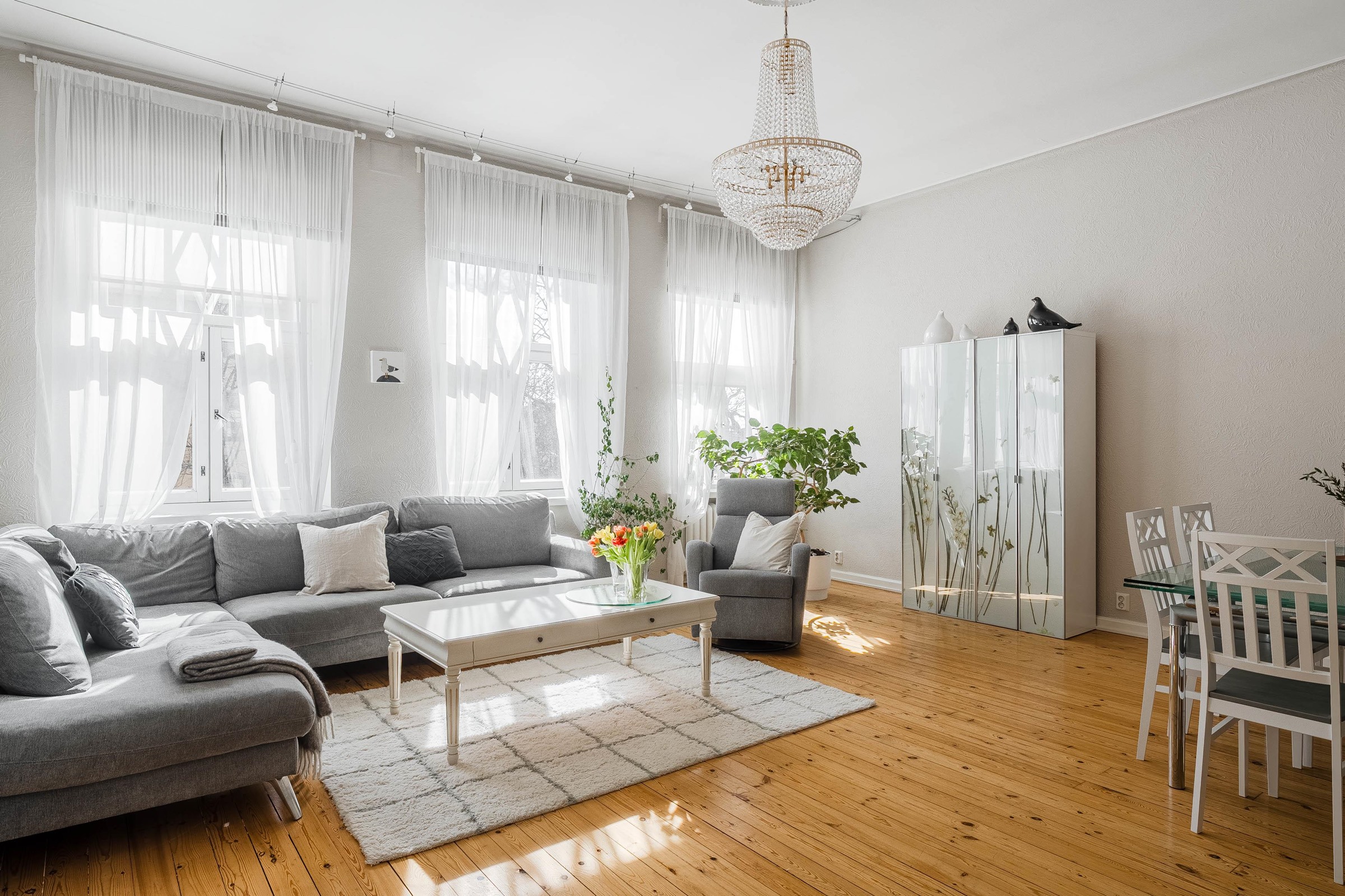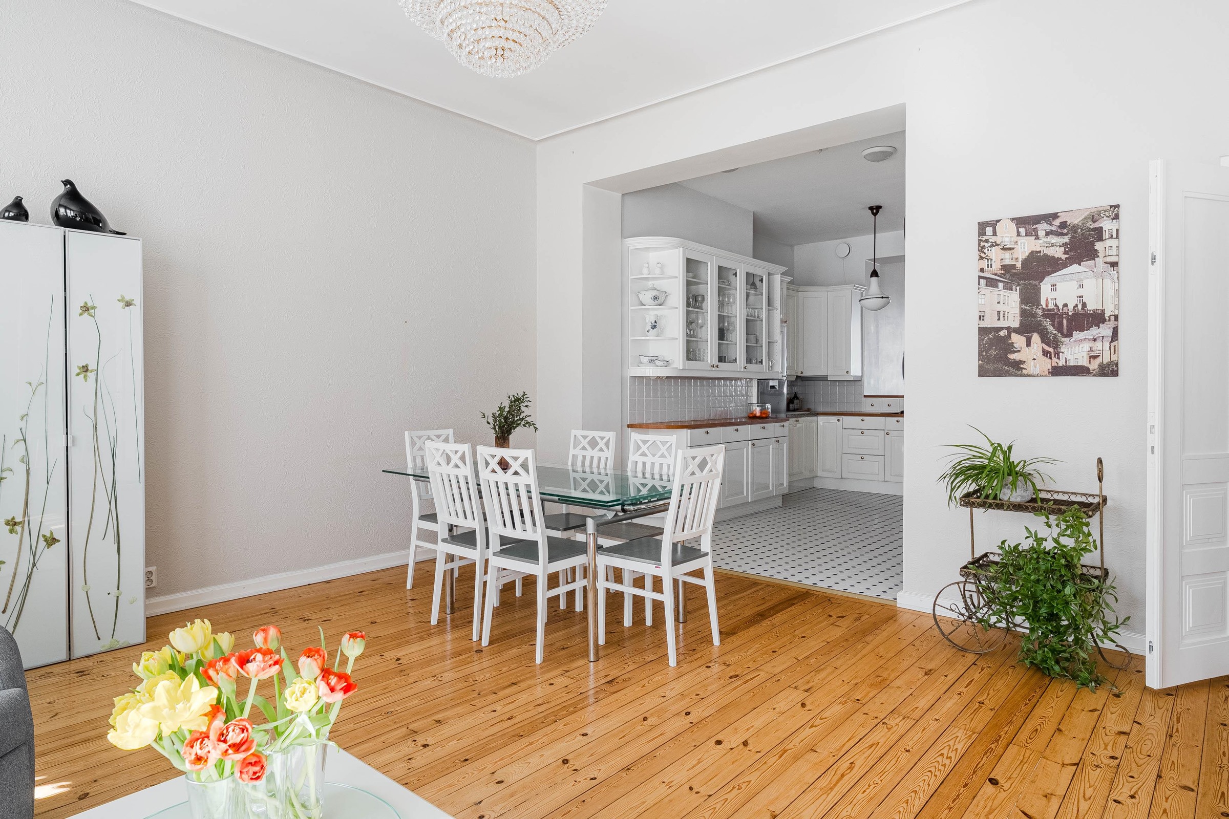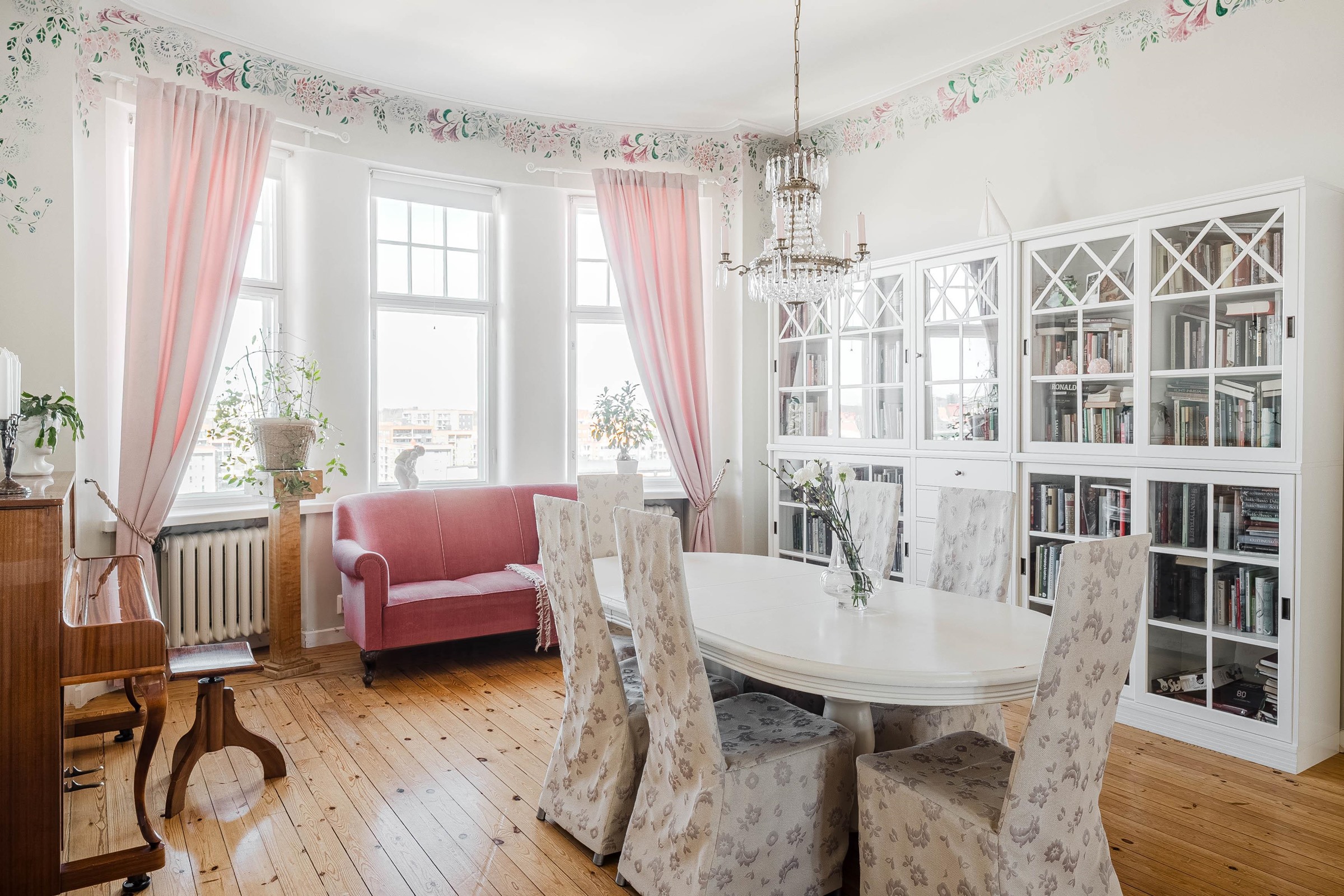 Asunnon henkeä on vaalittu tarkoin tehdyillä, aikaa kunnioittavilla remonteilla. Alkuperäiset piirteet, korkeat huoneet, suuret ikkunat ja kauniit yksityiskohdat ovat säilyneet ja nivoutuvat saumattomasti nykyaikaiseen asumismukavuuteen. Jokainen tila huokuu arvokkuutta, historiaa ja harkittua estetiikkaa.