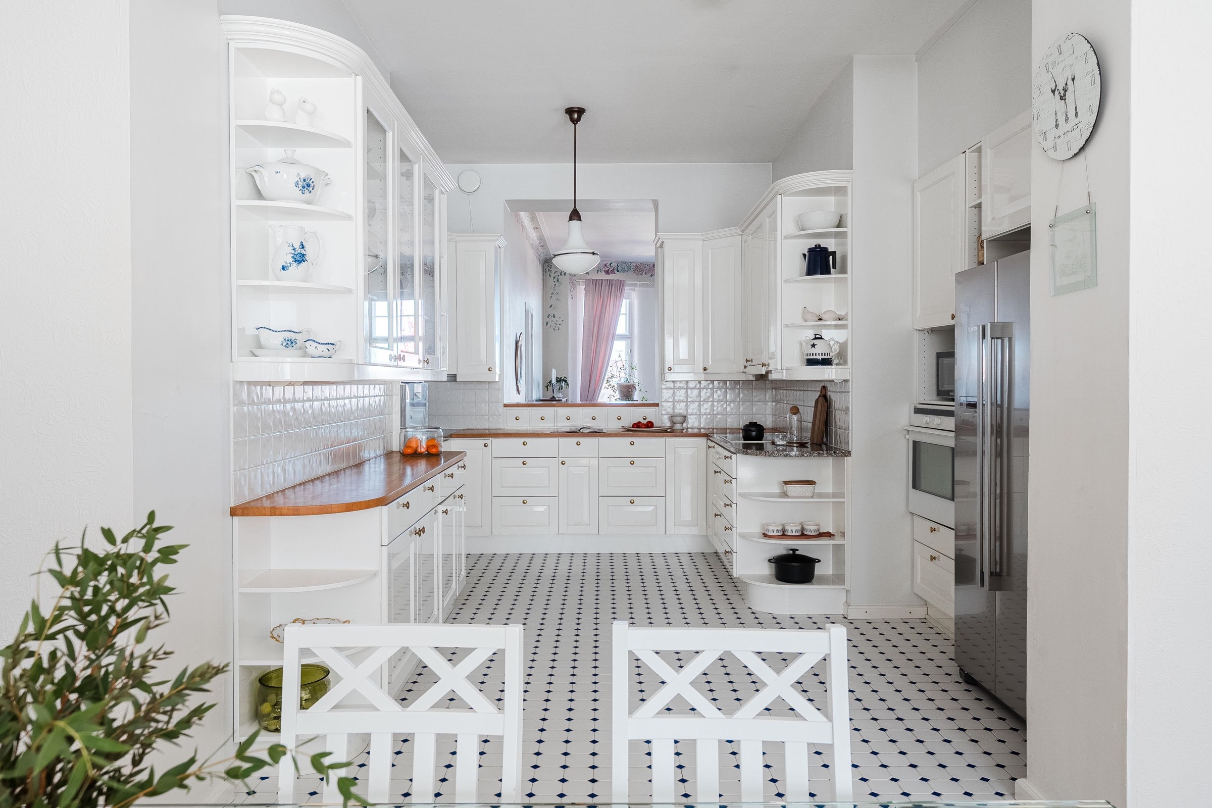 - Jääkaappipakastin, erillisuuni, keraaminen liesi, liesituuletin hiilikuitu, mikroaaltouuni, astianpesukone, kaapistot, kiinteät valaisimet. Keittiössä lattialämmitys