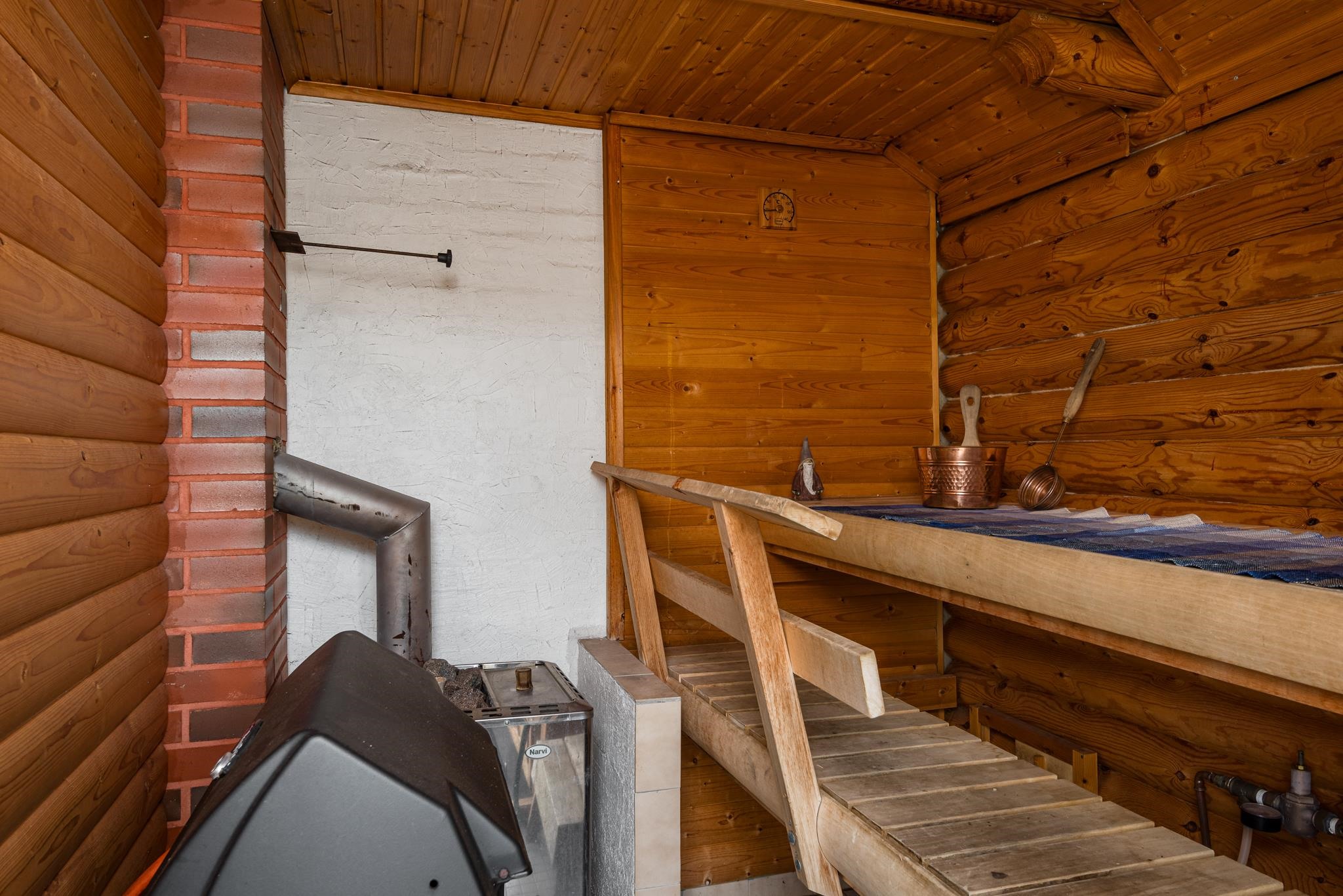- Sauna, puukiuas kiukaan yhteydessä vesisäiliö, lattialämmitys. Saunan puolelle tulee käyttövesi.
