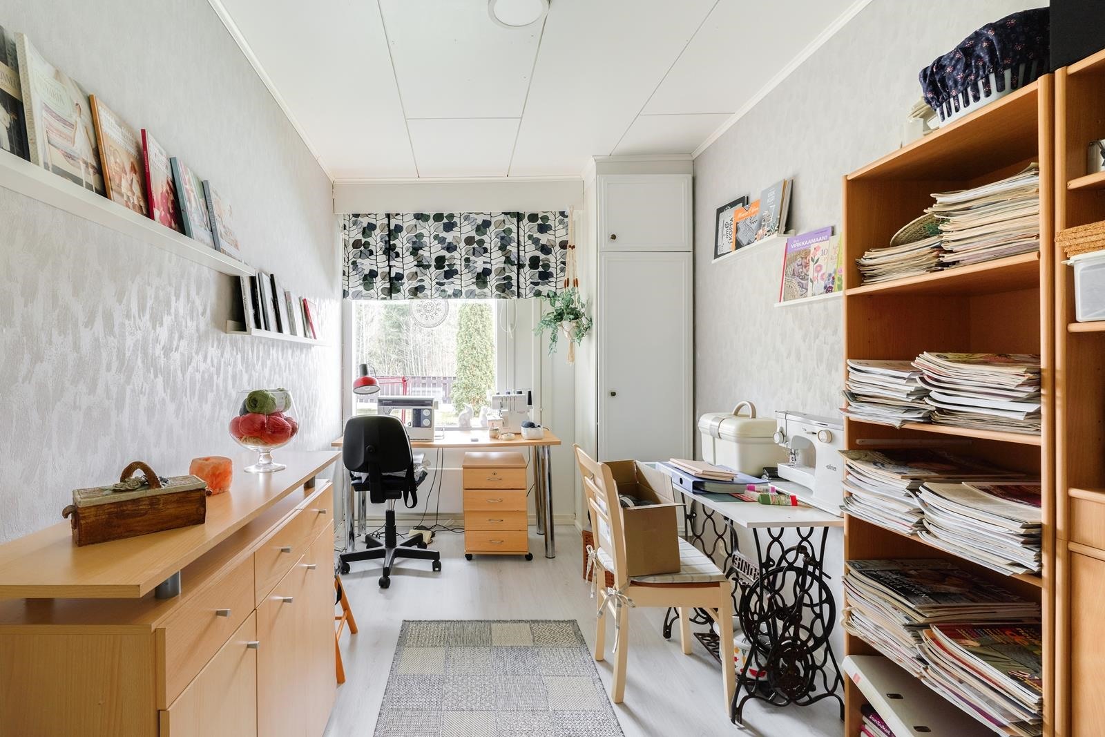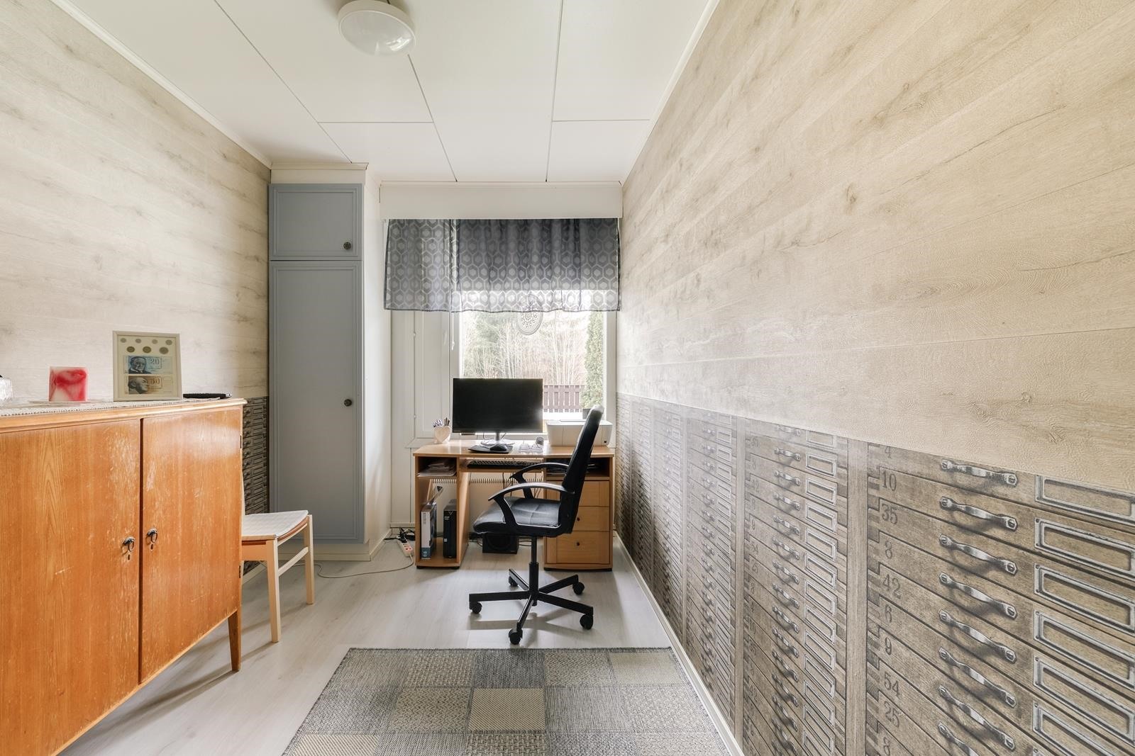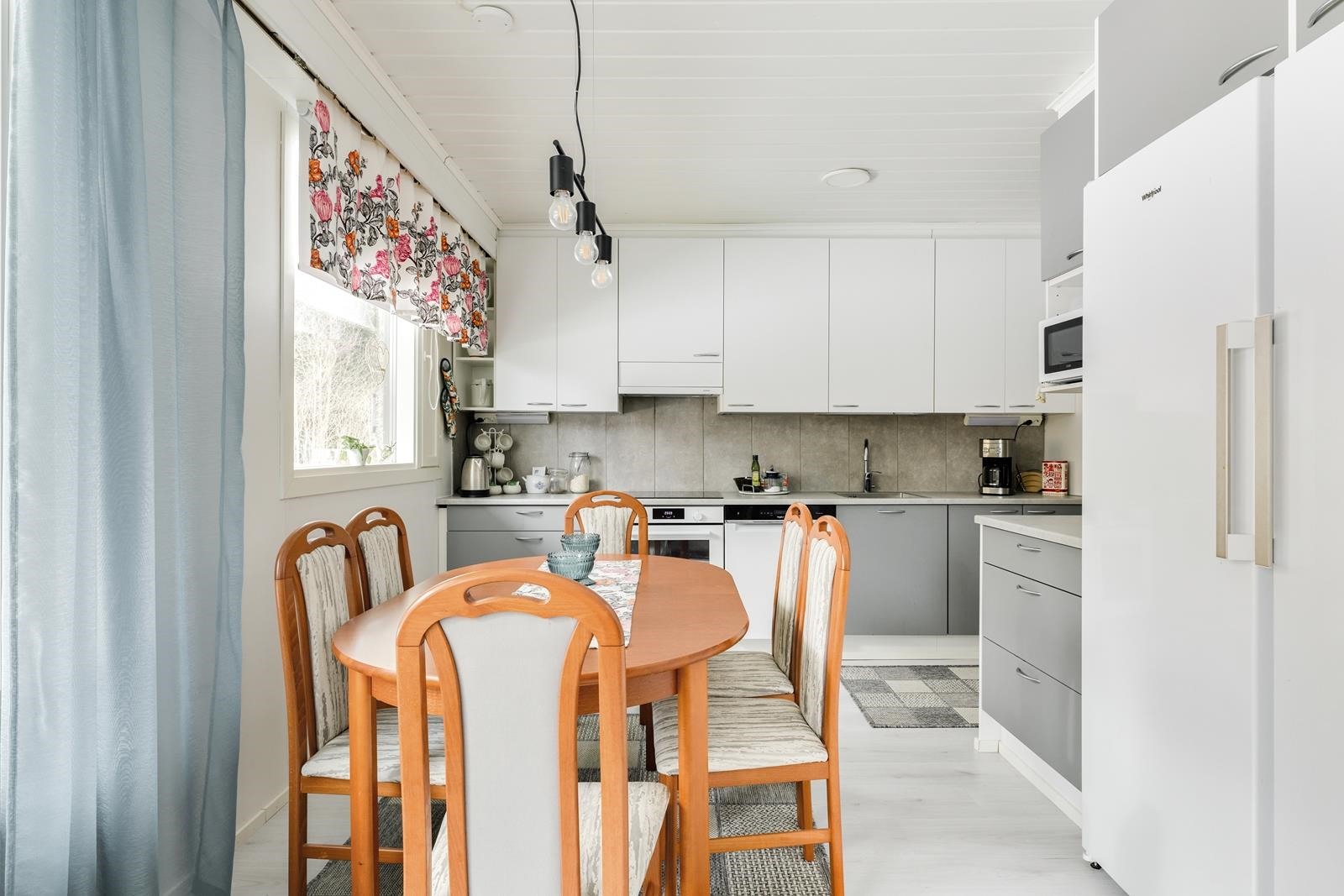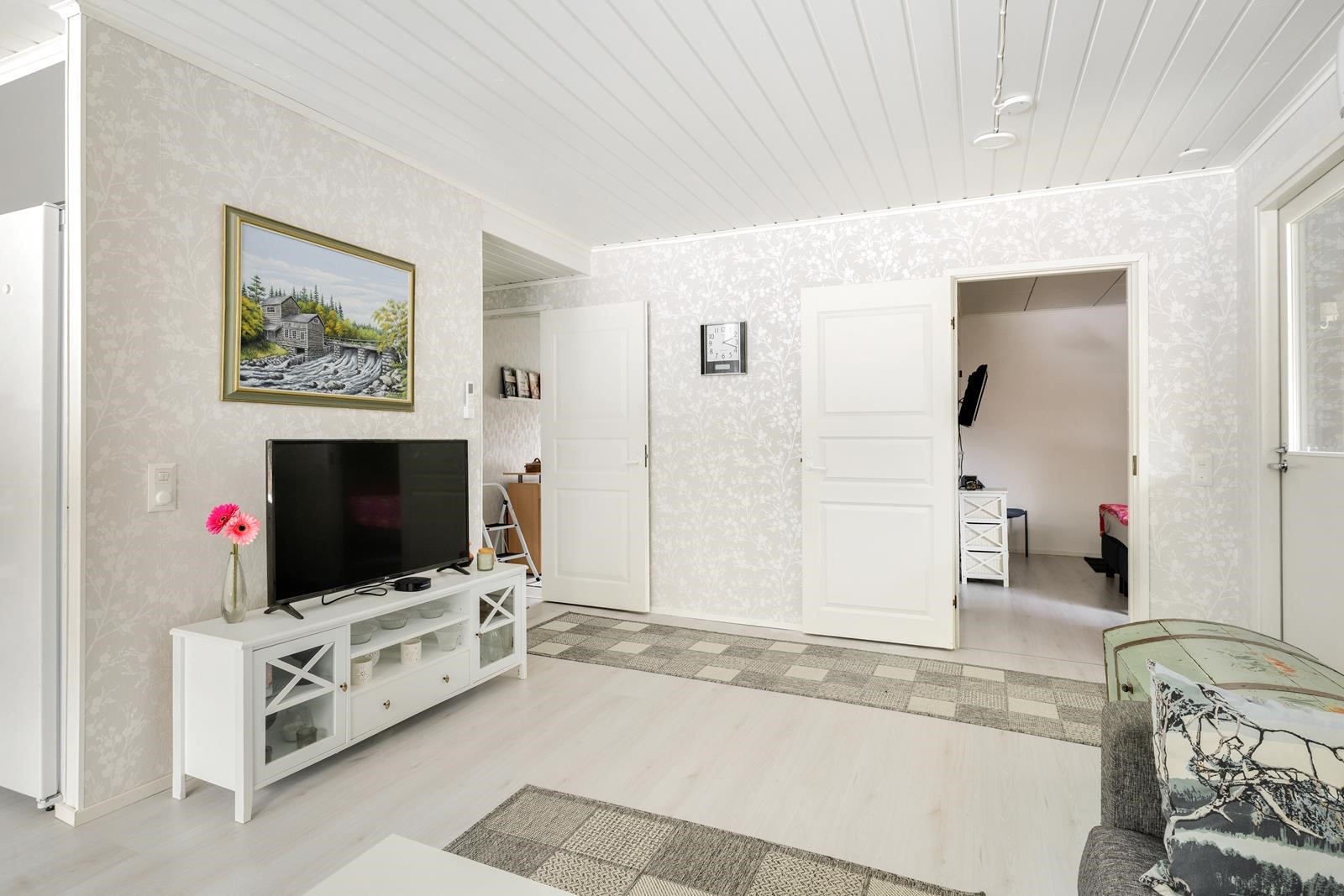 Keittiö: laminaattia. Olohuone: laminaattia.