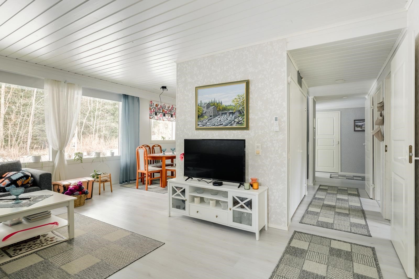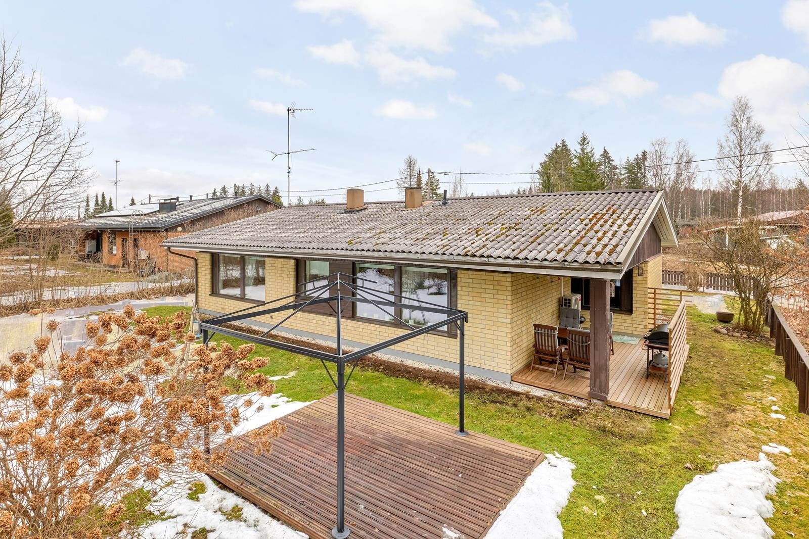 Tässä kodissa yhdistyvät toimiva pohjaratkaisu ja viihtyisät oleskelutilat. Olohuone on avara ja valoisa ja osittain avoin keittiö luo sujuvan kokonaisuuden arkeen ja yhdessäoloon. Makuuhuoneita on kolme ja lisäksi talossa on erillinen takkahuone, joka soveltuu monipuolisesti oleskeluun tai harrastetilaksi. Kylpyhuoneen yhteydessä on käytännöllinen kodinhoitonurkkaus pesukoneelle ja pyykinsäilytykselle. Arjen sujuvuutta lisäävät kaksi erillistä wc:tä sekä kaksi vaatehuonetta. Toinen vaatehuoneista sijaitsee heti tuulikaapin yhteydessä ja tarjoaa runsaasti säilytystilaa esimerkiksi ulkovaatteille. Lämmitys hoituu sähköpattereilla, ilmalämpöpumpulla sekä takalla, energiatehokasta! Olohuoneesta käynti terassille, piha on puistoon rajoittuva. Autotalli kahdelle autolle. Autotallin ovet on uusittu ja tilassa on lisäksi oma ilmalämpöpumppu.
