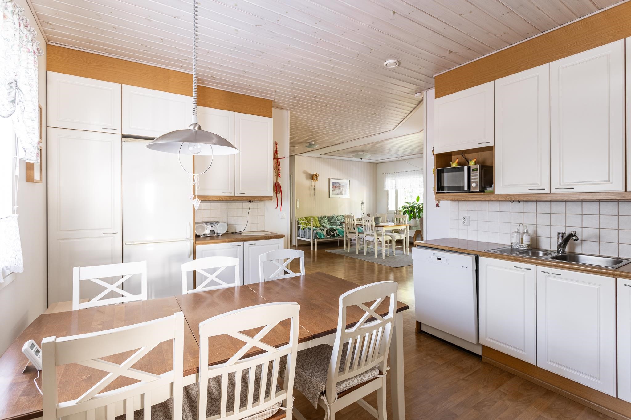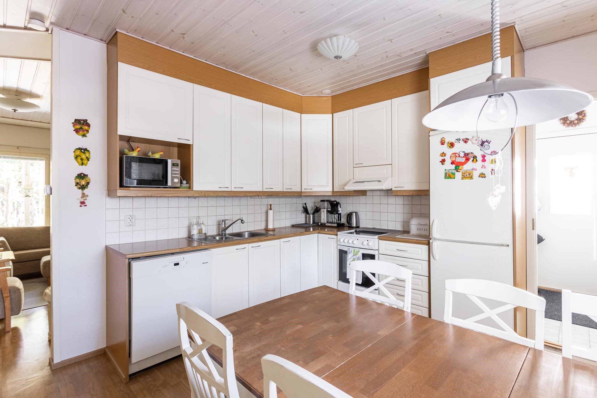 - Jääkaappi, pakastekaappi, keraaminen liesi, astianpesukone, kaapistot, kiinteät valaisimet.