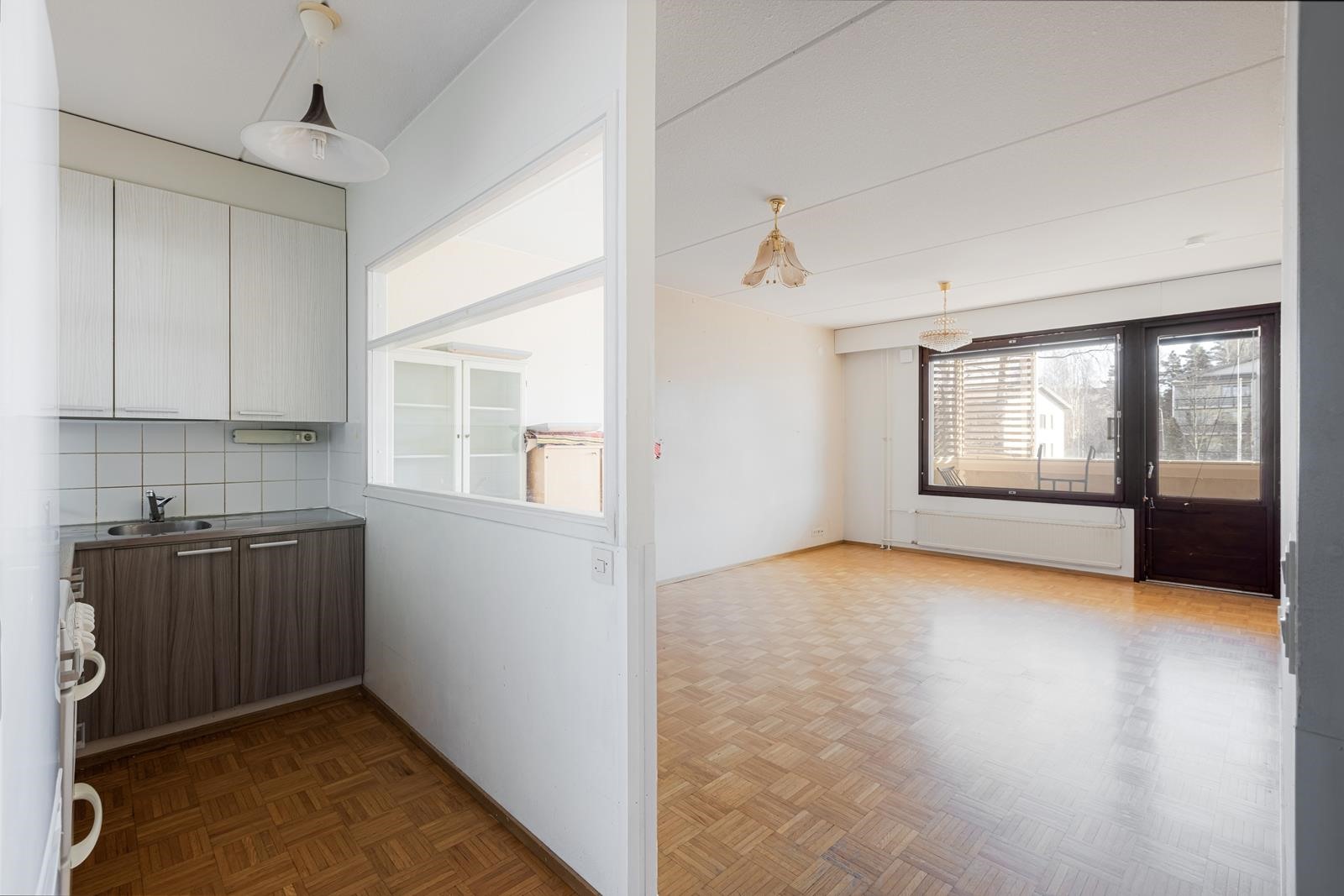 Keittiö: parketti. Olohuone: parketti.
