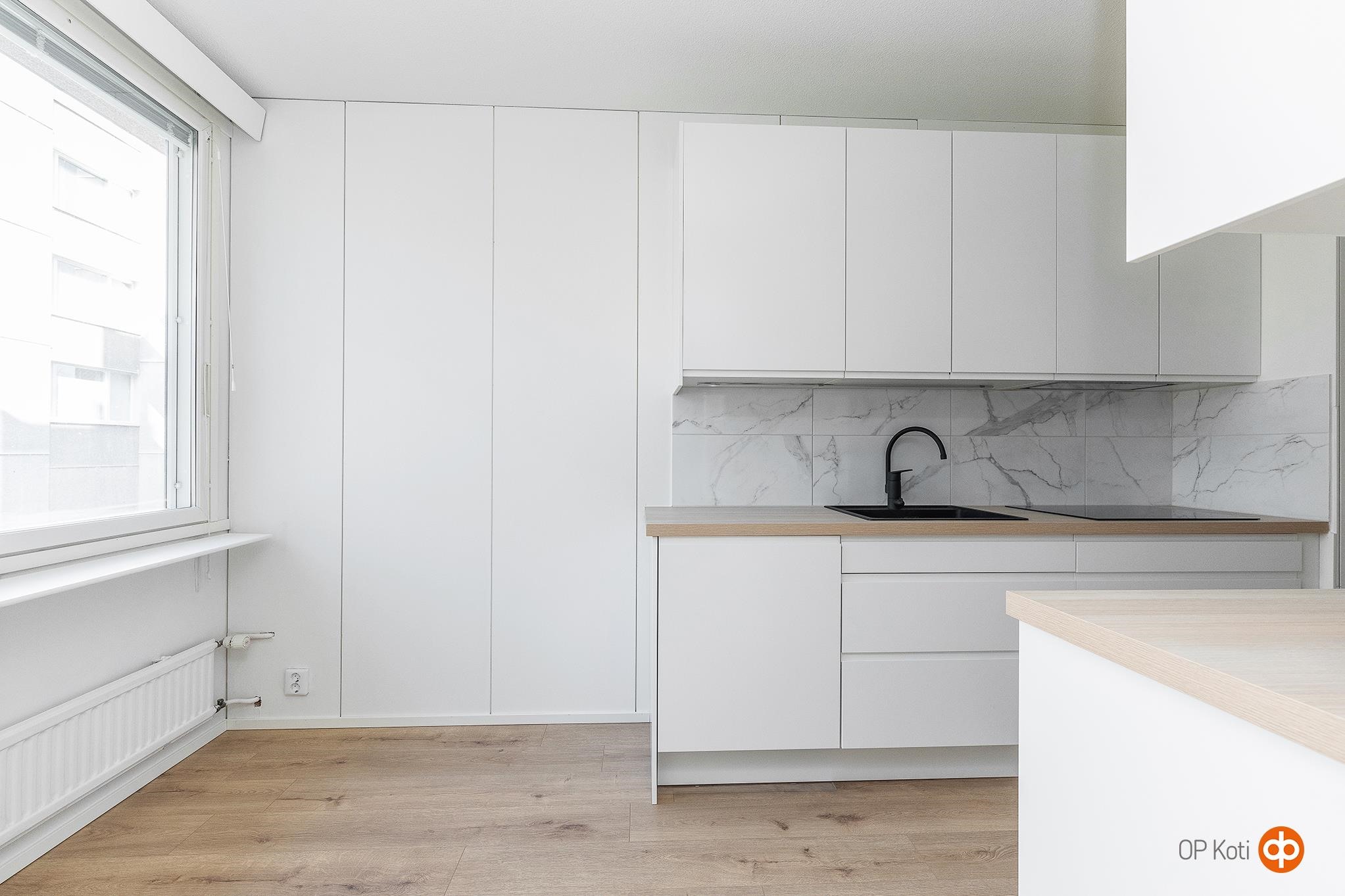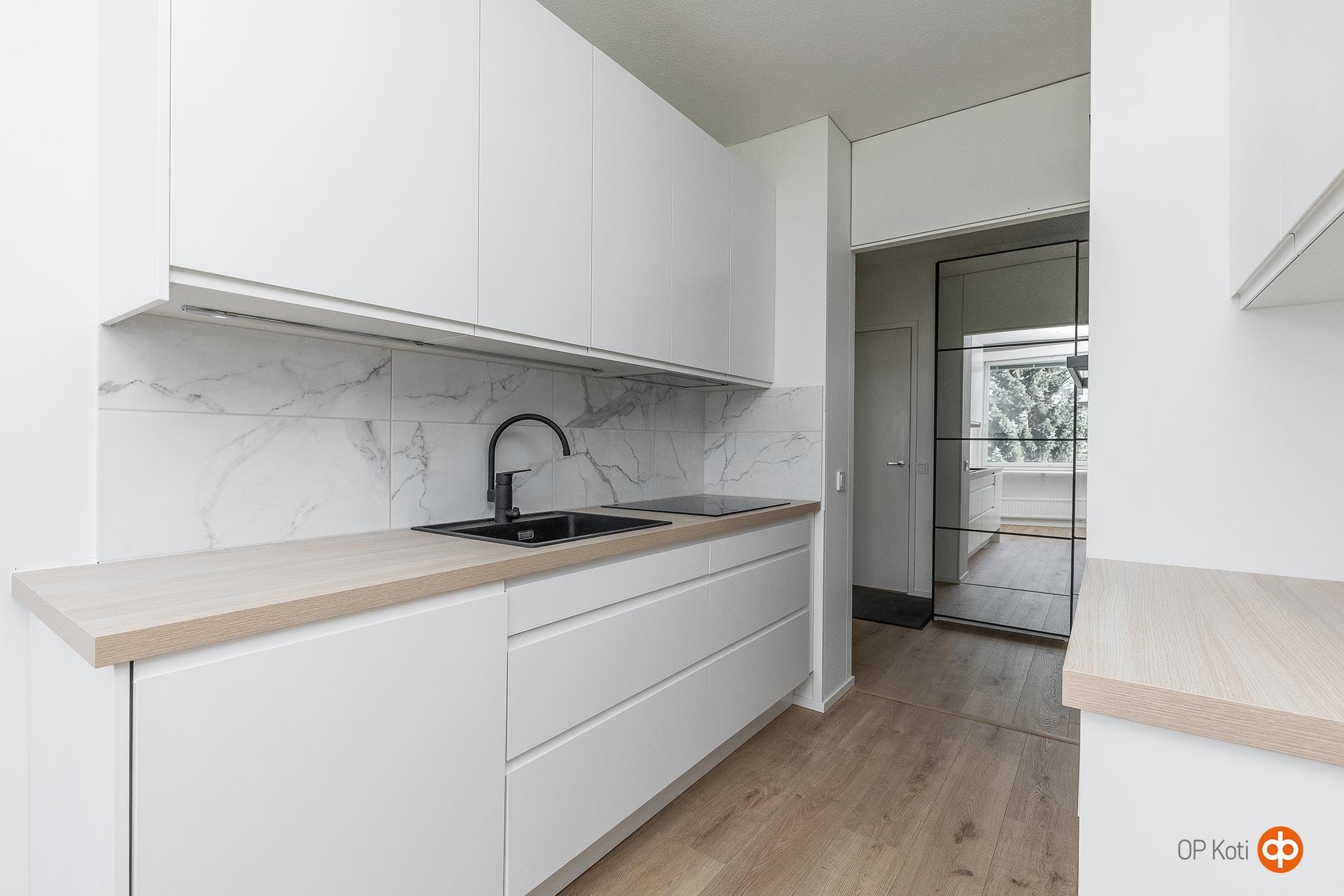 - Jääviileäkaappi Uusi!, erillisuuni Uusi!, liesitaso Uusi!, induktioliesi Uusi!, liesituuletin Uusi!, mikroaaltouuni Uusi! Integroitu, astianpesukone Uusi! Integroitu, kaapistot Uudet vaaleat kaapit, kiinteät valaisimet. Keittön tasot ovat laminaattia. Muuta: Keittiö remotoitu v. 2026. Kaapit kodinkoneineen ovat aivan uudet