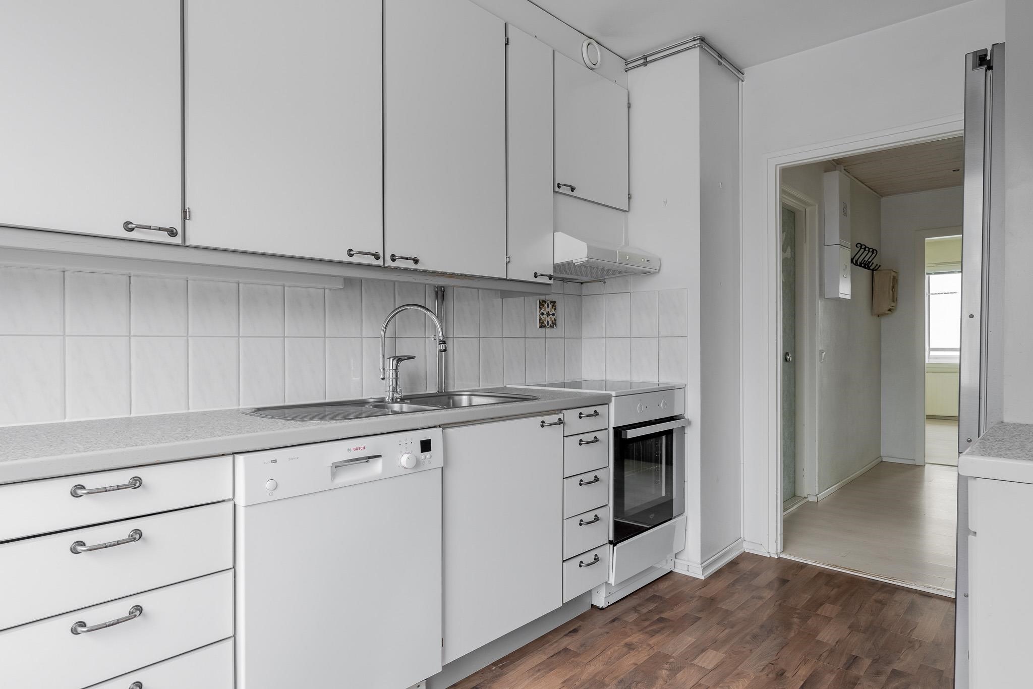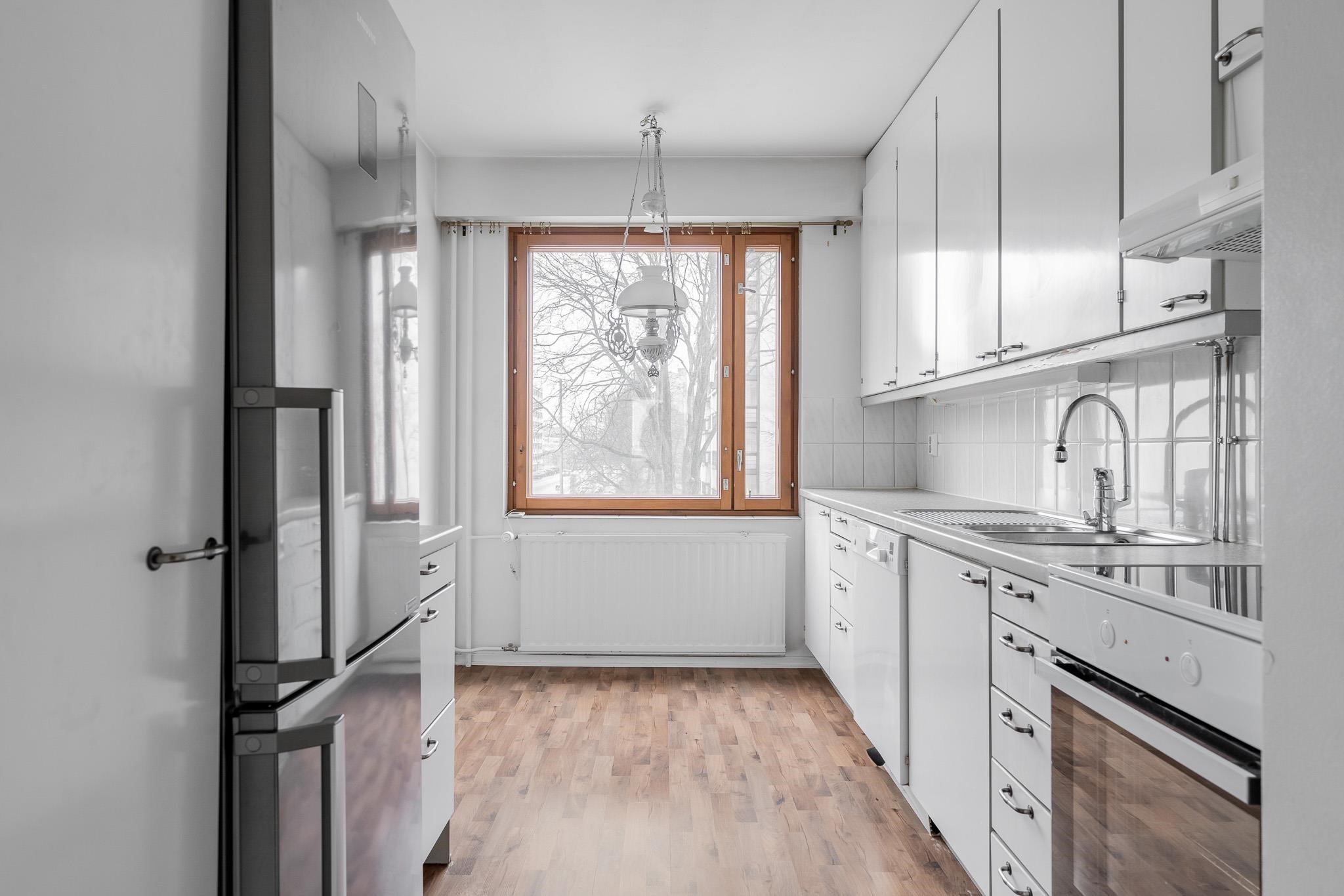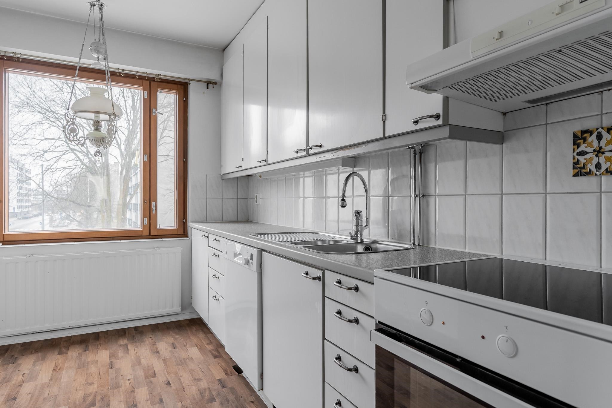 - Jääkaappipakastin, induktioliesi, liesituuletin, astianpesukone, kaapistot ja kiinteät valaisimet.