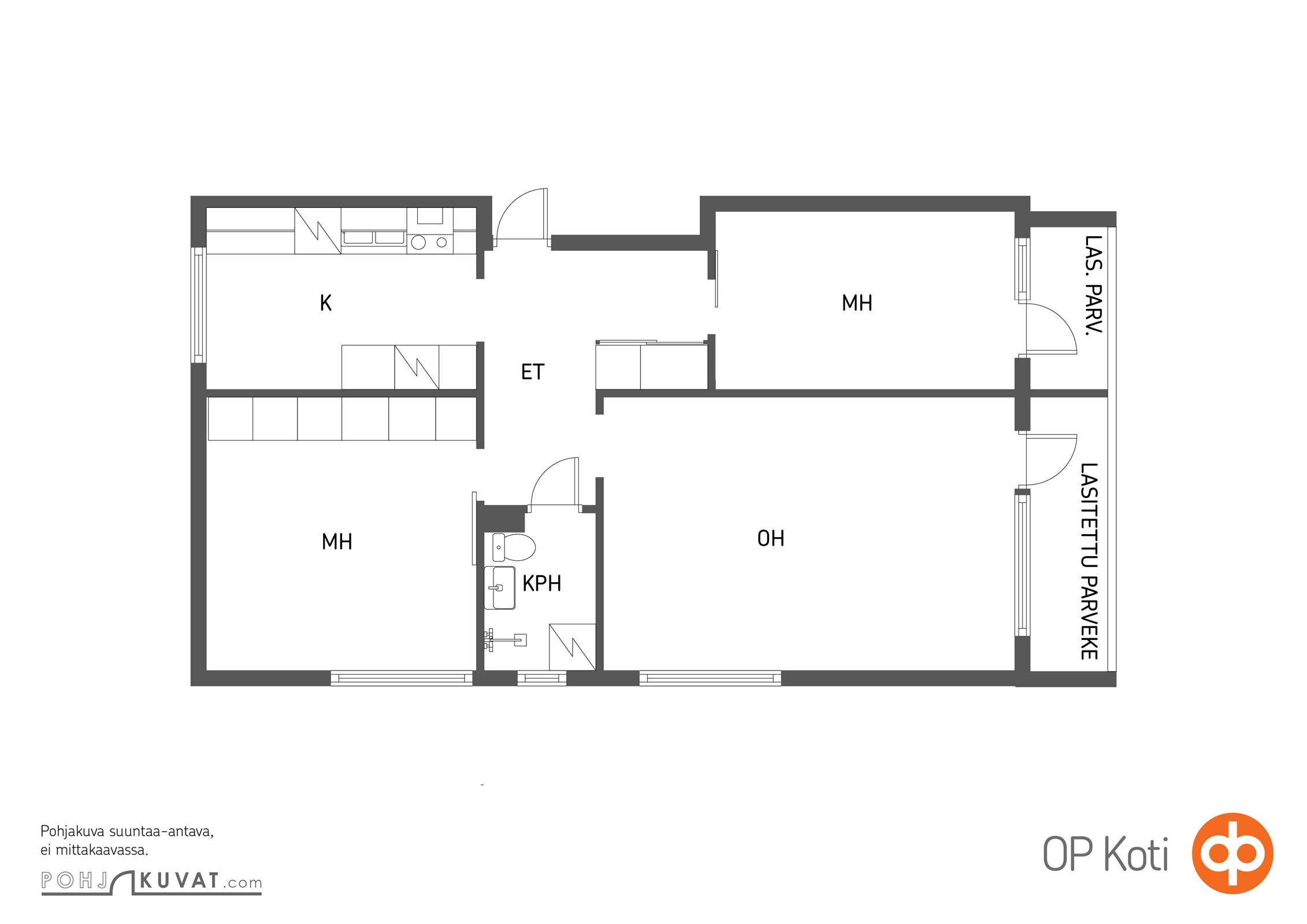 - 3h + k + kph/wc + 2 lasitettua parveketta (Yj. 3 h + k)