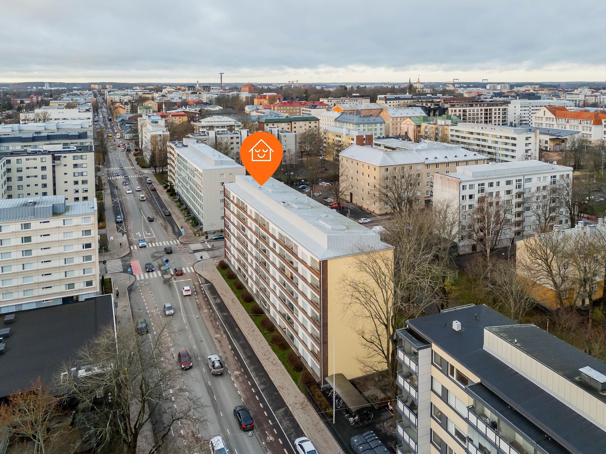 Sijainti on yksi tämän kodin parhaista puolista: läheinen Kupittaan puisto tarjoaa monipuoliset puitteet ulkoiluun ja vapaa-aikaan ympäri vuoden. Lisäksi alueelta löytyvät sujuvat kulkuyhteydet, palvelut ja oppilaitokset kävelyetäisyydeltä.