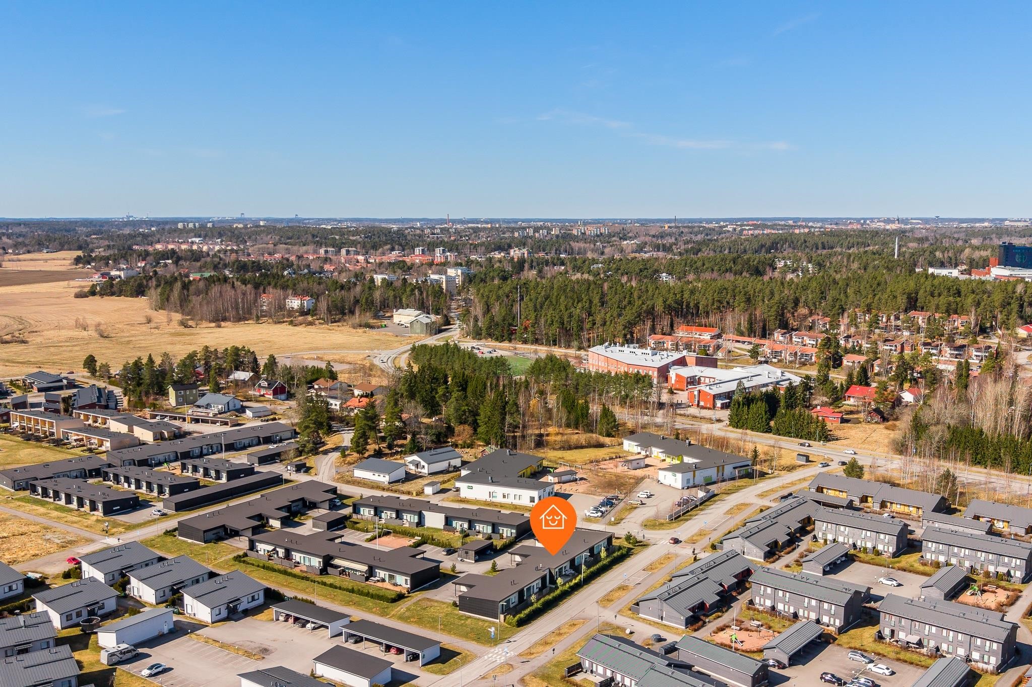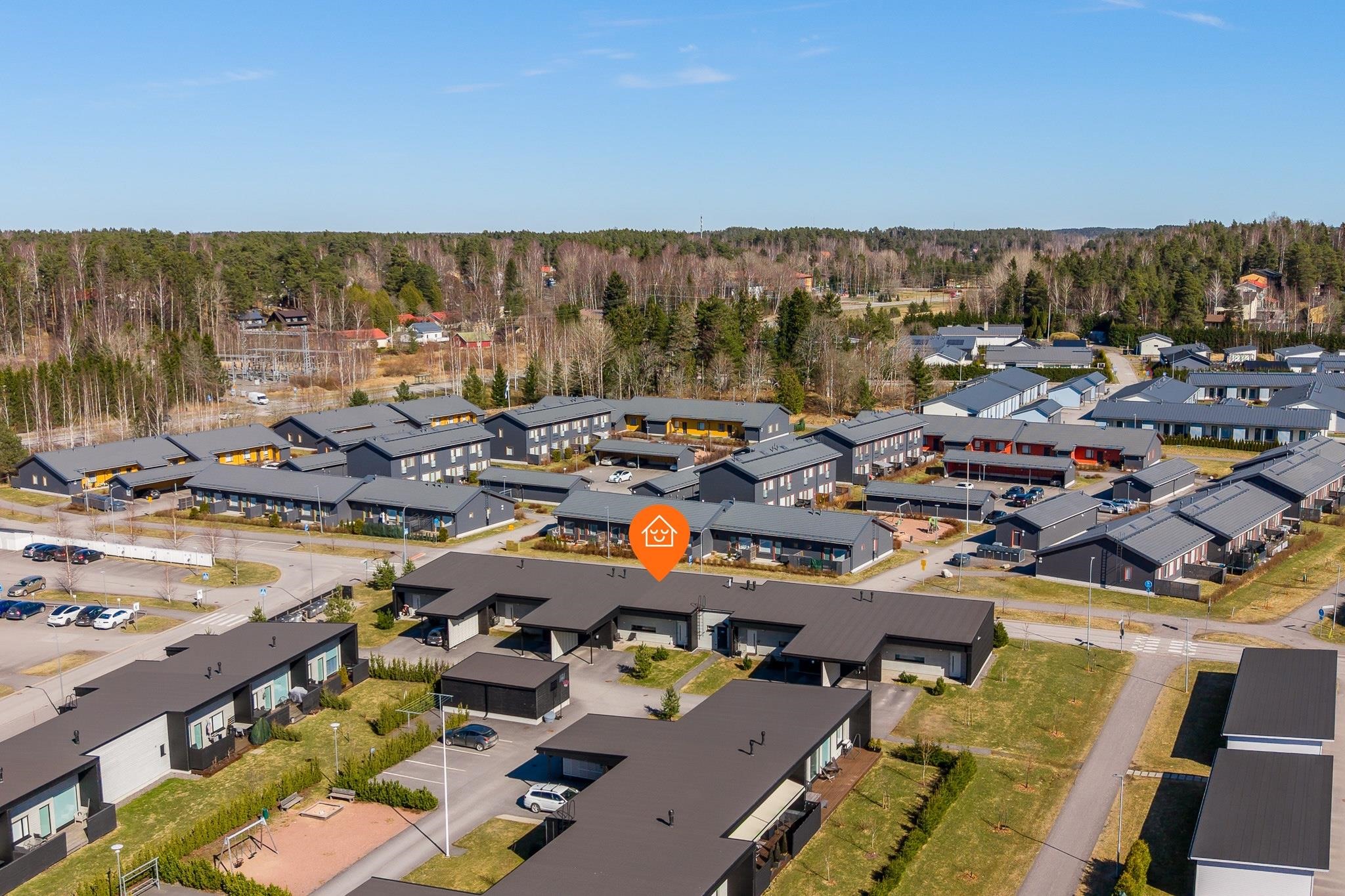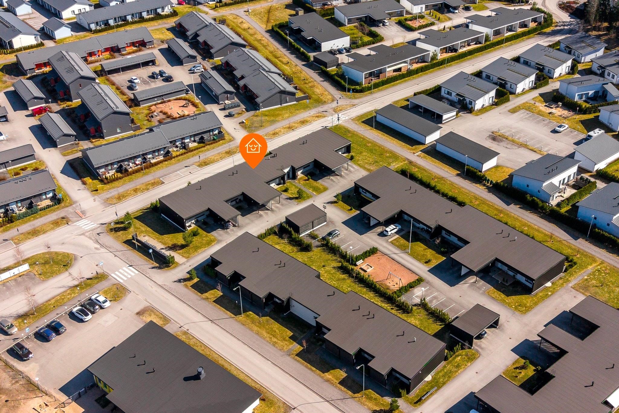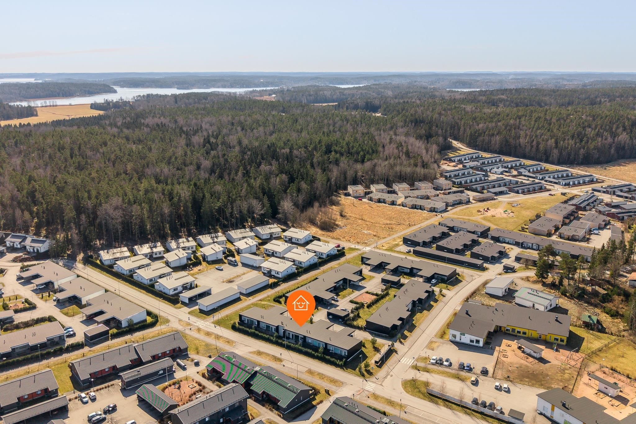 Sijainti on erityisen lapsiystävällinen ja toimiva. Päiväkoti löytyy aivan vierestä ja koulu on lyhyen matkan päässä, mikä tekee arjen sujumisesta vaivatonta. Lisäksi Prisma sekä Kaarinan kattavat palvelut, kuten kaupat, ravintolat ja muut arjen tärkeät kohteet, ovat kaikki kävelyetäisyydellä. Alue tarjoaa myös hyvät liikenneyhteydet niin Turun suuntaan kuin muualle Kaarinaan.