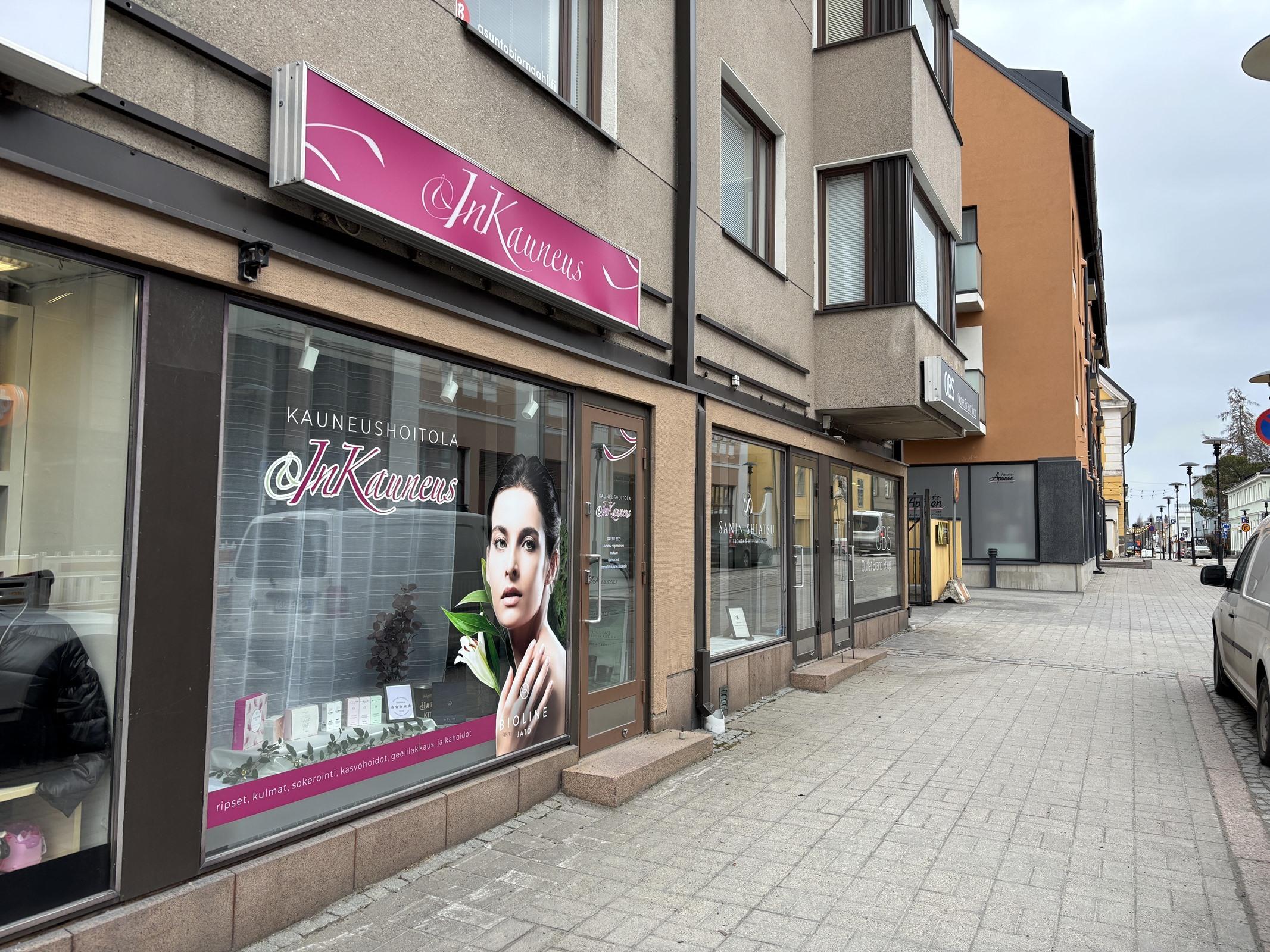 Tunnelmallinen ja hyvin pidetty liiketila erinomaiselta paikalta ihan ydinkeskustasta vapautumassa 1.6.2026. Tila on toiminut kauneushoitolana, joten se sopii loistavasti hyvinvointi ja palvelualan käyttöön tai muuhun rauhallista ja siistiä ympäristöä kaipaavaan toimintaan. Valoisa huonejärjestys, siistit pinnat ja toimivat tilaratkaisut tekevät tilasta helposti muokattavan oman yrityksesi tarpeisiin. Sijainti varmistaa hyvän näkyvyyden ja vaivattoman saavutettavuuden. Tämä tila tarjoaa valmiin pohjan aloittaa toimintasi nopeasti ja tyylikkäästi. Vuokran lisäksi käyttösähkö kulutuksen mukaan omalla sopimuksella, vesimaksu ja irtainvakuutus.