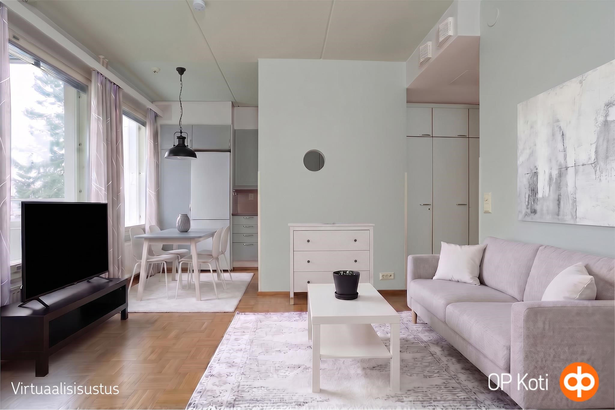 Tämä koti sopii erinomaisesti niin omaksi ensiasunnoksi kuin vaivattomaksi sijoituskohteeksi. Pohjaratkaisussa keittiö ja olohuone nivoutuvat käytännölliseksi kokonaisuudeksi, jossa on helppo sijoittaa ruokapöytä ja oleskeluryhmä samaan tilaan. Länteen avautuvilta ikkunoilta tulvii iltapäivän valo ja lasitettu parveke jatkaa oleskelutilaa pitkälle syksyyn. Mukava paikka nauttia iltapalasta tai vilvoitella saunomisen lomassa. Makuuhuoneessa on hyvin tilaa sängylle ja säilytysratkaisuille, ja parkettilattiat tuovat tiloihin yhtenäisen ilmeen. Huoneisto on siistikuntoinen, mikä helpottaa muuttoa ilman suuria remonttitarpeita.