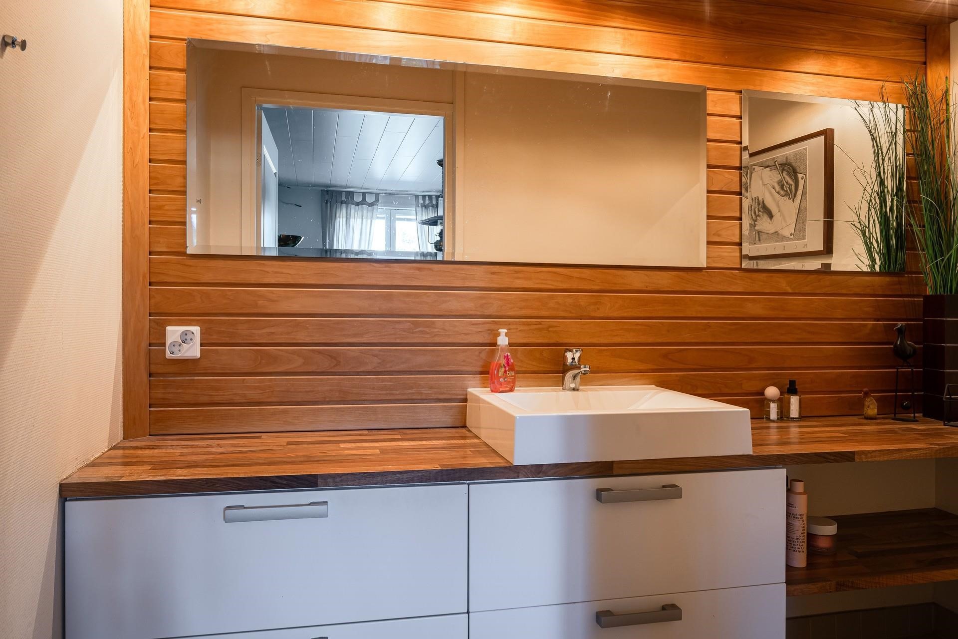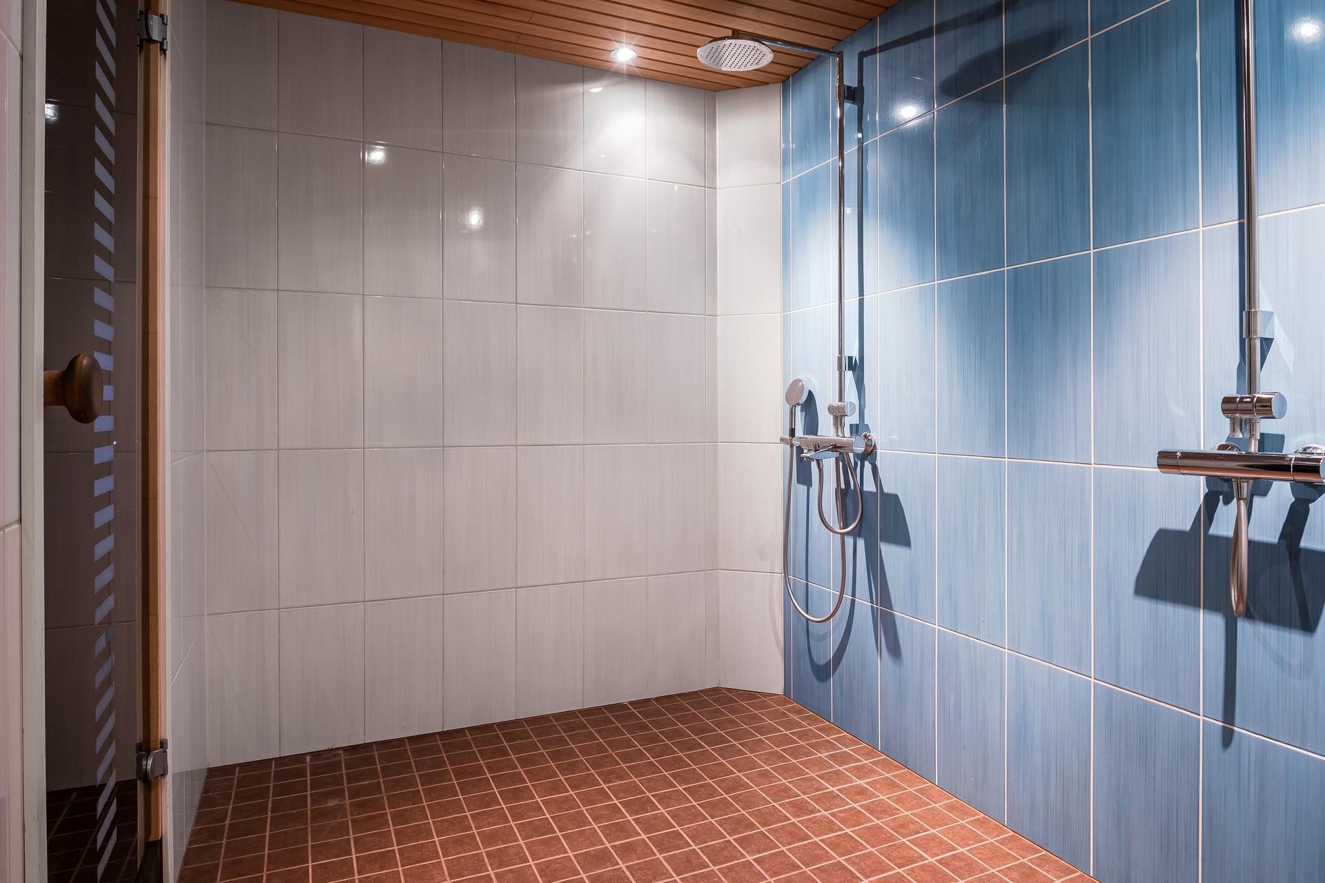 - Sauna, sähkökiuas, kylpyhuone, erillinen wc, suihku, suihkuseinä yk, peilit ak, peilikaappi yk, kaapit, pesukoneliitäntä kodinhoitohuoneessa, lattialämmitys, kiinteät valaisimet.