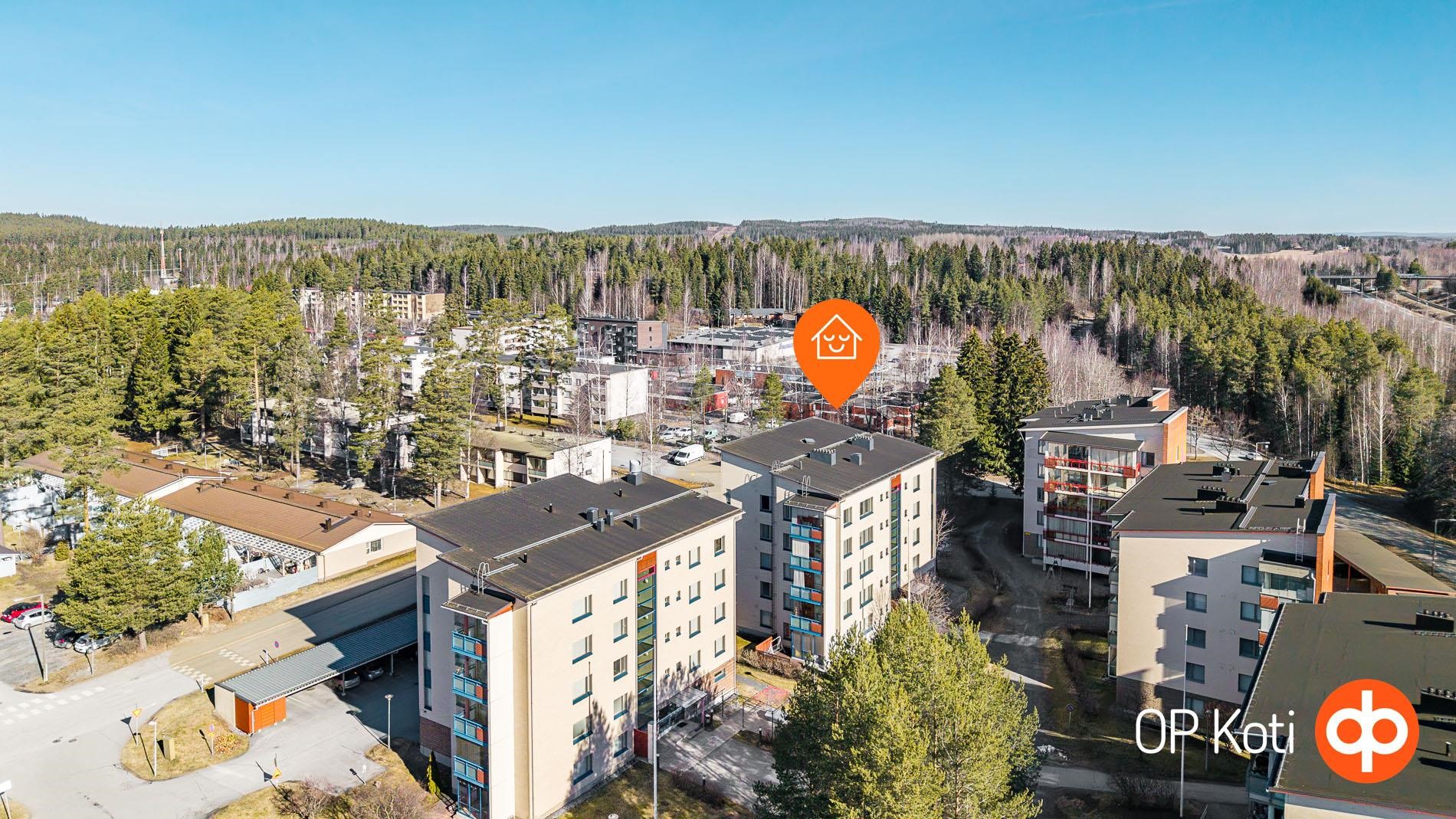 Huoneisto sijaitsee hissitalon ylimmässä kerroksessa, ja esteetön kulku ulko-ovelta kotiovelle asti tekee arjesta sujuvaa. Vuonna 2008 valmistunut taloyhtiö sijaitsee omalla tontilla.