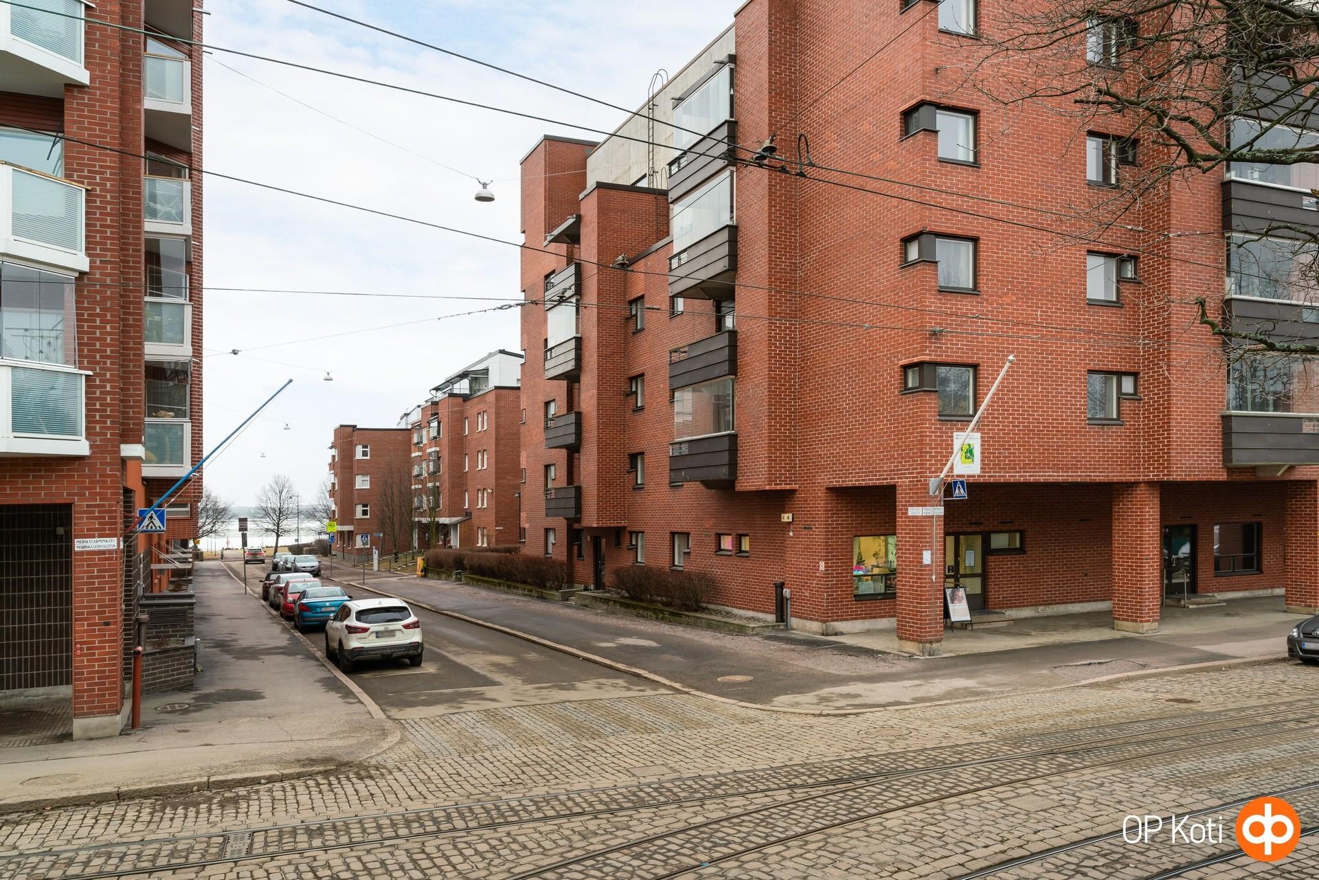 Katajanokka on arvostettu, merellinen kaupunginosa Etelä-Helsingissä, aivan keskustan kupeessa. Katajanokan rantoja kiertävä ulkoilureitti kutsuu ulkoilemaan ja nauttimaan myös alueen ravintolapalveluista. Lähikauppa löytyy n. 150 m päästä ja ratikalla pääset hetkessä keskustan palveluiden pariin.