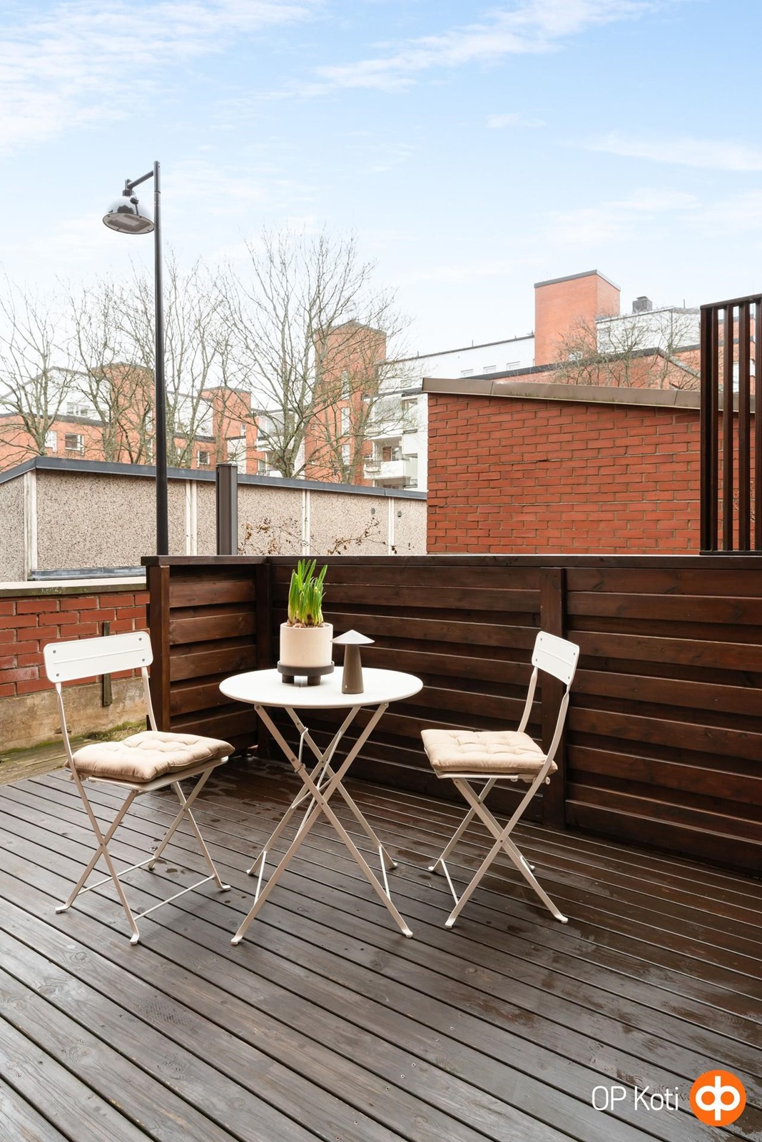 Kiva kaupunkikoti, jossa asukkaan ilona on myös suojaisa terassipiha. Kodin keittiö on uusittu kokonaisuudessaan vuonna 2021. Tilavasta keittiöstä on jaettu jo aiemman omistajan aikana lasiseinällä erillinen tila, joka on toiminut työ- ja vierashuoneena. Asunto kaipailee uusien asukkaiden lisäksi myös pintojen päivitystä ja se onkin heti vapaaa innokkaalle remontoijalle.