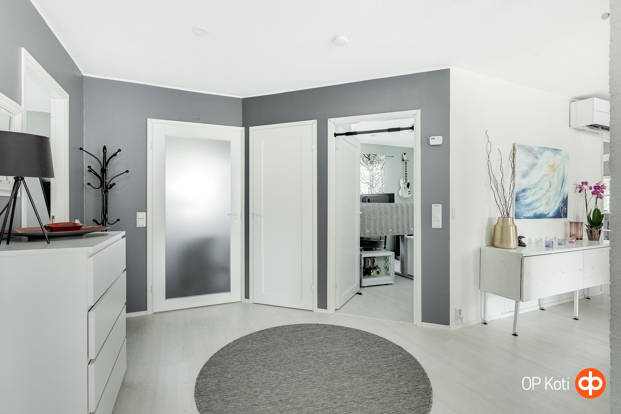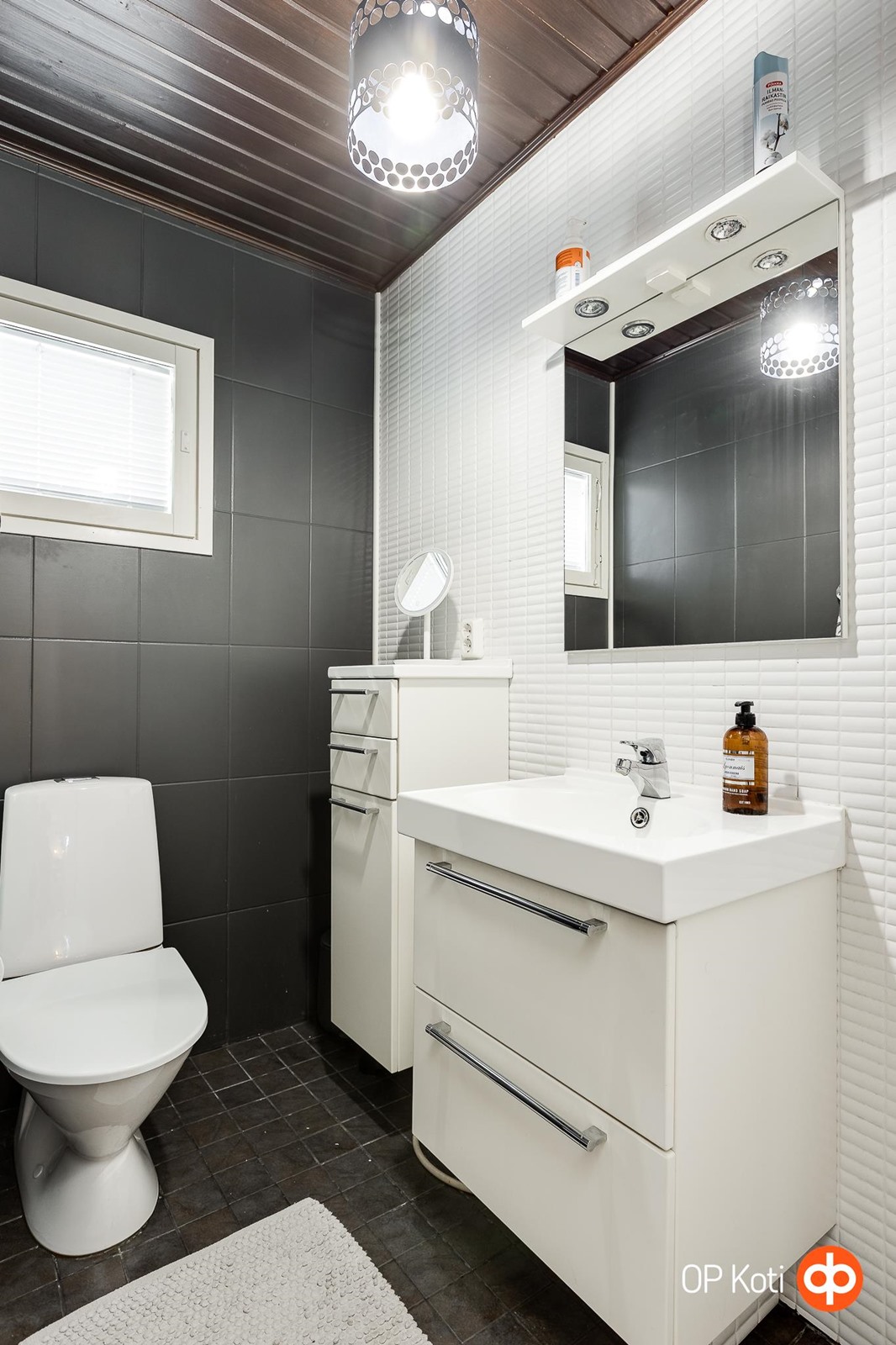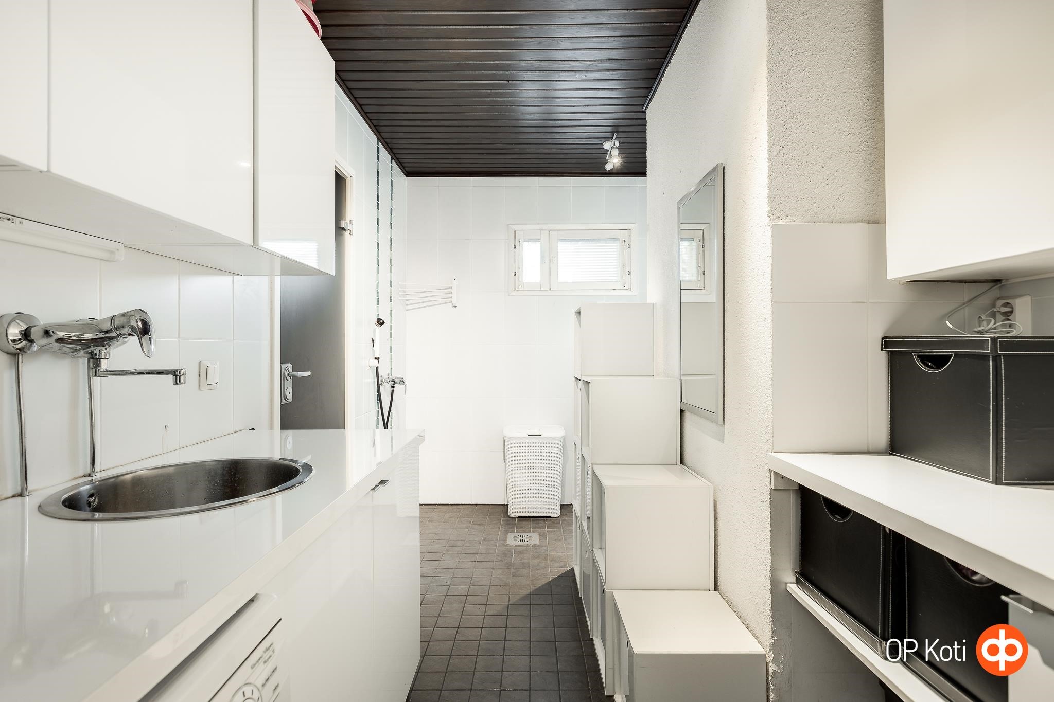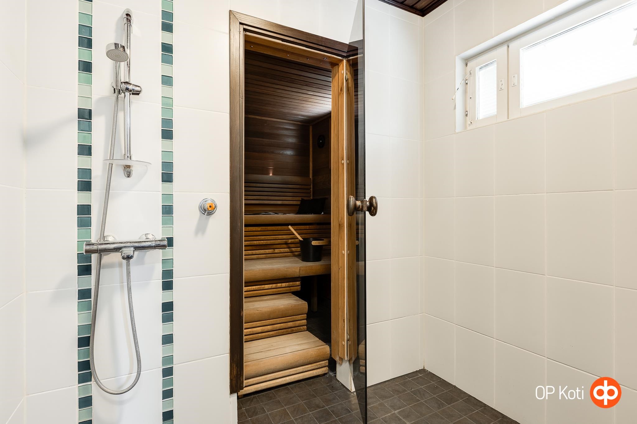 - Sauna, sähkökiuas uusittu 2026, kylpyhuone, erillinen wc, suihku, peilit, kaapit, allaskaappi, pesukoneliitäntä, lattialämmitys, kiinteät valaisimet.
