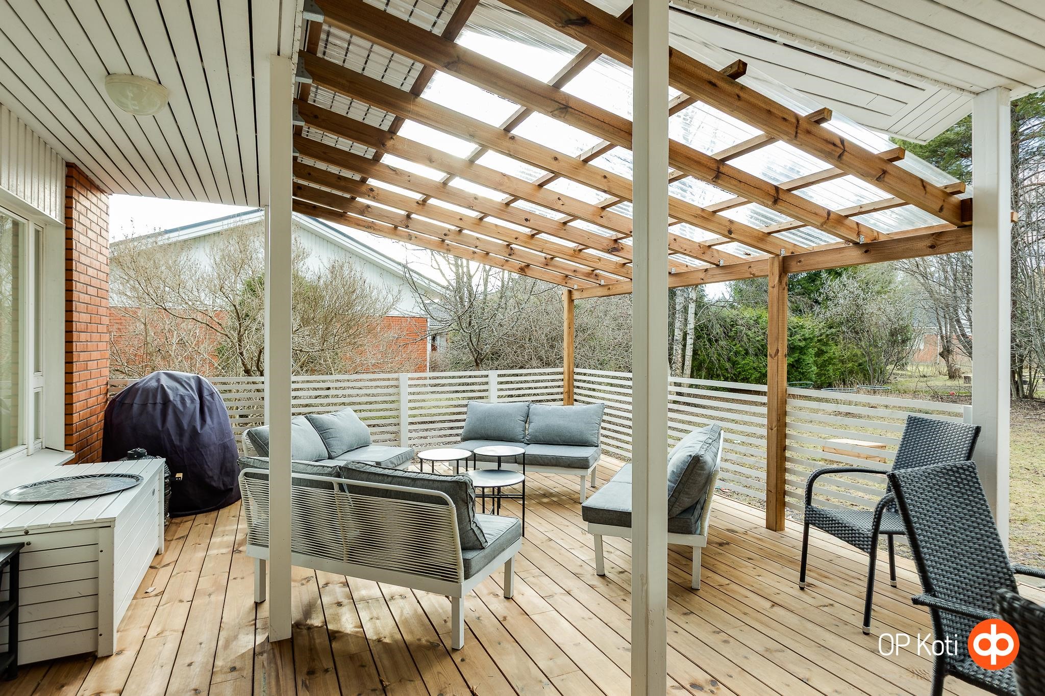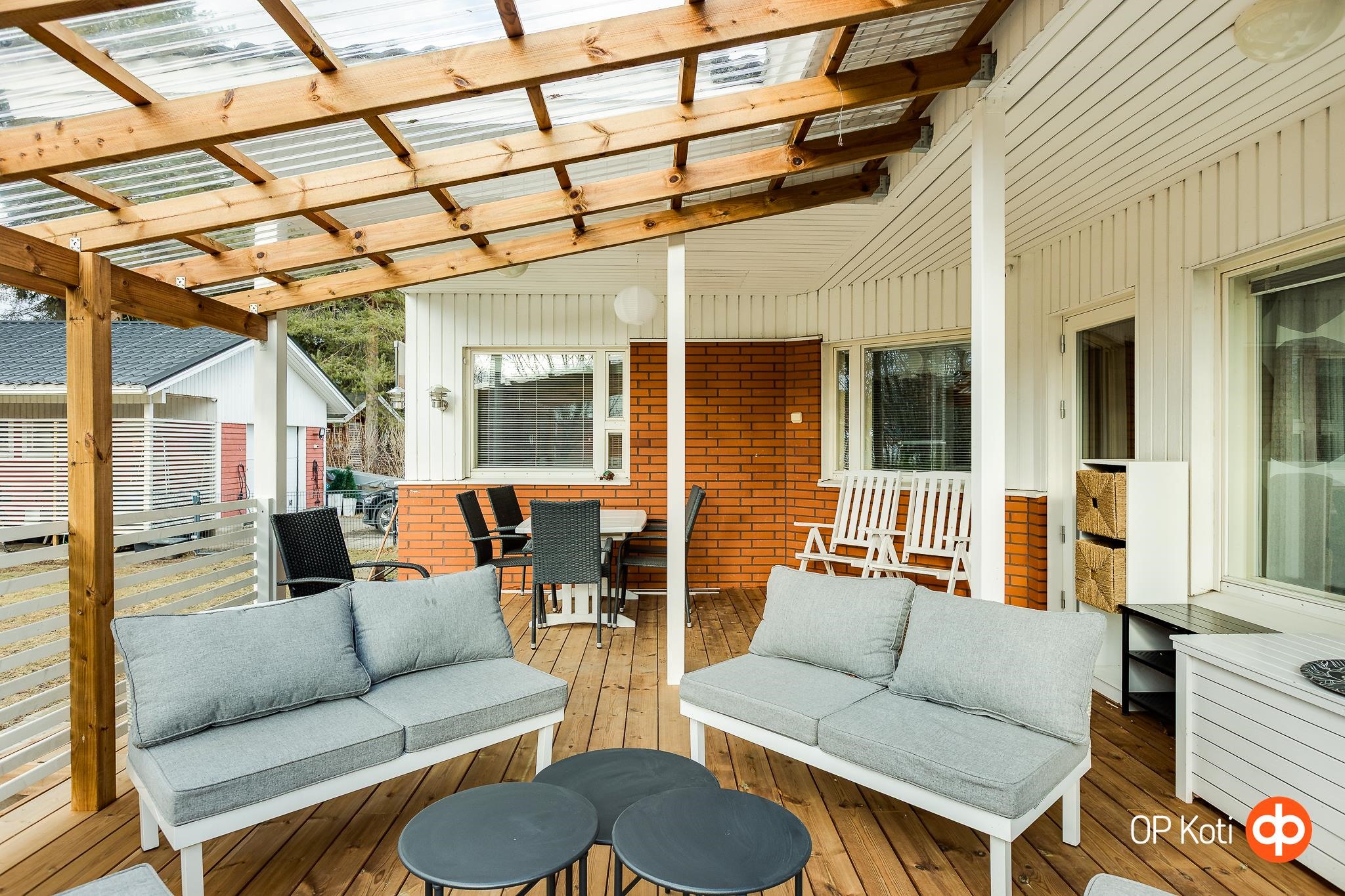 Talon neliöt jakautuvat käytännöllisesti viiteen huoneeseen, joista neljä toimii makuuhuoneina. Avara olohuone yhdistyy moderniin keittiöön, jossa on runsaasti kaappi- ja laskutilaa sekä laadukkaat kodinkoneet. Kylpyhuone ja sauna tarjoavat rentouttavat puitteet arjen keskelle, ja kodinhoitohuone helpottaa perheen pyykkihuoltoa. Kaksi erillistä wc:tä, tilava vaatehuone ja runsaasti säilytystilaa ulkovarastossa ja autotallissa tekevät arjesta sujuvaa. Vuonna 2025 rakennettu iso katettu terassi kutsuu nauttimaan kesäpäivistä ja yhdessäolosta.