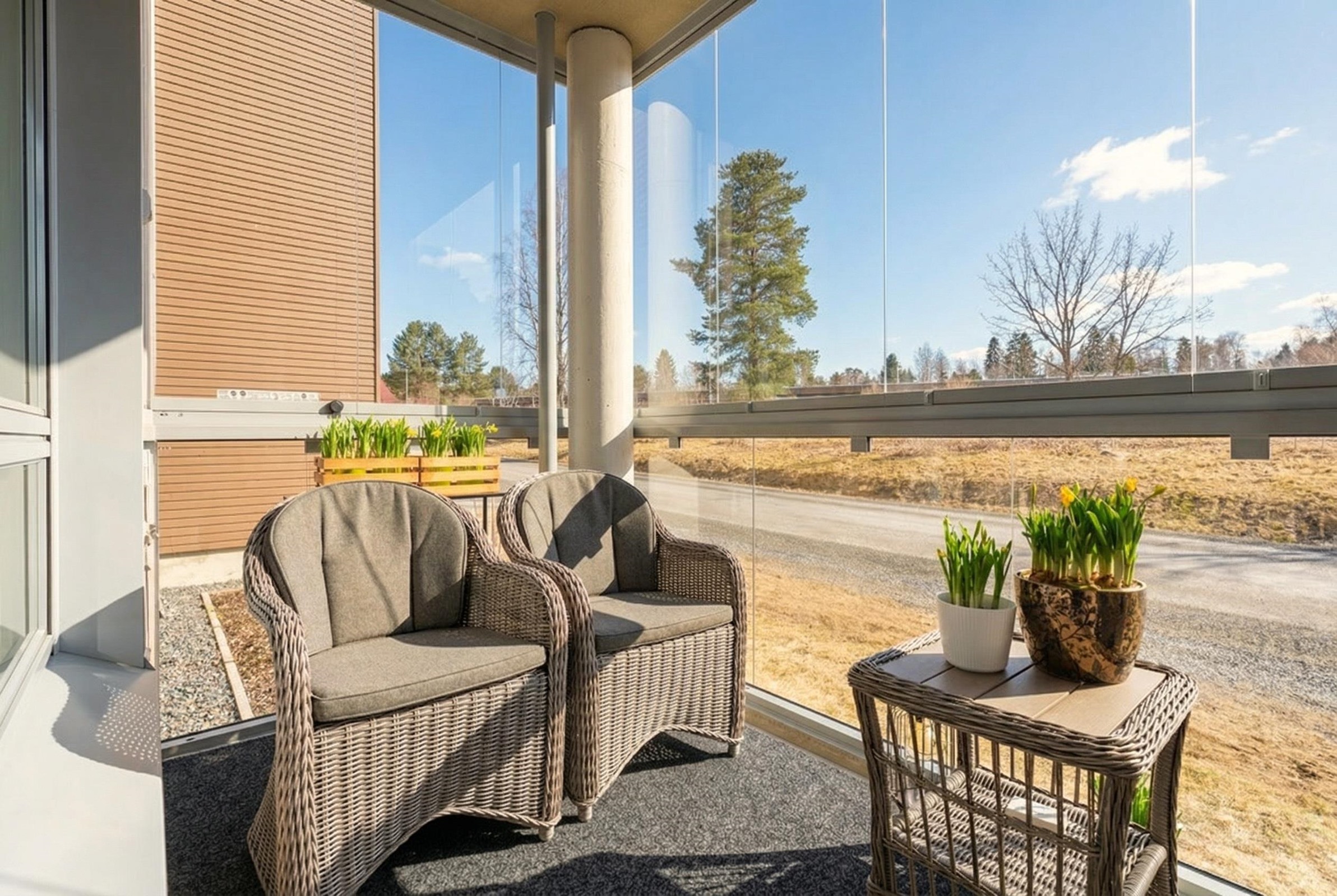 - Parvekeelle paistaa päivällä aurinko, länsiparveke.