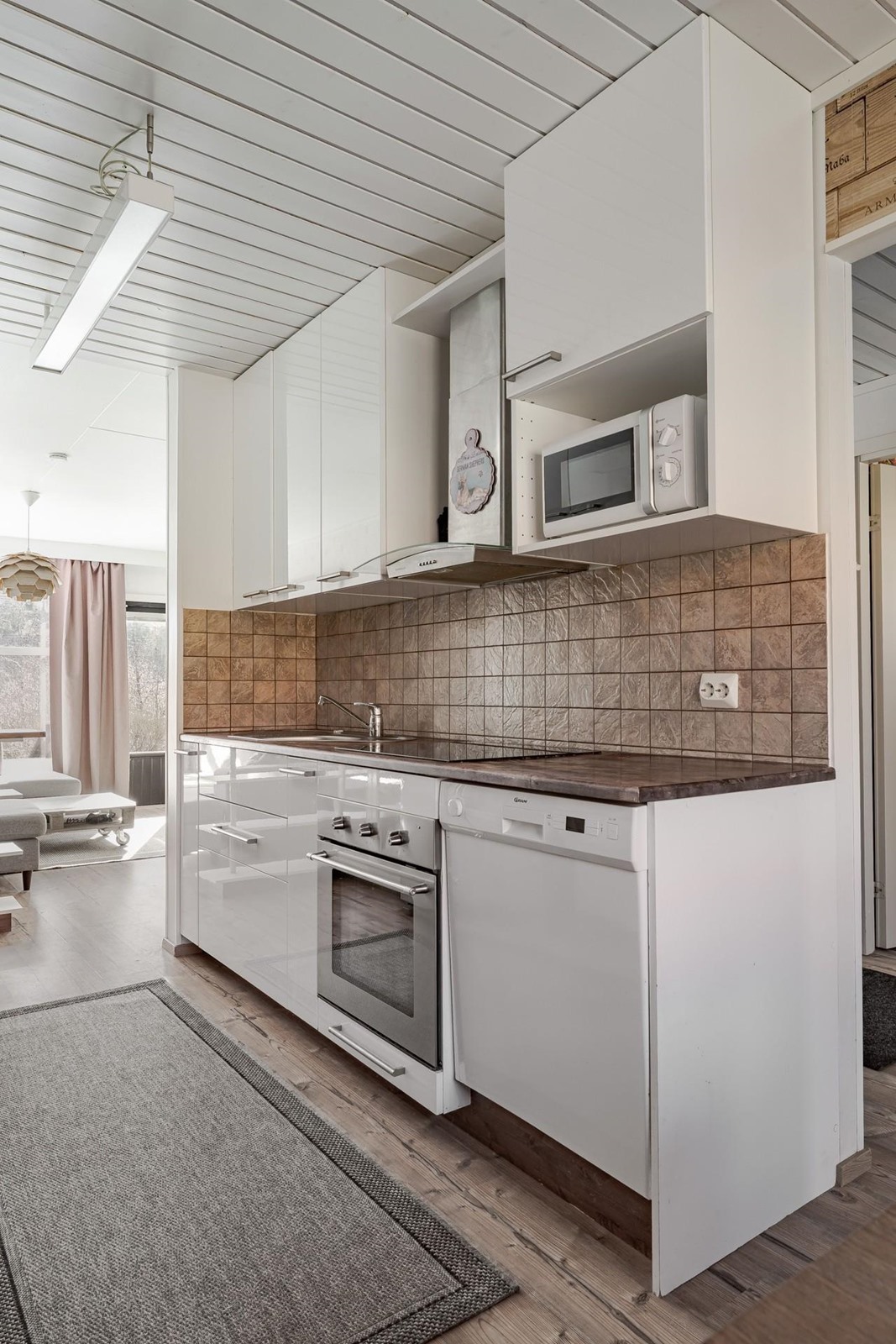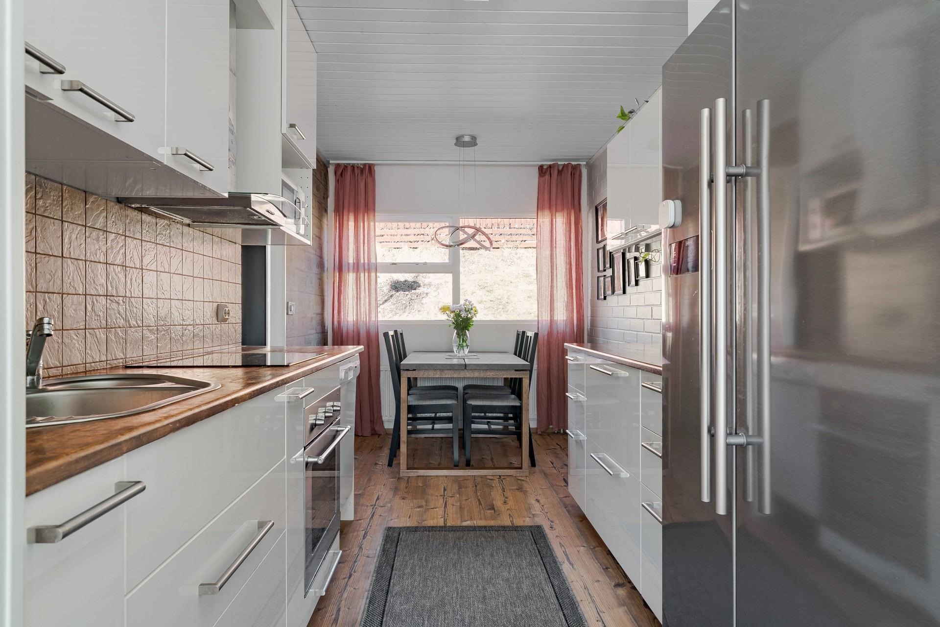 - Keittiön tasot on puuta, välitila laattaa ja lattia vinyyliä. keittiön varusteita ovat: jääkaappipakastin, erillisuuni, liesitaso, induktioliesi, liesituuletin, astianpesukone, kaapistot, kiinteät valaisimet. Keittiö on uusittu 2017