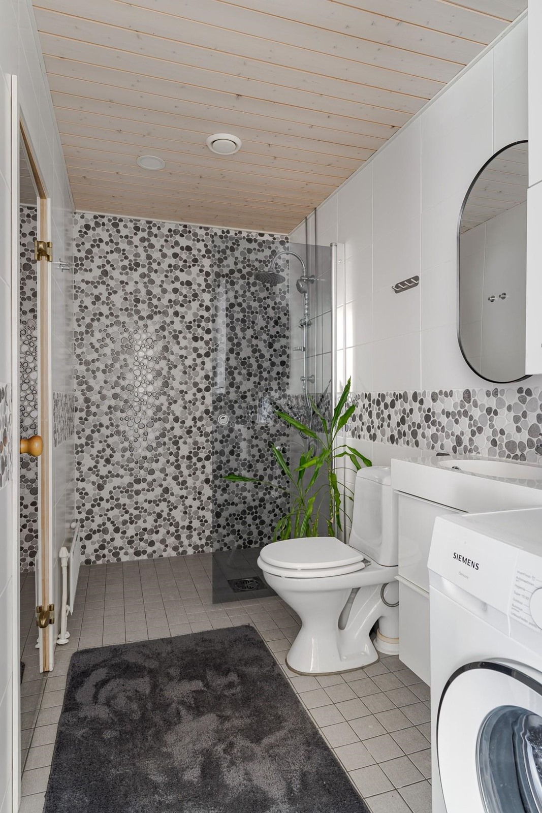 - Sauna, sähkökiuas, suihku, suihkuseinä, peilit, allaskaappi, pesukoneliitäntä, kiinteät valaisimet. Kylpyhuone ja sauna on uusittu 2018