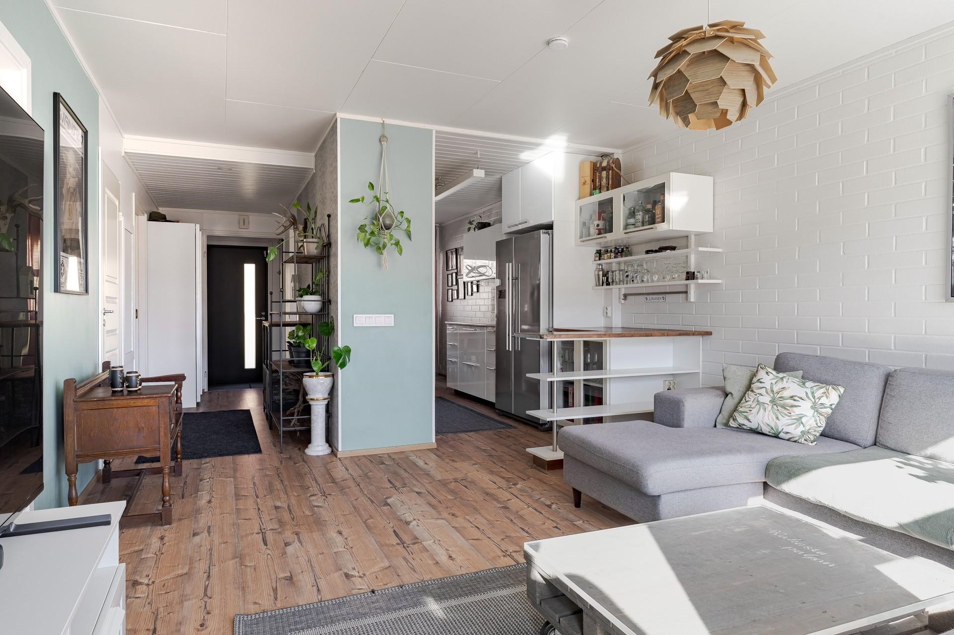Huoneiston pohjaratkaisu on mainio, mutta samalla muunneltavissa, mikäli haluat maksimoida läpitalohuoneiston valon määrän esim.eteisen väliseinän poistamalla. Kokonaisuuden kruunaa iso terassi- ja piha-alue, jossa paistatella päivää.