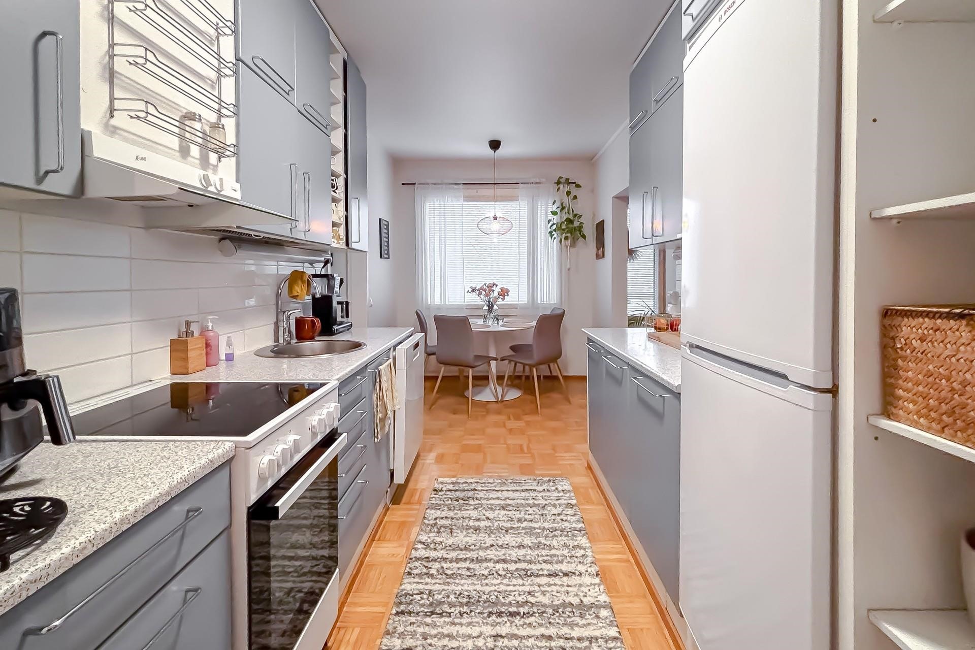 Tämä kodikas kolmio tarjoaa käytännöllisen pohjaratkaisun, valoisat huoneet sekä oman saunan tuomaan arkeen ripauksen luksusta. Kodin ikkunat tuovat runsaasti luonnonvaloa ja luovat avaran tunnelman läpi vuoden. Keittiöstä löytyy jääkaappipakastin, astianpesukone ja muut arjen ruoanlaittoa helpottavat varusteet.