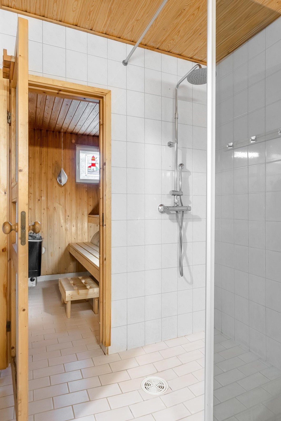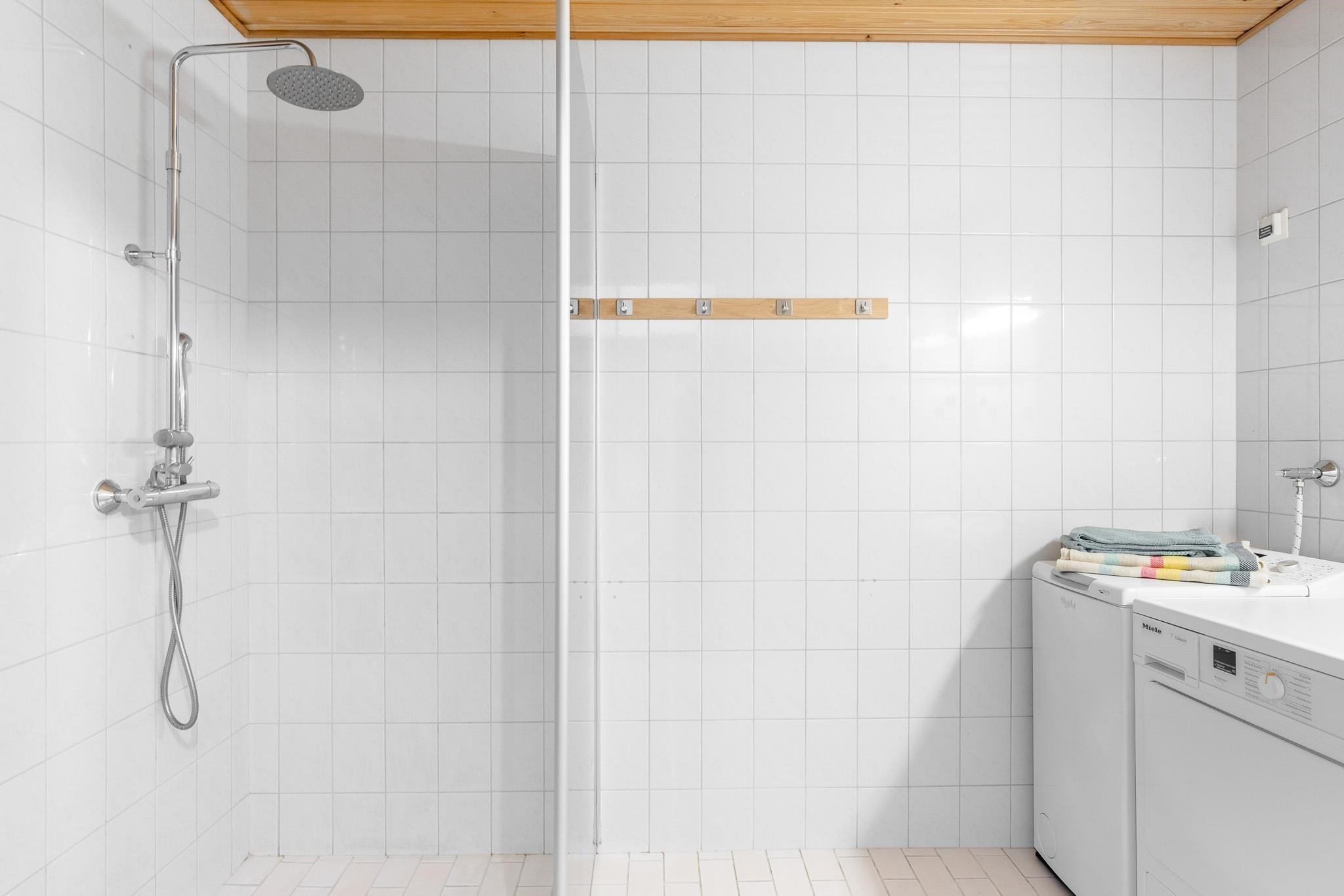 - Sauna, sähkökiuas, kylpyhuone, erillinen wc, suihku, suihkuseinä 2022, peilikaappi, allaskaappi, pesukoneliitäntä kph:ssa, kiinteät valaisimet.